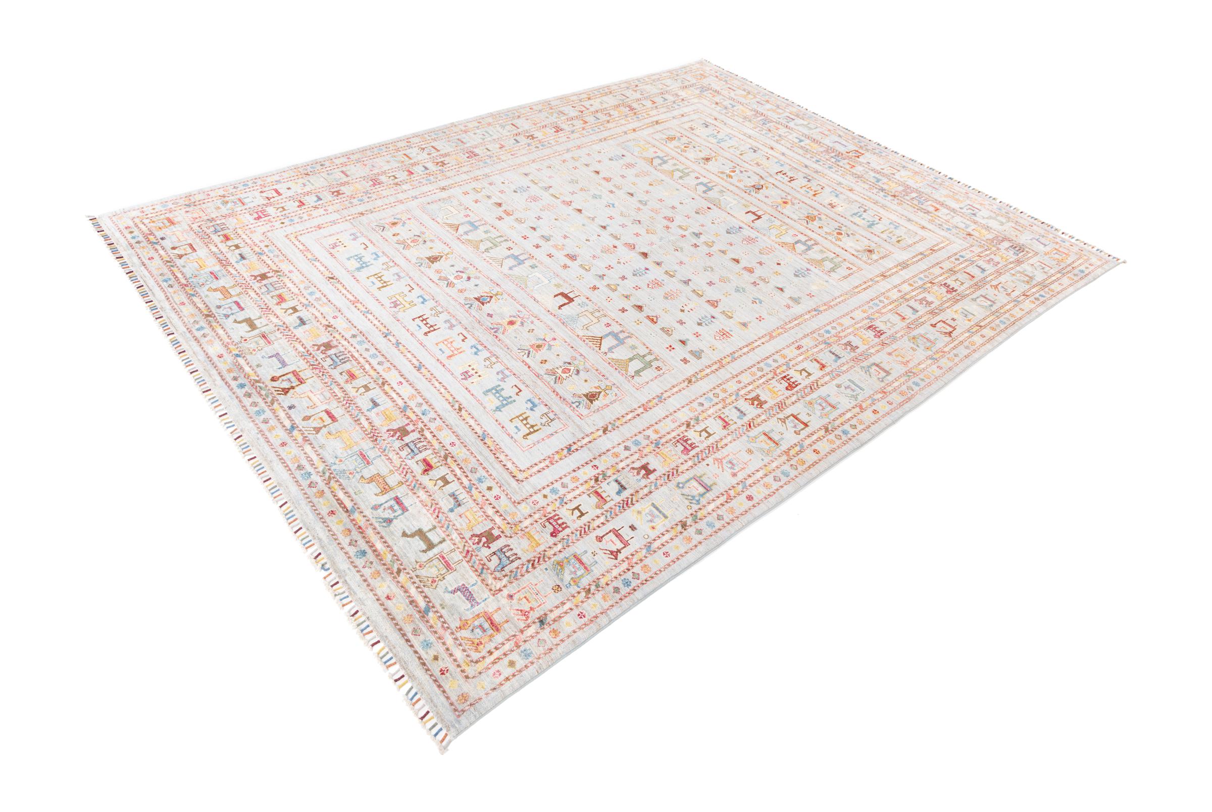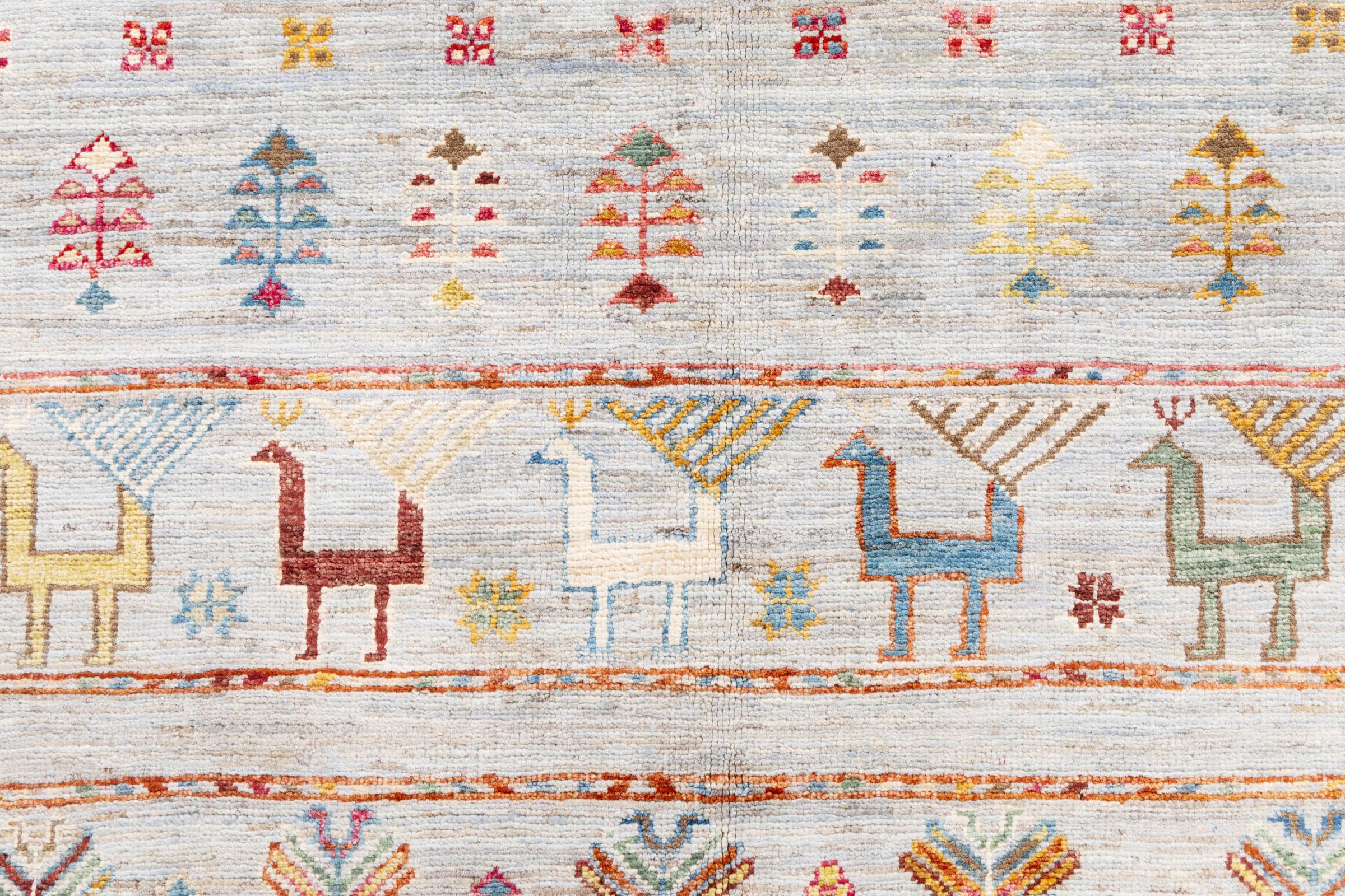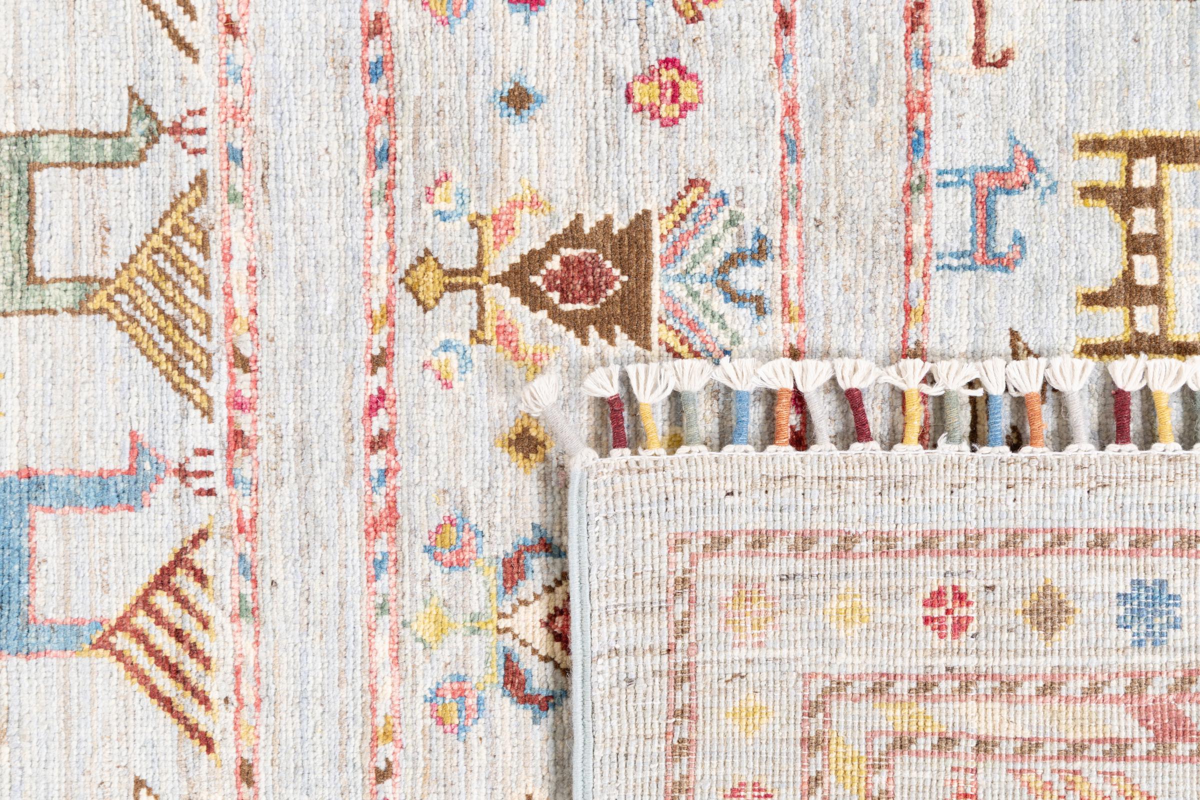 This rug is made of hand spun sheep wool of the highest quality. Especially in Iran (former Persia), Afghanistan and Pakistan wool is still spun by hand before the actual knotting of the rug begins. Wool has proven itself as a natural and extremely hard-wearing material over centuries. Among other things, it has dirt-repellent and heat-insulating properties. At the same time, wool is incomparably soft and has a natural shine.