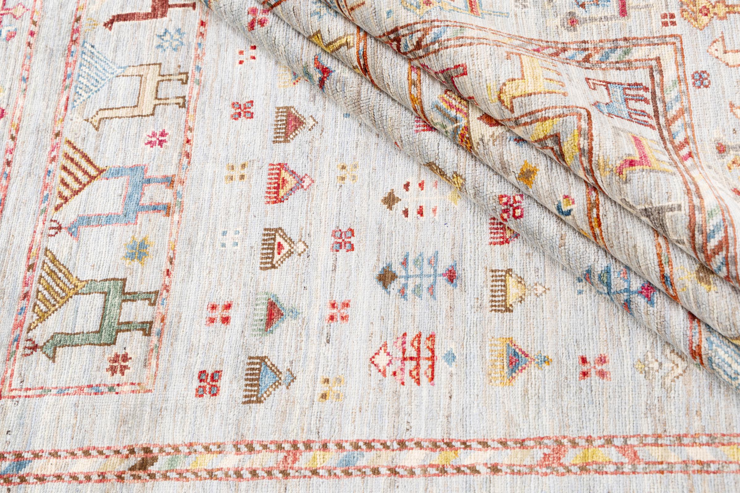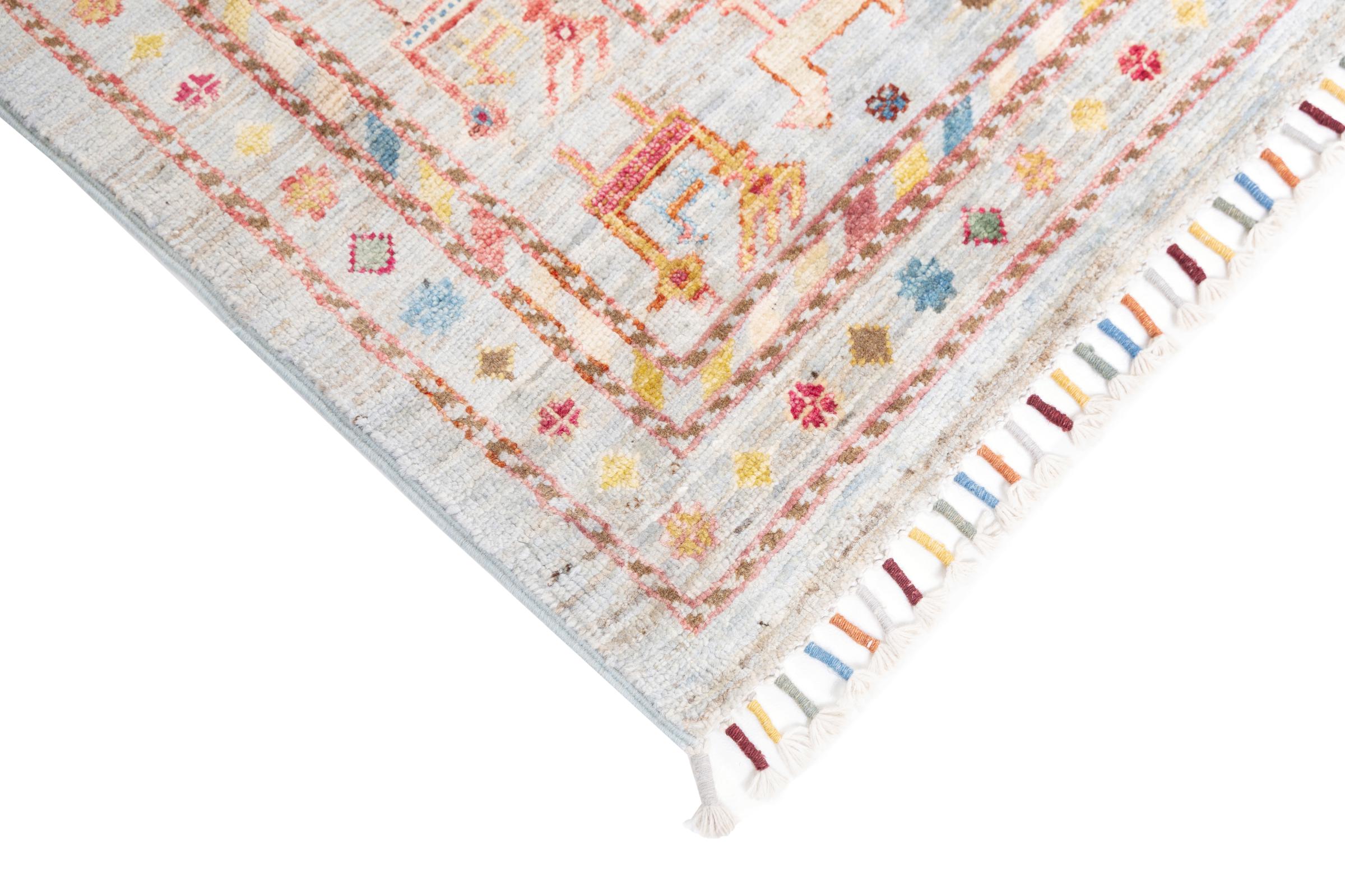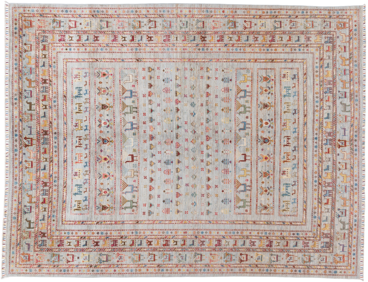 This rug is made of hand spun sheep wool of the highest quality. Especially in Iran (former Persia), Afghanistan and Pakistan wool is still spun by hand before the actual knotting of the rug begins. Wool has proven itself as a natural and extremely hard-wearing material over centuries. Among other things, it has dirt-repellent and heat-insulating properties. At the same time, wool is incomparably soft and has a natural shine.
