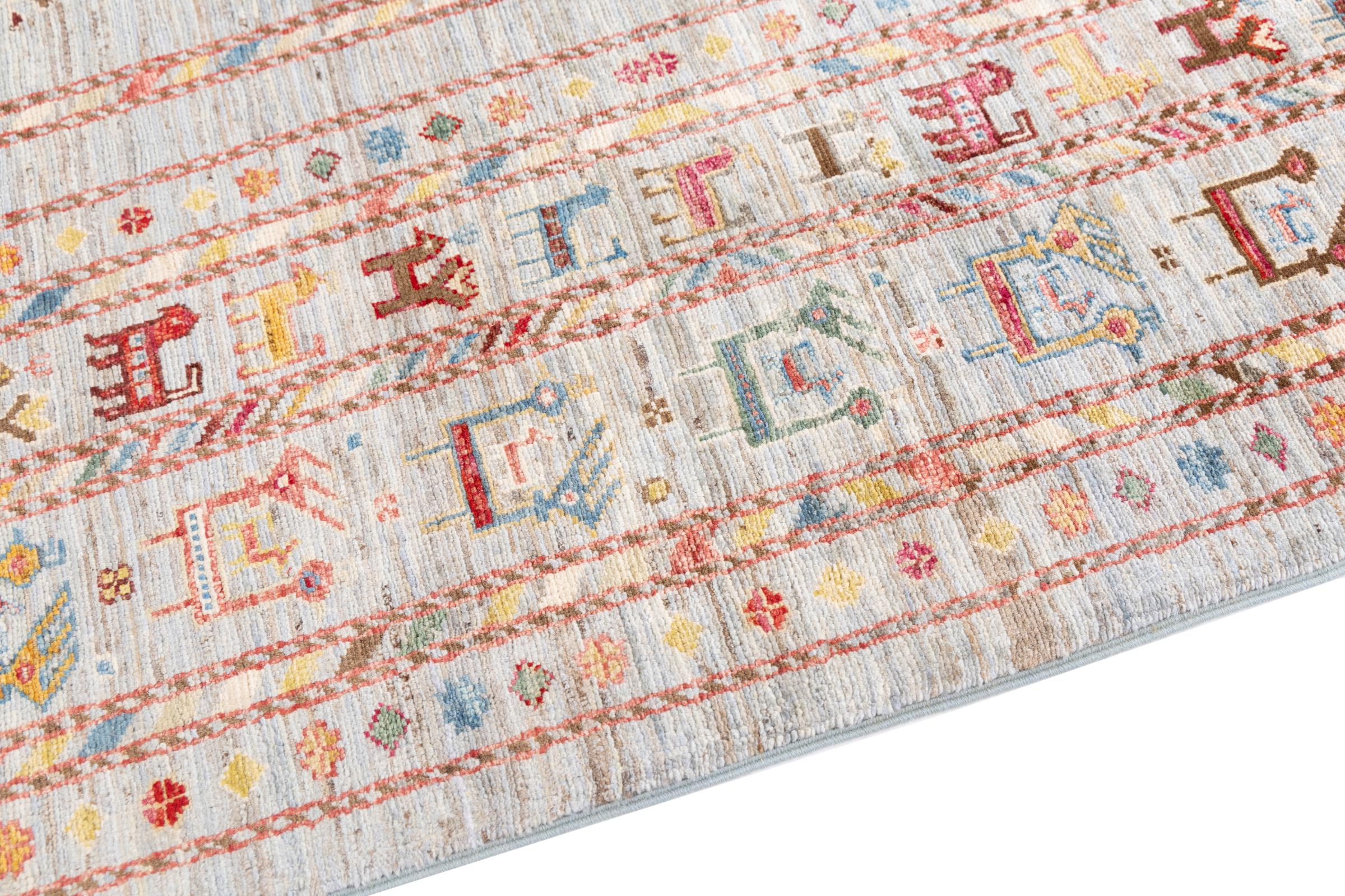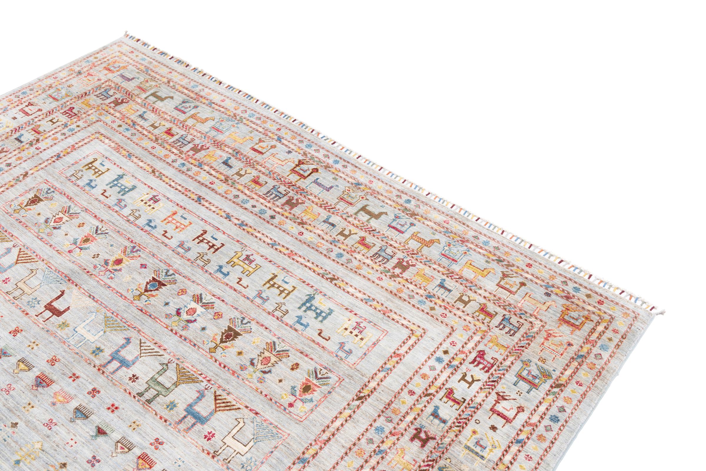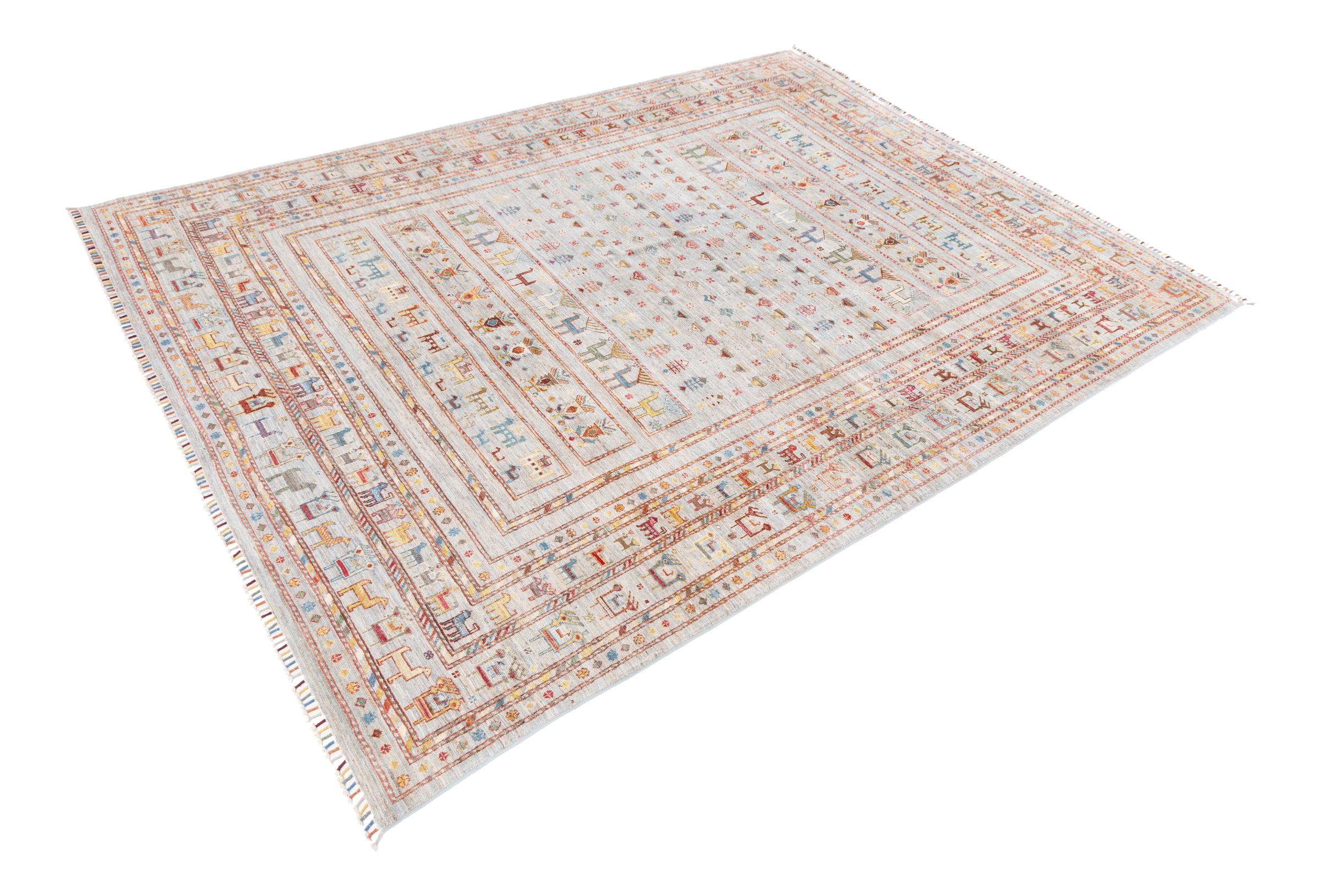 This Arijana Shaal carpet was knotted by hand in Pakistan. It promises a very high quality and thus offers long lasting pleasure. The pattern in stripes is varied and exciting. It was inspired by the well-known Moharamati design. If you find monochrome carpets too boring, you will certainly be delighted with this Arijana Shaal.