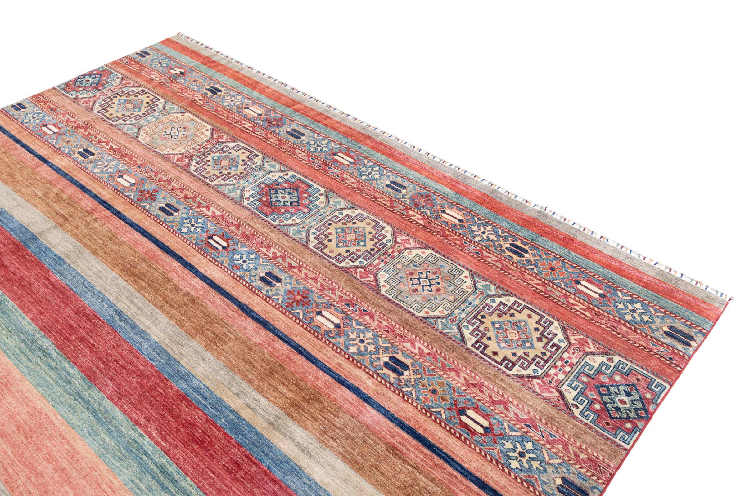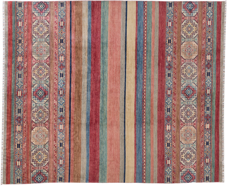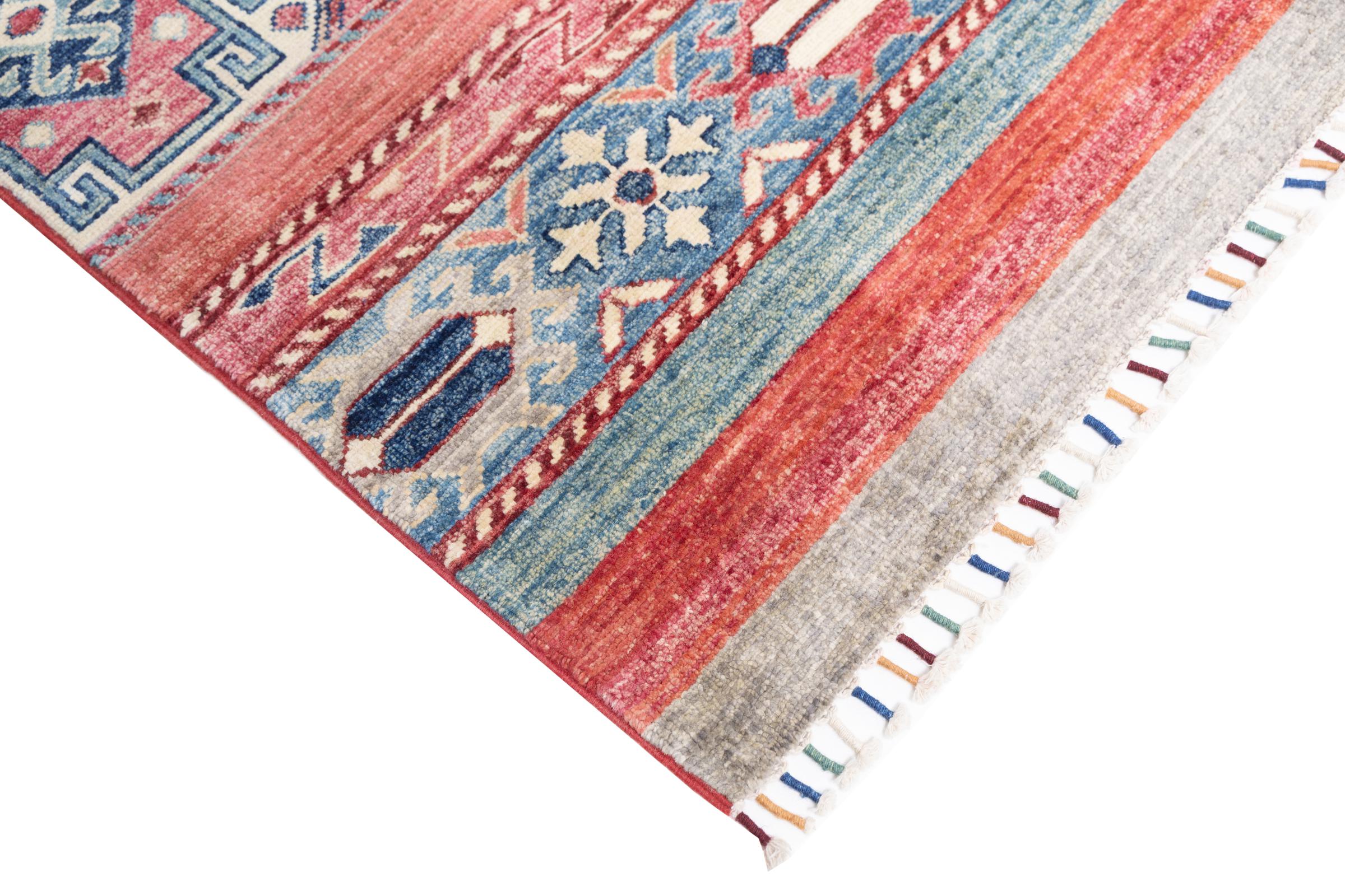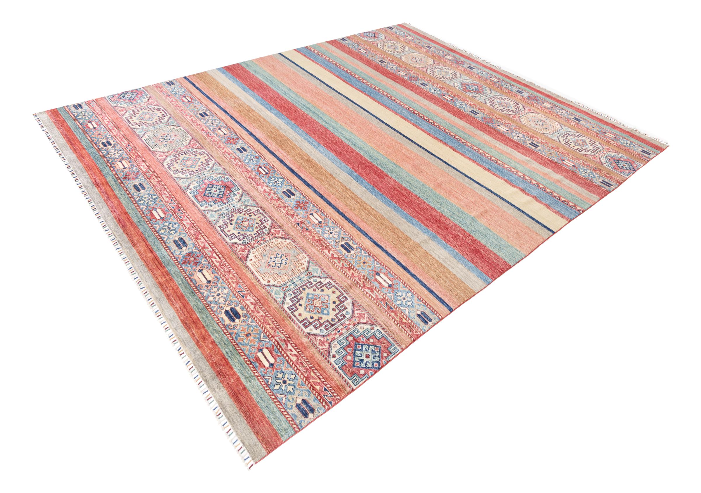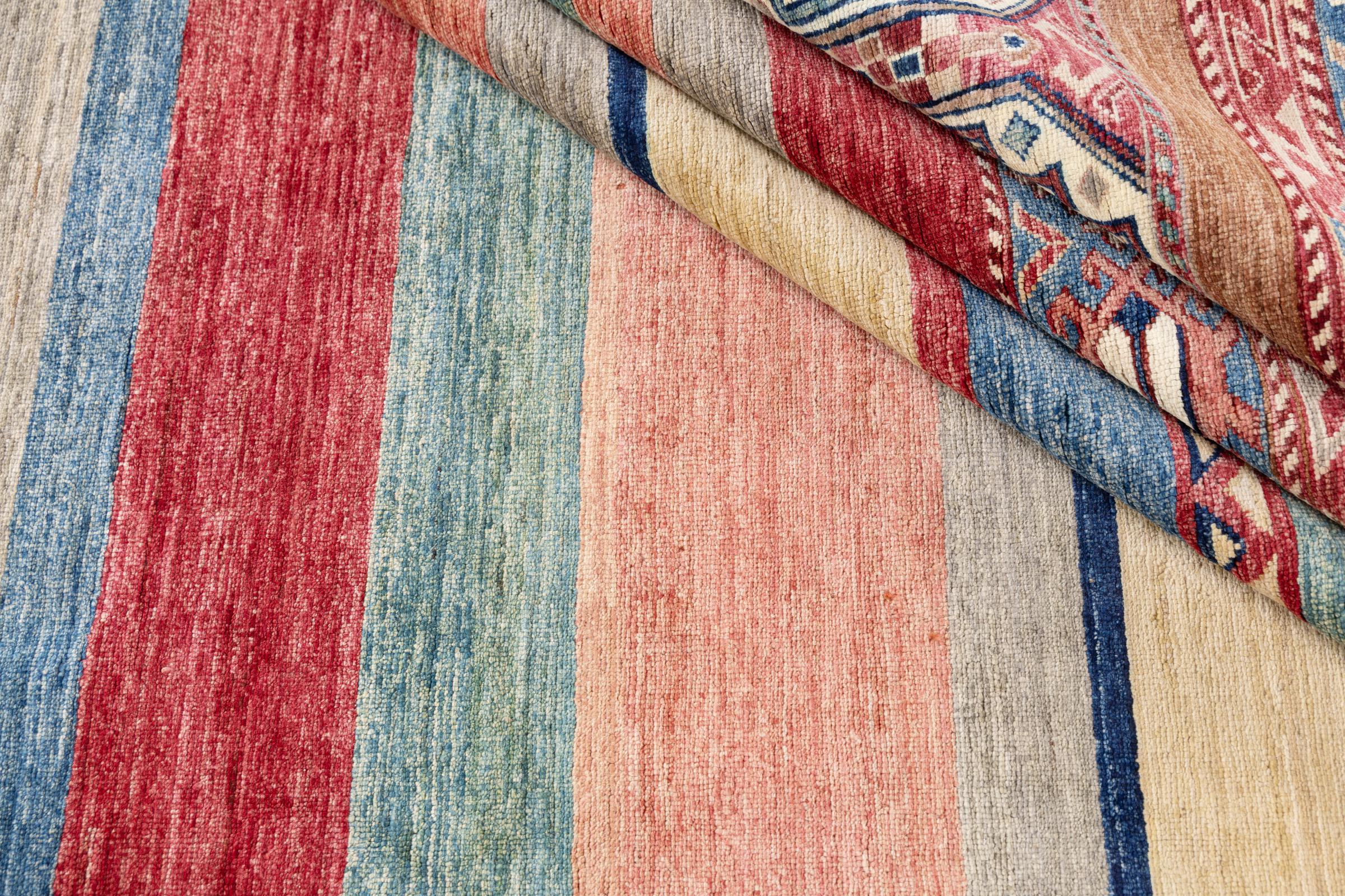 This Arijana Shaal carpet was knotted by hand in Pakistan. It promises a very high quality and thus offers long lasting pleasure. The pattern in stripes is varied and exciting. It was inspired by the well-known Moharamati design. If you find monochrome carpets too boring, you will certainly be delighted with this Arijana Shaal.