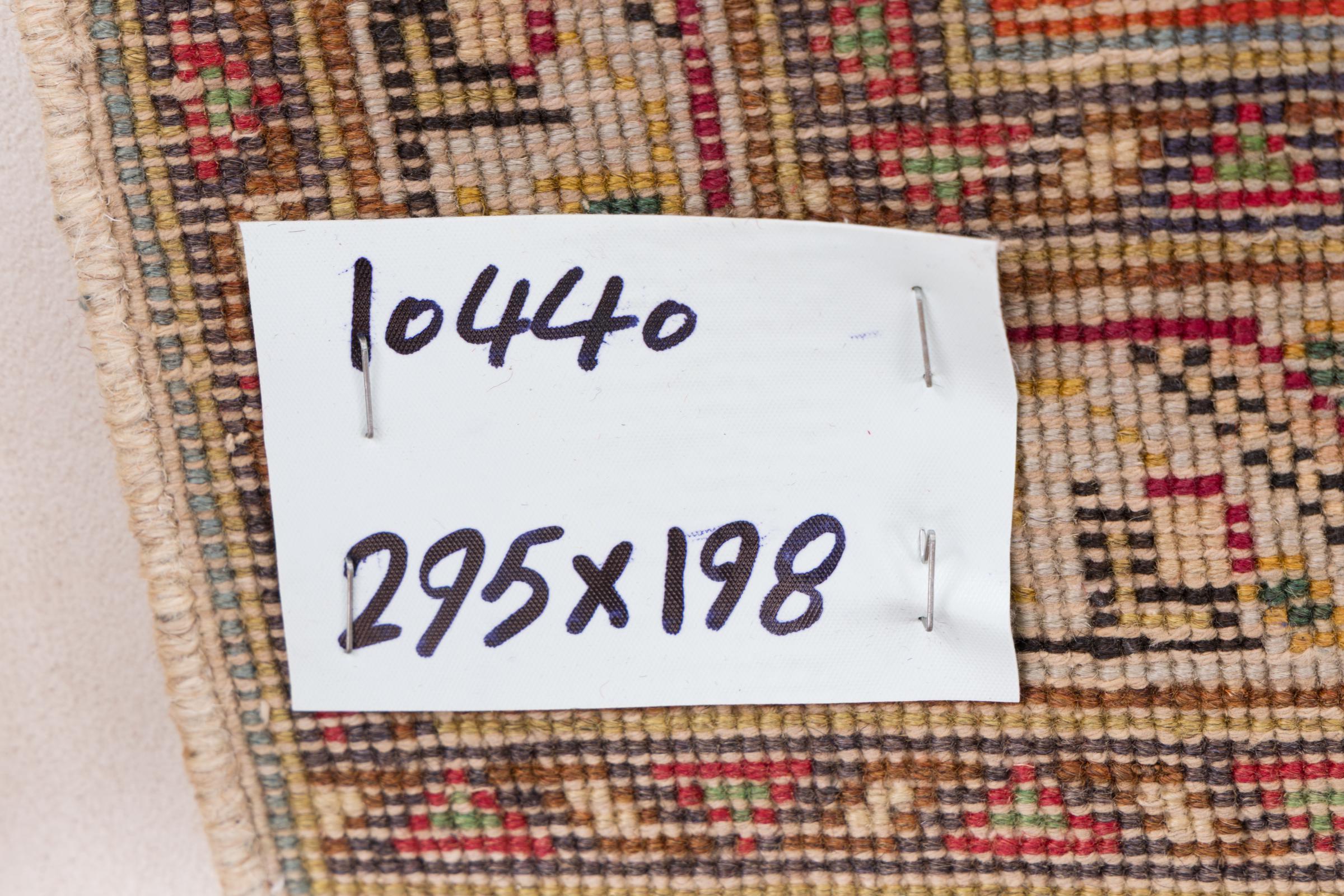 Carpet ID: 284174003580808 Size: 296x197 cm Thickness: ap. 5 mm Knot density: 128 000 - 160 000 / m² Manufacturing: Knotted by hand Pile: Handspun wool Warp: Cotton Condition / Conservation Carpet is severely and uniformly frayed Origin: Persia Age: 30-50 years (New) Weight: ap. 20 kg In stock: Unique - Only 1 in stock