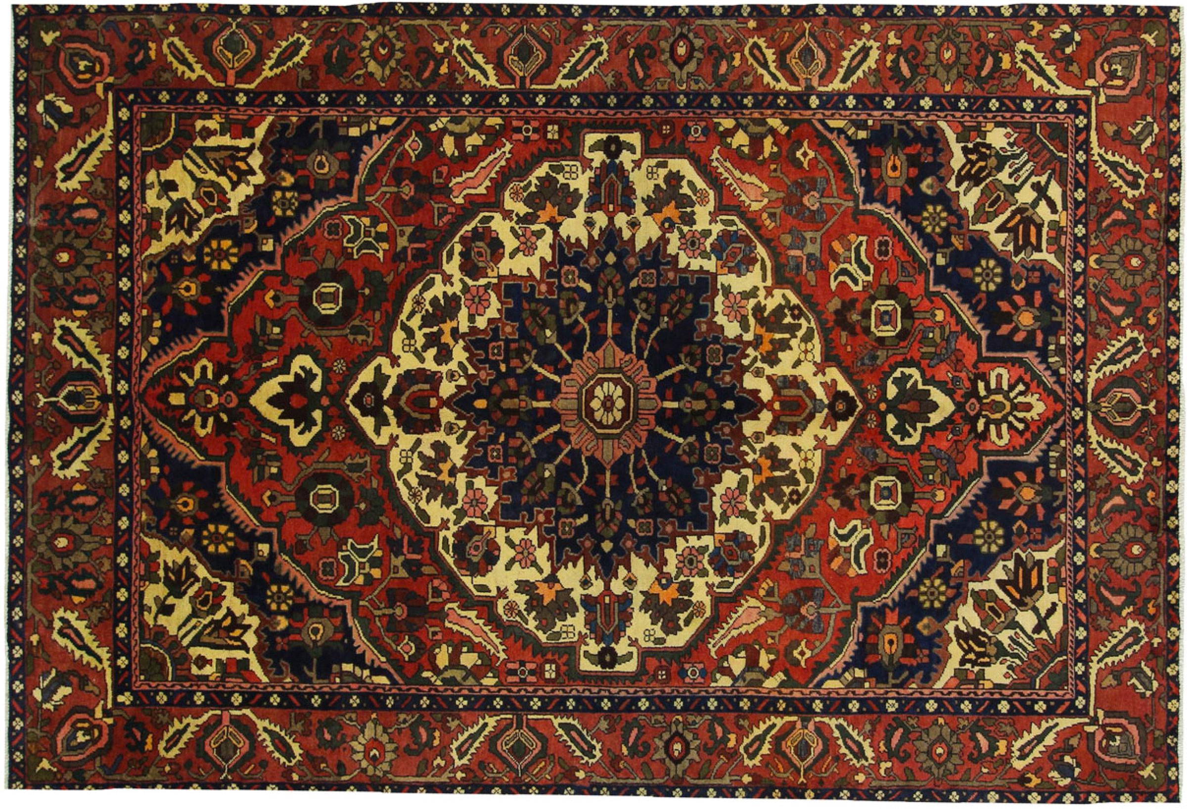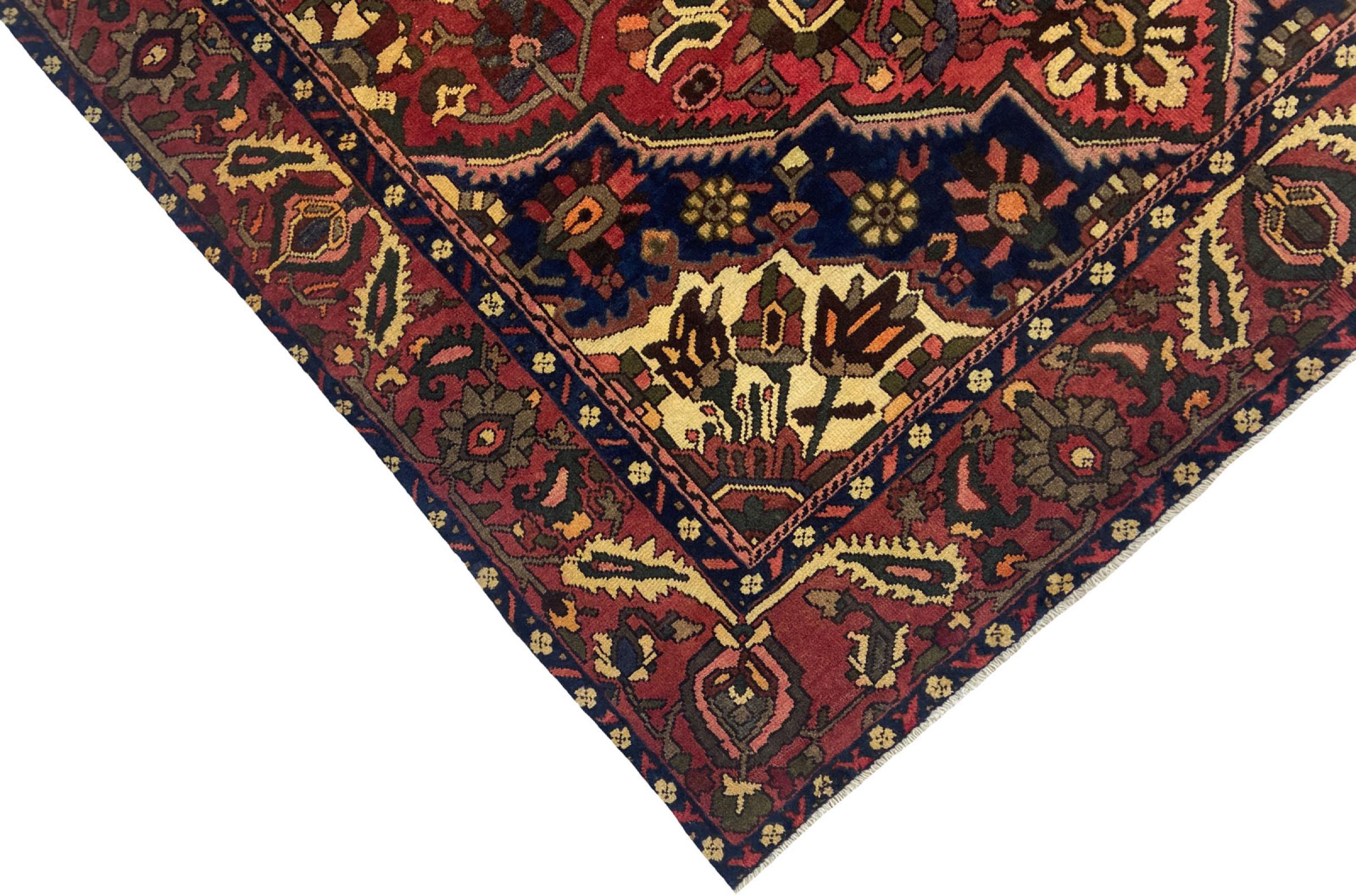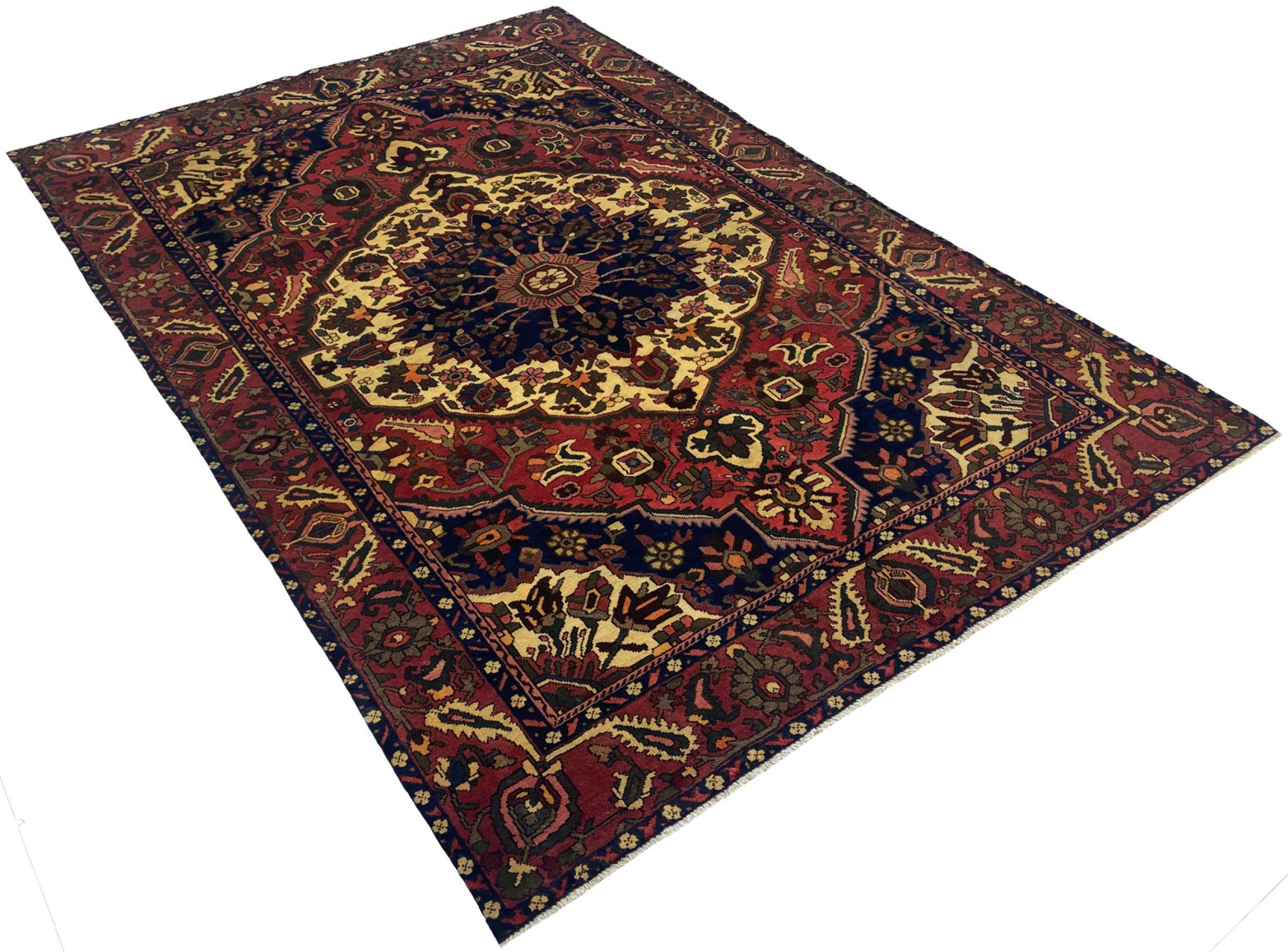 This Persian Bakhtiari was hand-knotted by nomads of the Bakhtiari tribe. This Persian carpet plays with the colours of the Orient in the most beautiful patterns. The design of its ornaments is inspired by Persian gardens. Over the years, the so-called traditional garden design has gained great popularity in the western world. Its high knotting density in combination with the strong yarn promises a long-lasting pleasure of Persian carpet art.