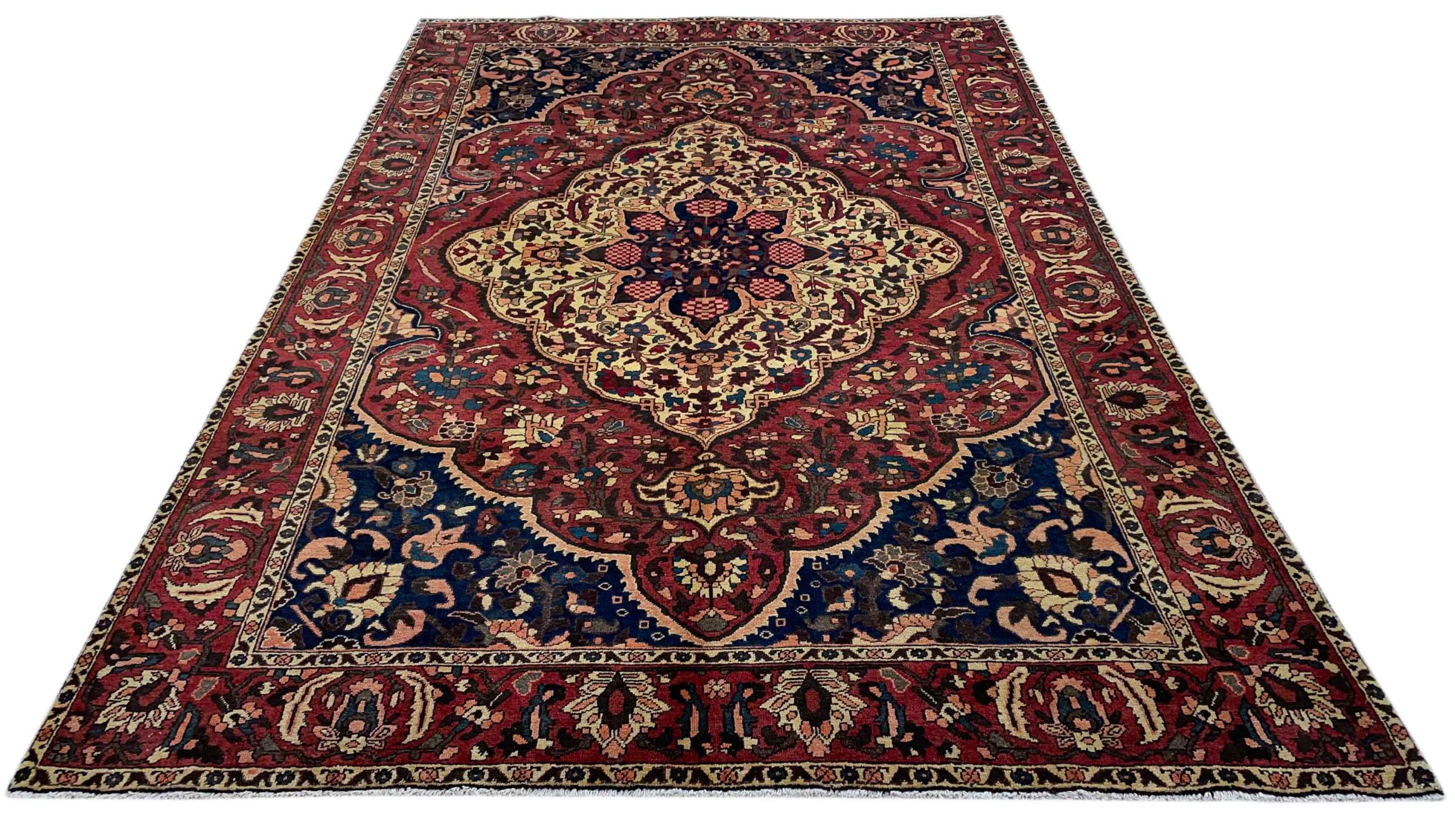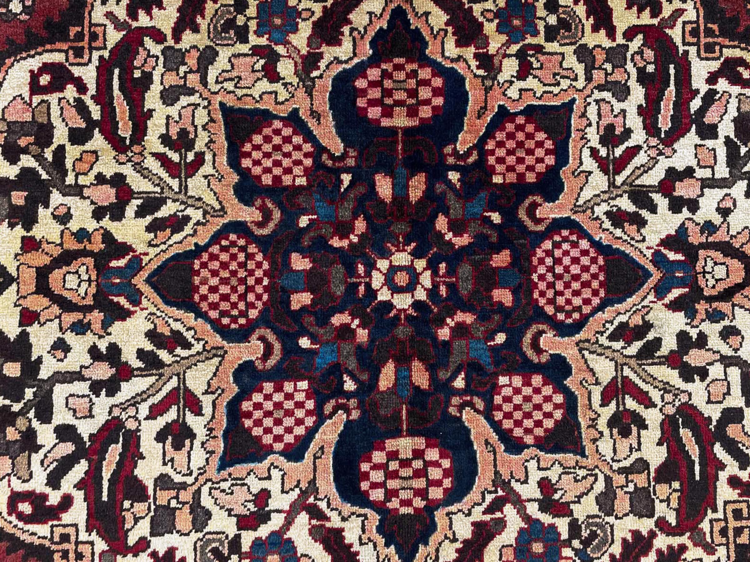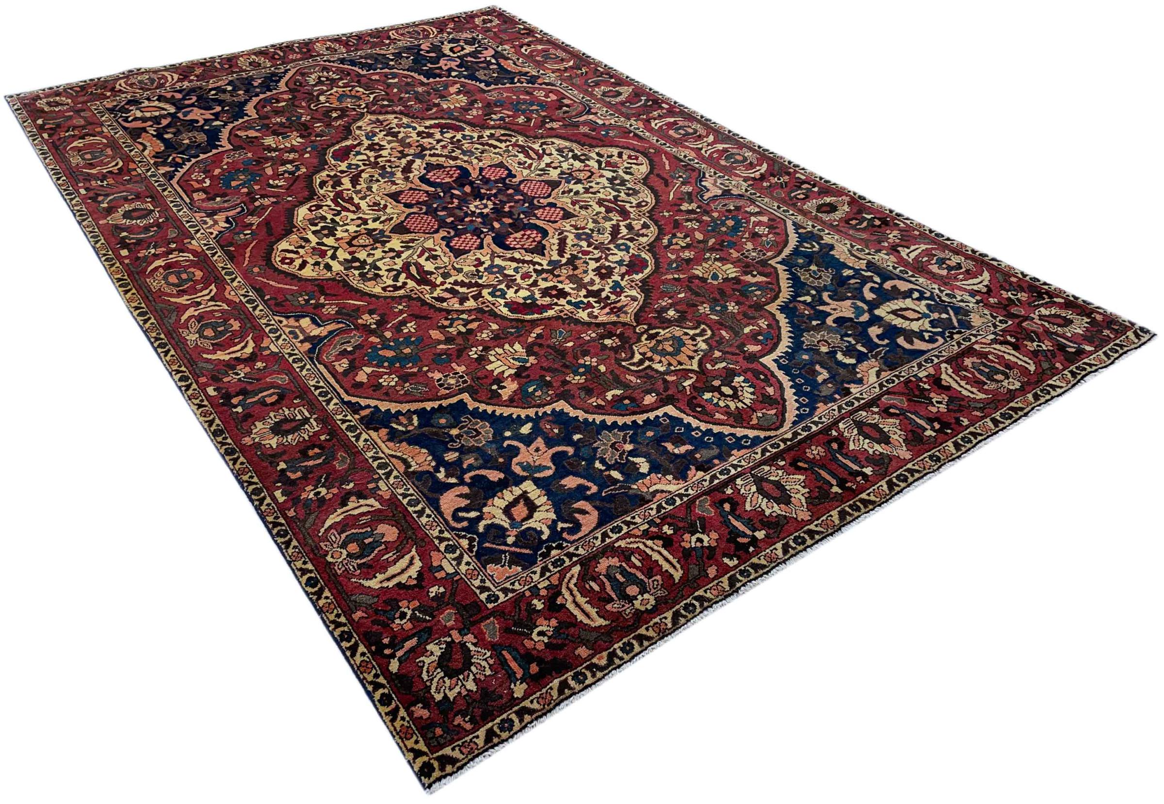 This Persian Bakhtiari was hand-knotted by nomads of the Bakhtiari tribe. This Persian carpet plays with the colours of the Orient in the most beautiful patterns. The design of its ornaments is inspired by Persian gardens. Over the years, the so-called traditional garden design has gained great popularity in the western world. Its high knotting density in combination with the strong yarn promises a long-lasting pleasure of Persian carpet art.