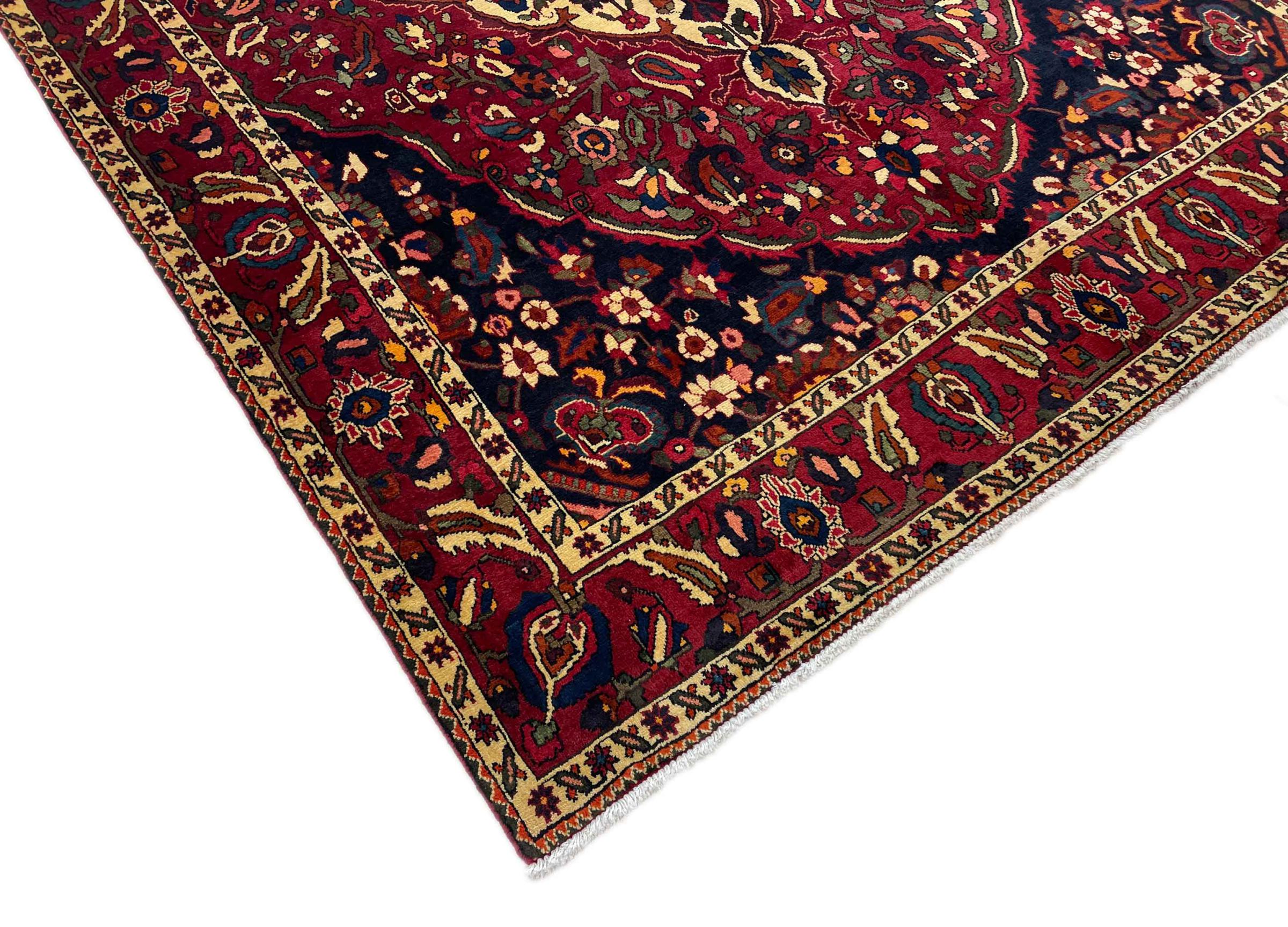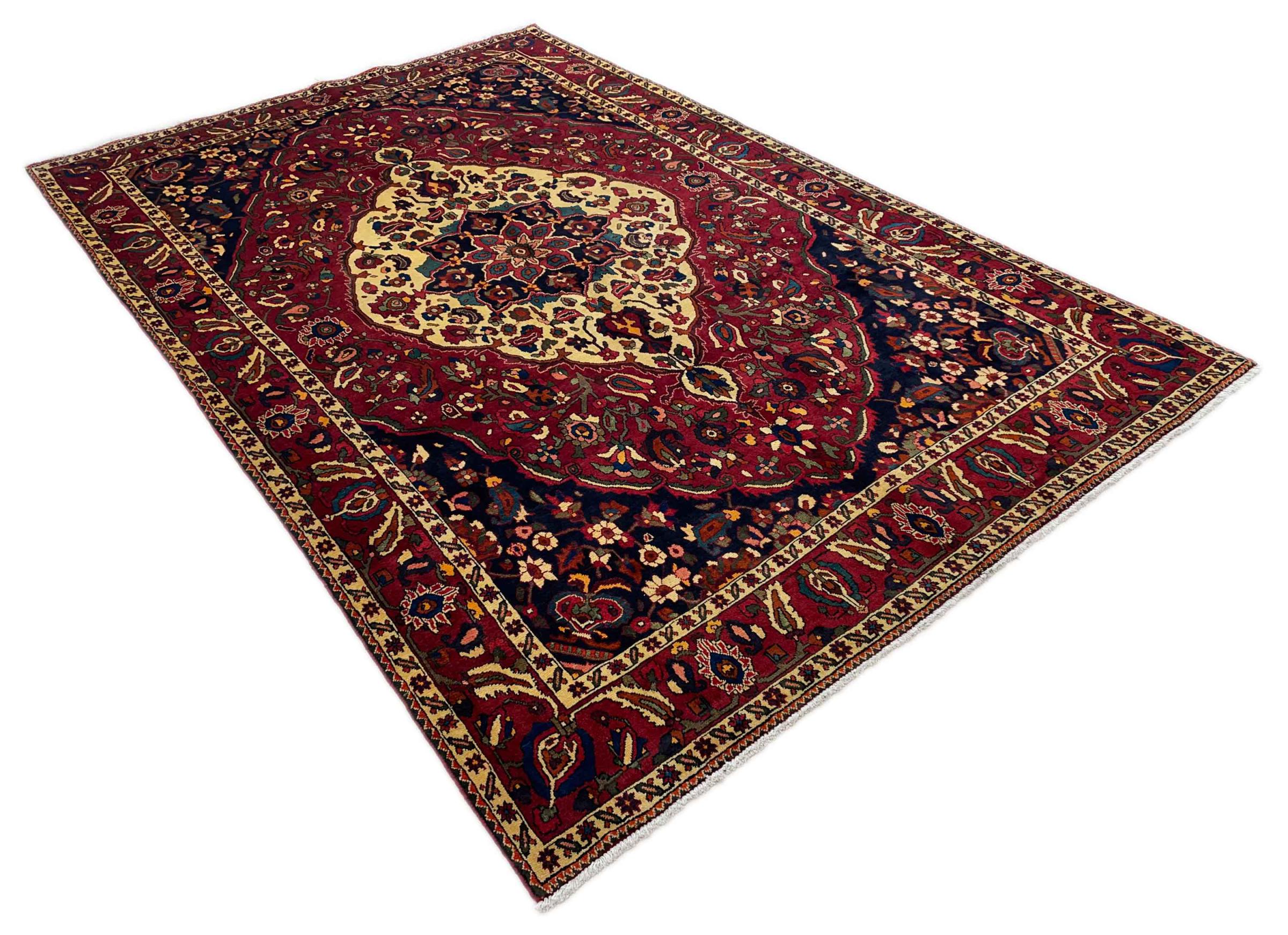 Carpet ID: 318000007155908 Size: 336x221 cm Thickness: ap. 12 mm Knot density: 128 000 - 160 000 / m² Manufacturing: Knotted by hand Pile: Handspun wool Warp: Cotton Origin: Persia Age: New Weight: ap. 30 kg Also know as Baktjar In stock: Unique - Only 1 in stock