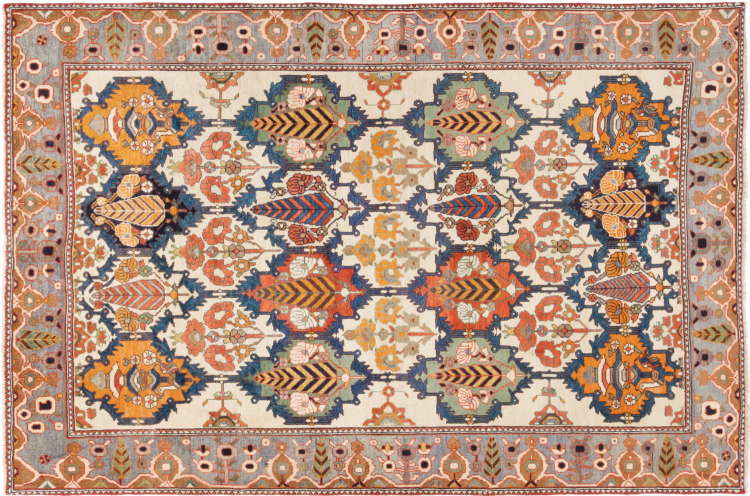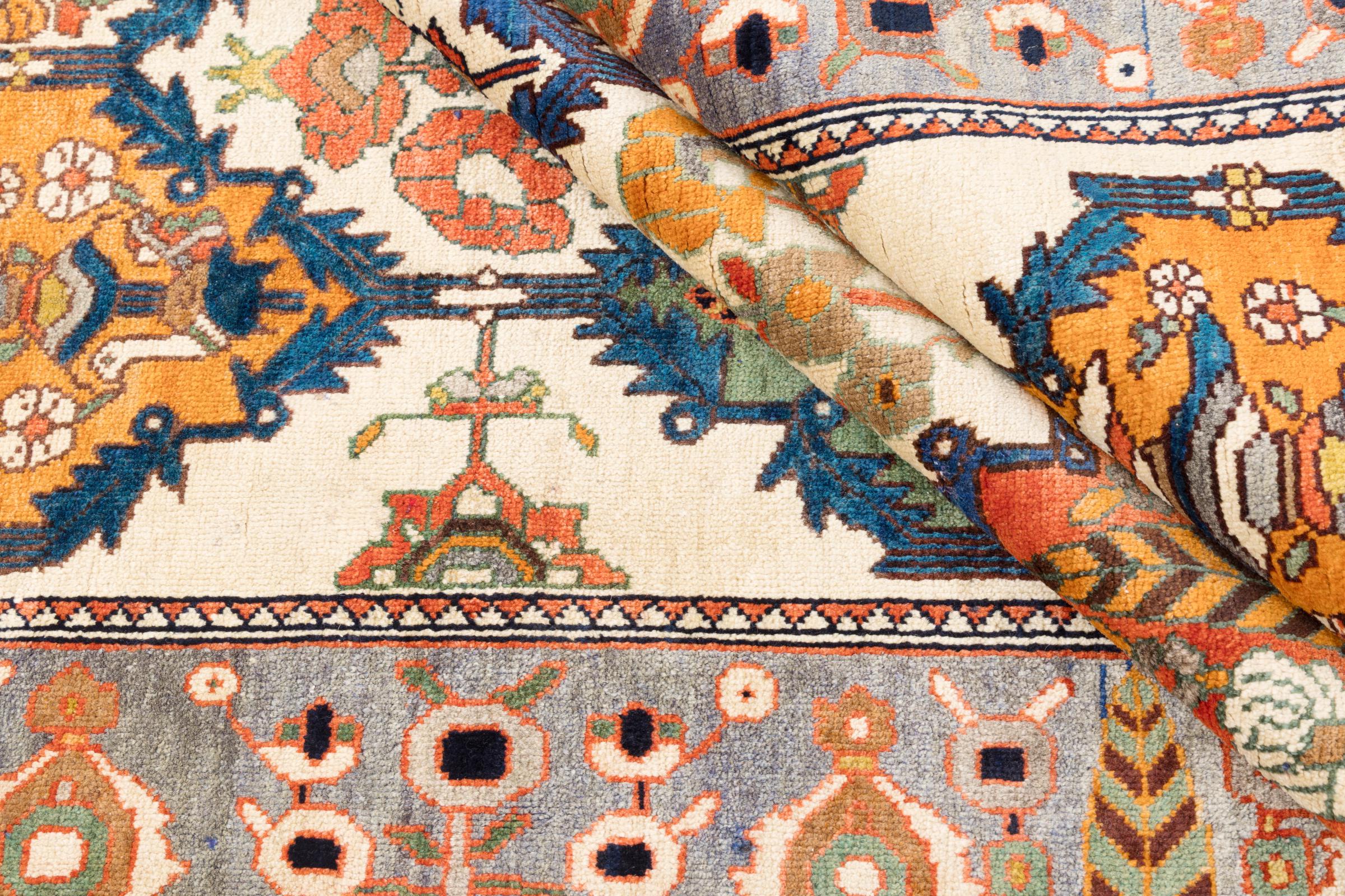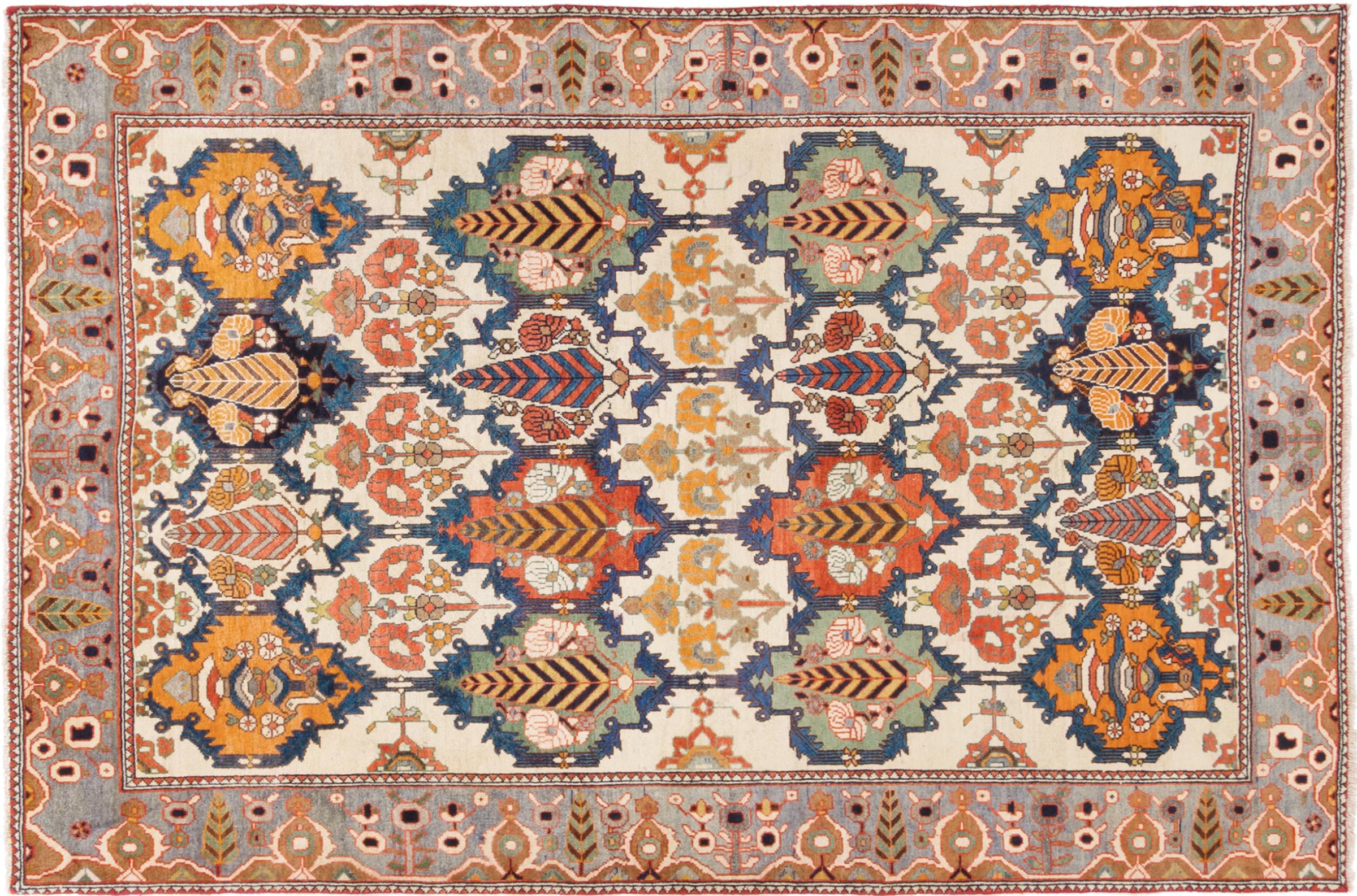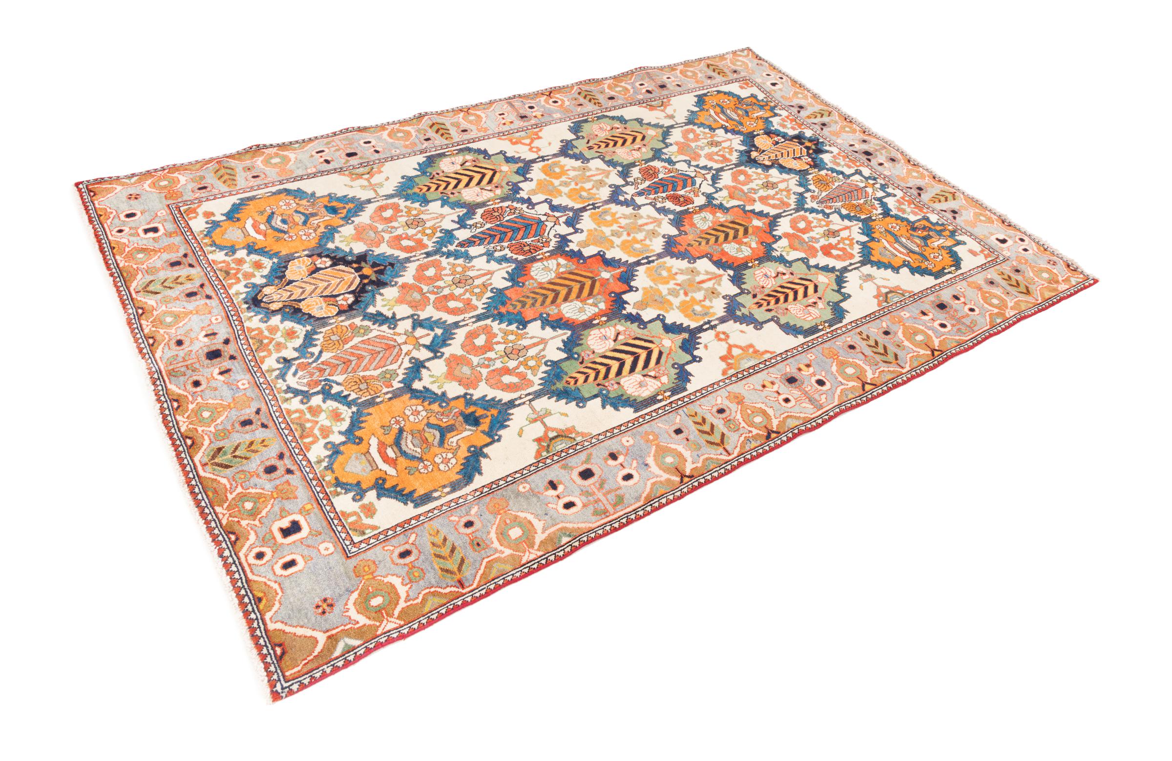 This Persian Bakhtiari was hand-knotted by nomads of the Bakhtiari tribe. This Persian carpet plays with the colours of the Orient in the most beautiful patterns. The design of its ornaments is inspired by Persian gardens. Over the years, the so-called traditional garden design has gained great popularity in the western world. Its high knotting density in combination with the strong yarn promises a long-lasting pleasure of Persian carpet art.