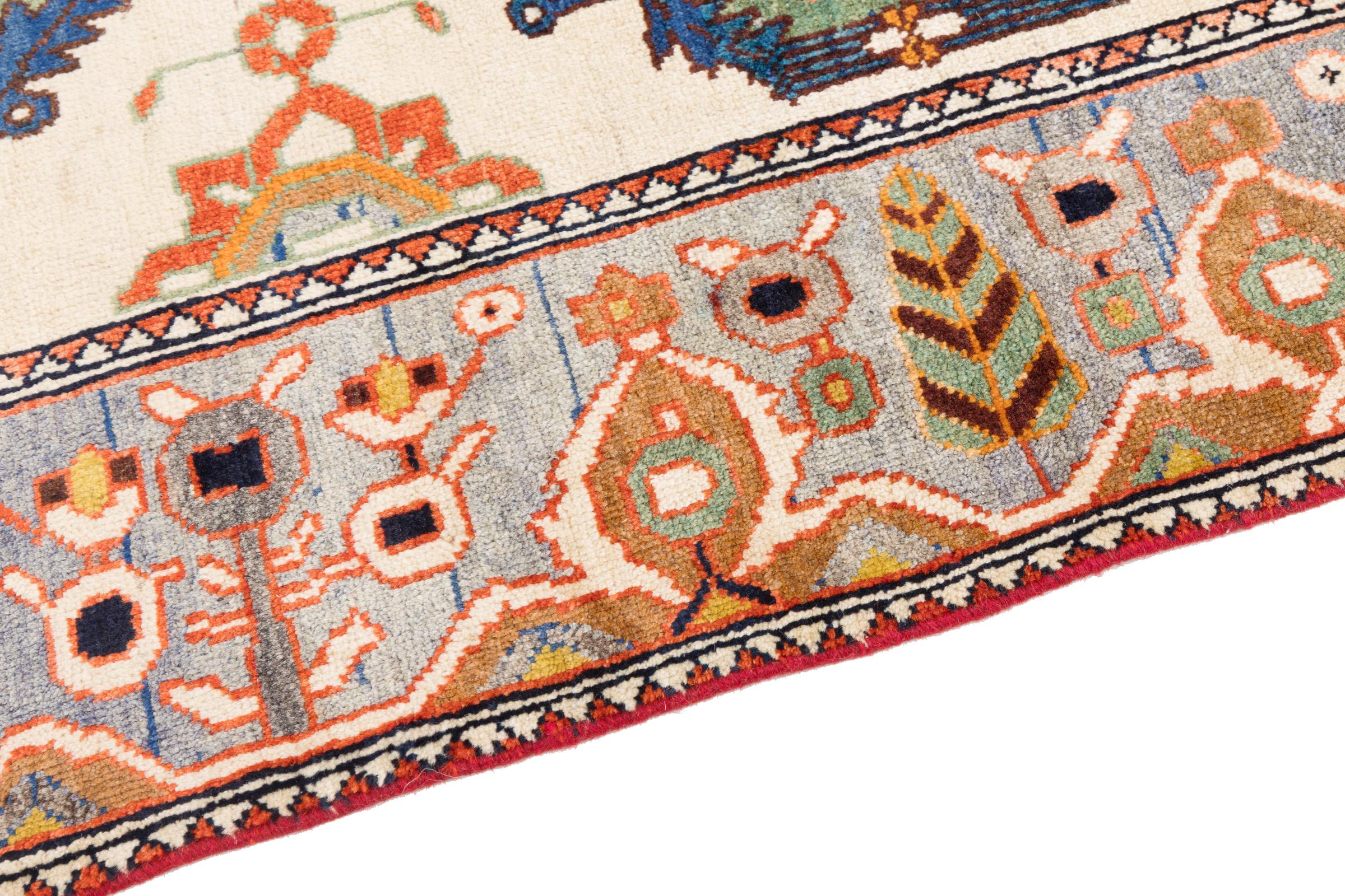 This rug belongs to village and nomadic rugs from Iran, formerly Persia. This type of rug is knotted by hand in smaller towns and villages in old tradition. Even nomads still knot Persian rugs in the open air. The rugs are knotted without a draft and completely from the mind. They are characterized by classical ornaments, which are arranged in straight and geometrical patterns. Thanks to their cultural-traditional origin, these rugs have a unique character that embodies ancient Persia.