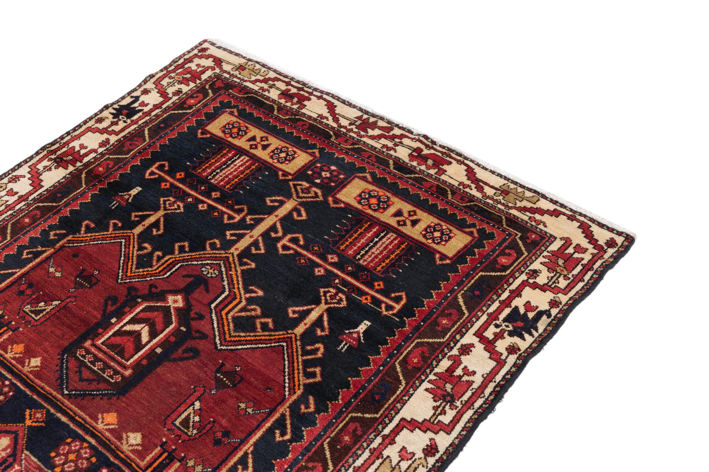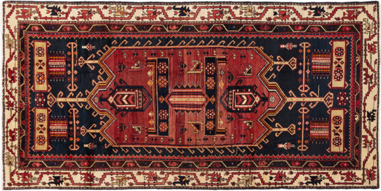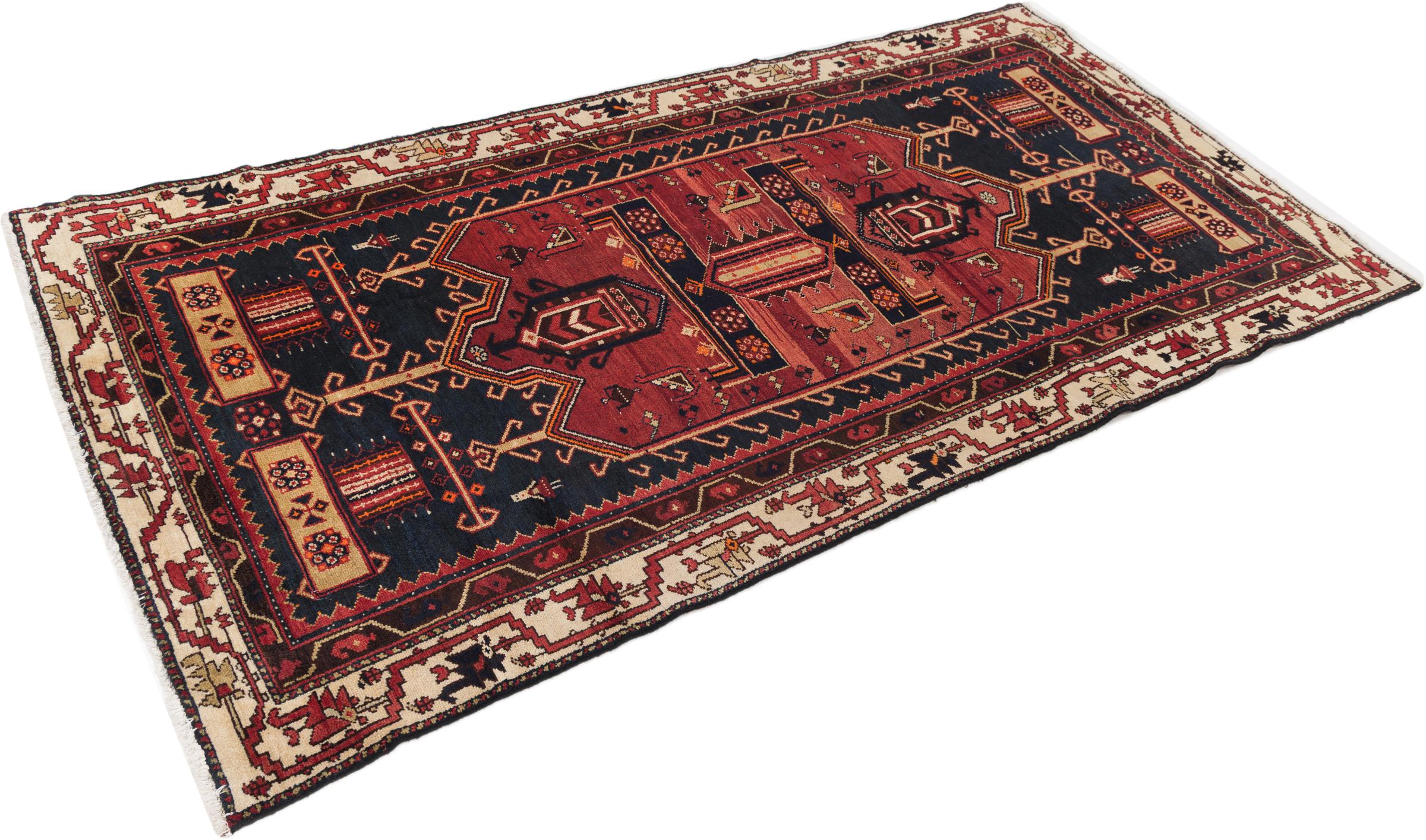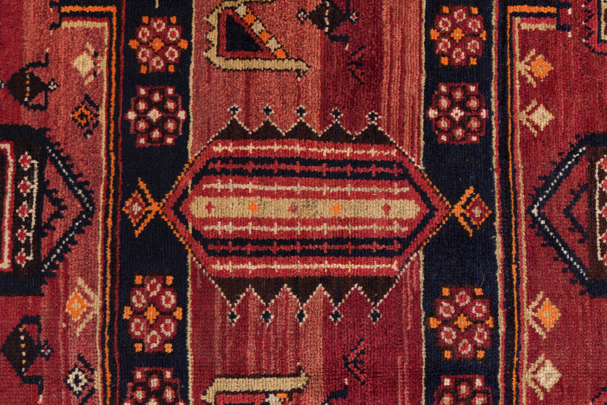 This rug belongs to village and nomadic rugs from Iran, formerly Persia. This type of rug is knotted by hand in smaller towns and villages in old tradition. Even nomads still knot Persian rugs in the open air. The rugs are knotted without a draft and completely from the mind. They are characterized by classical ornaments, which are arranged in straight and geometrical patterns. Thanks to their cultural-traditional origin, these rugs have a unique character that embodies ancient Persia.