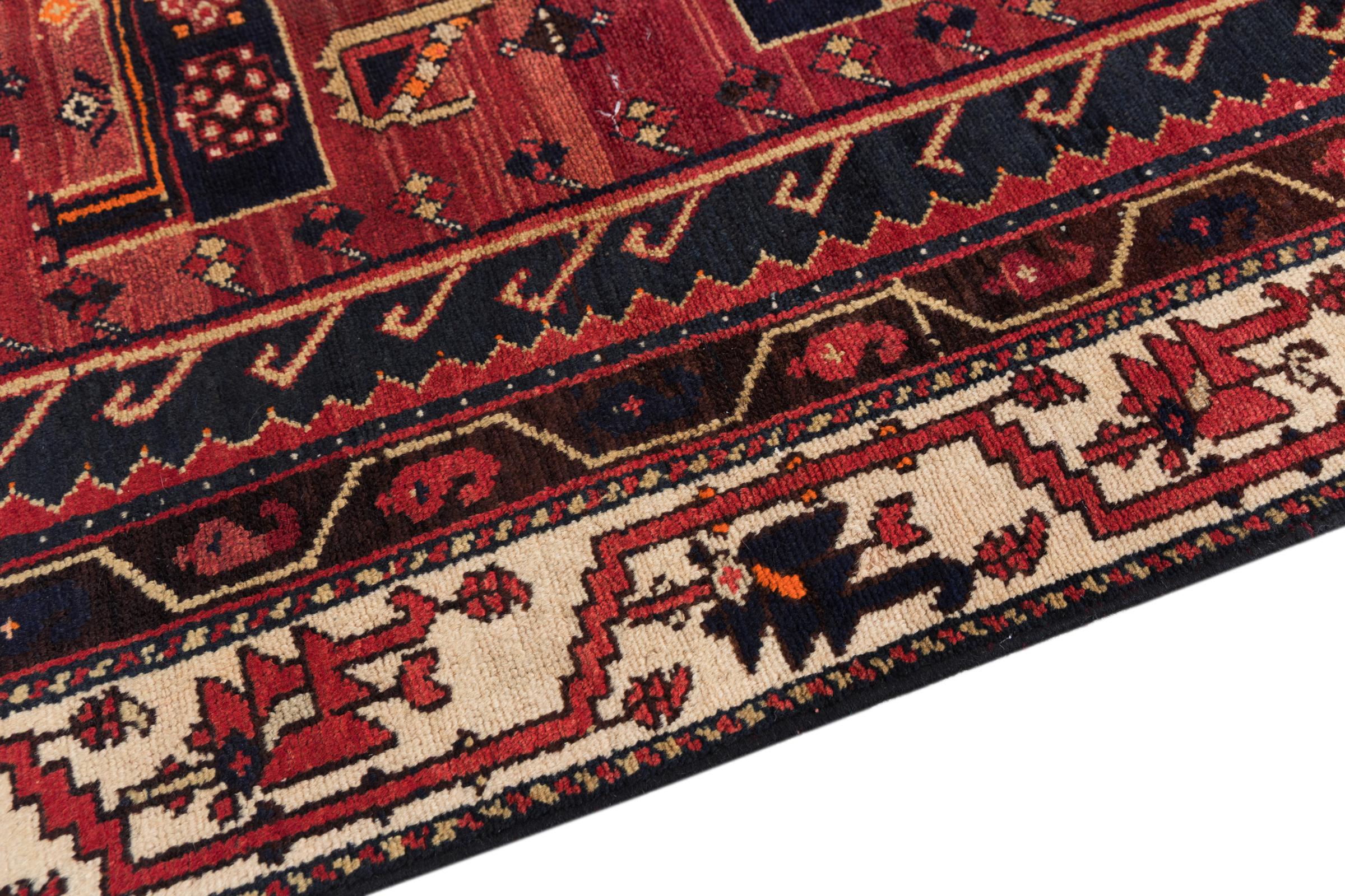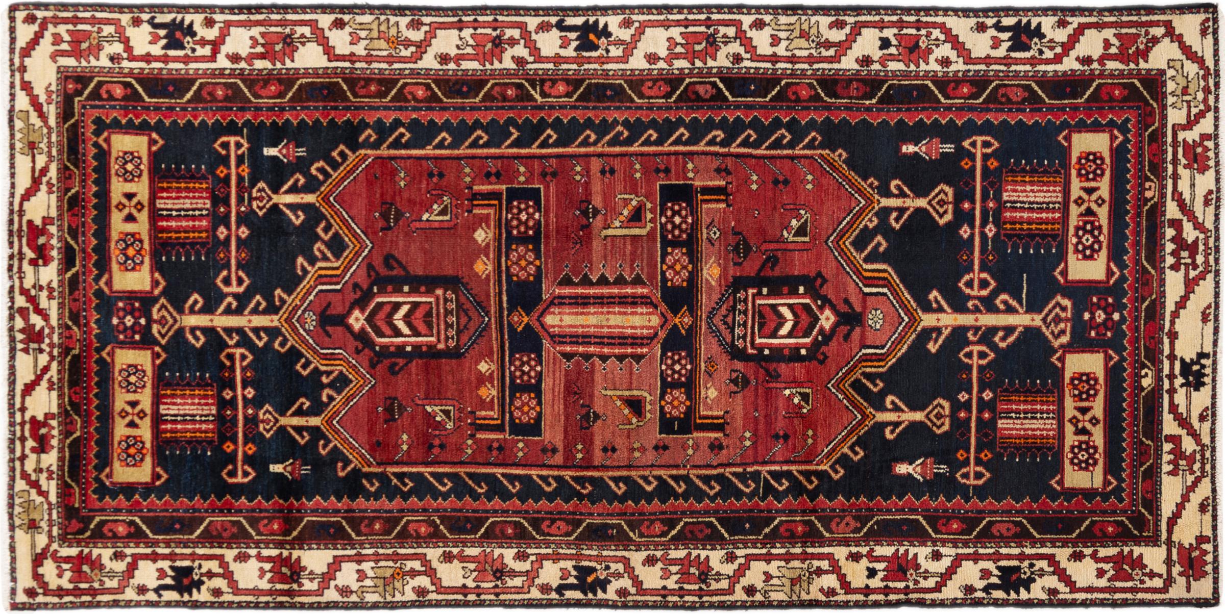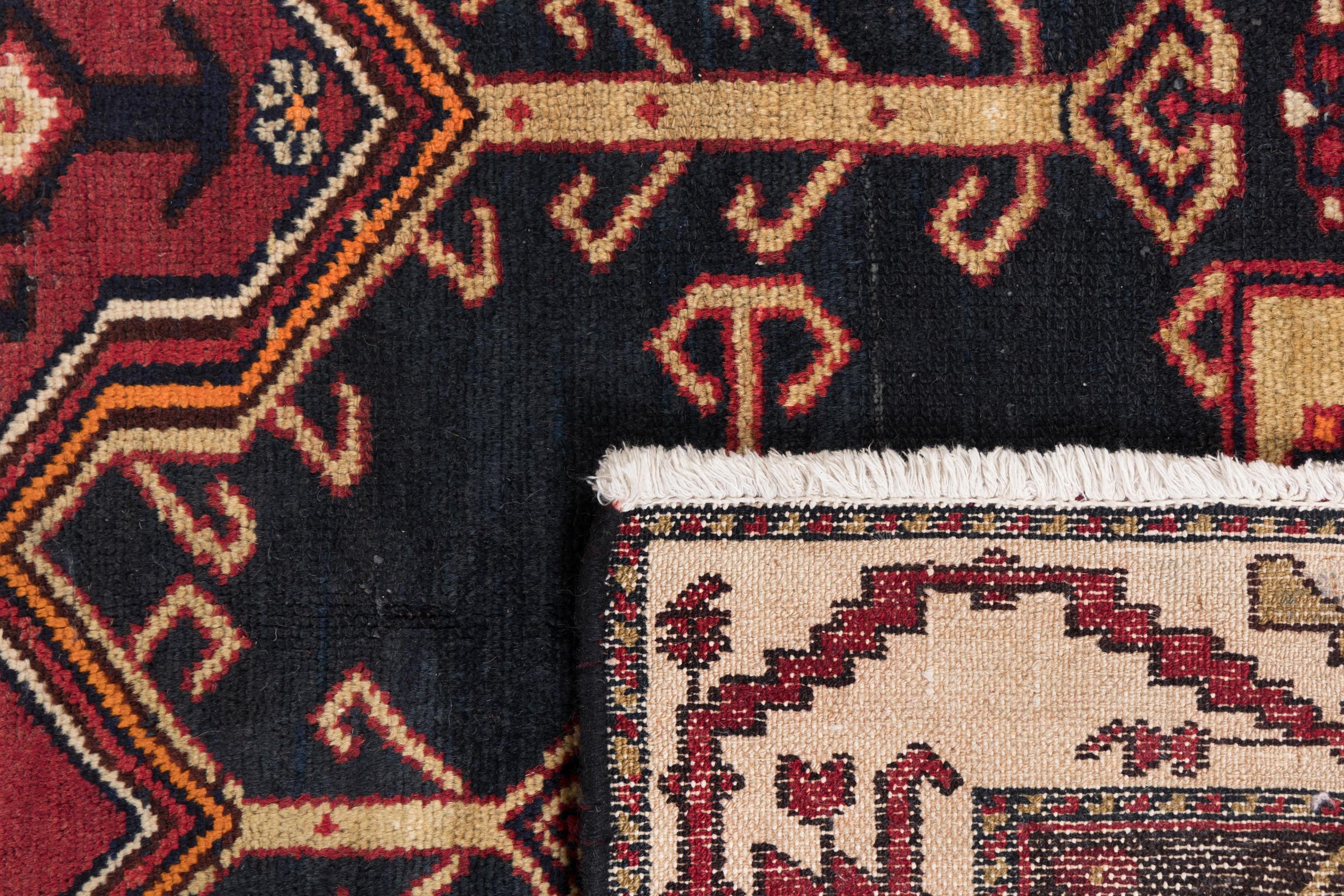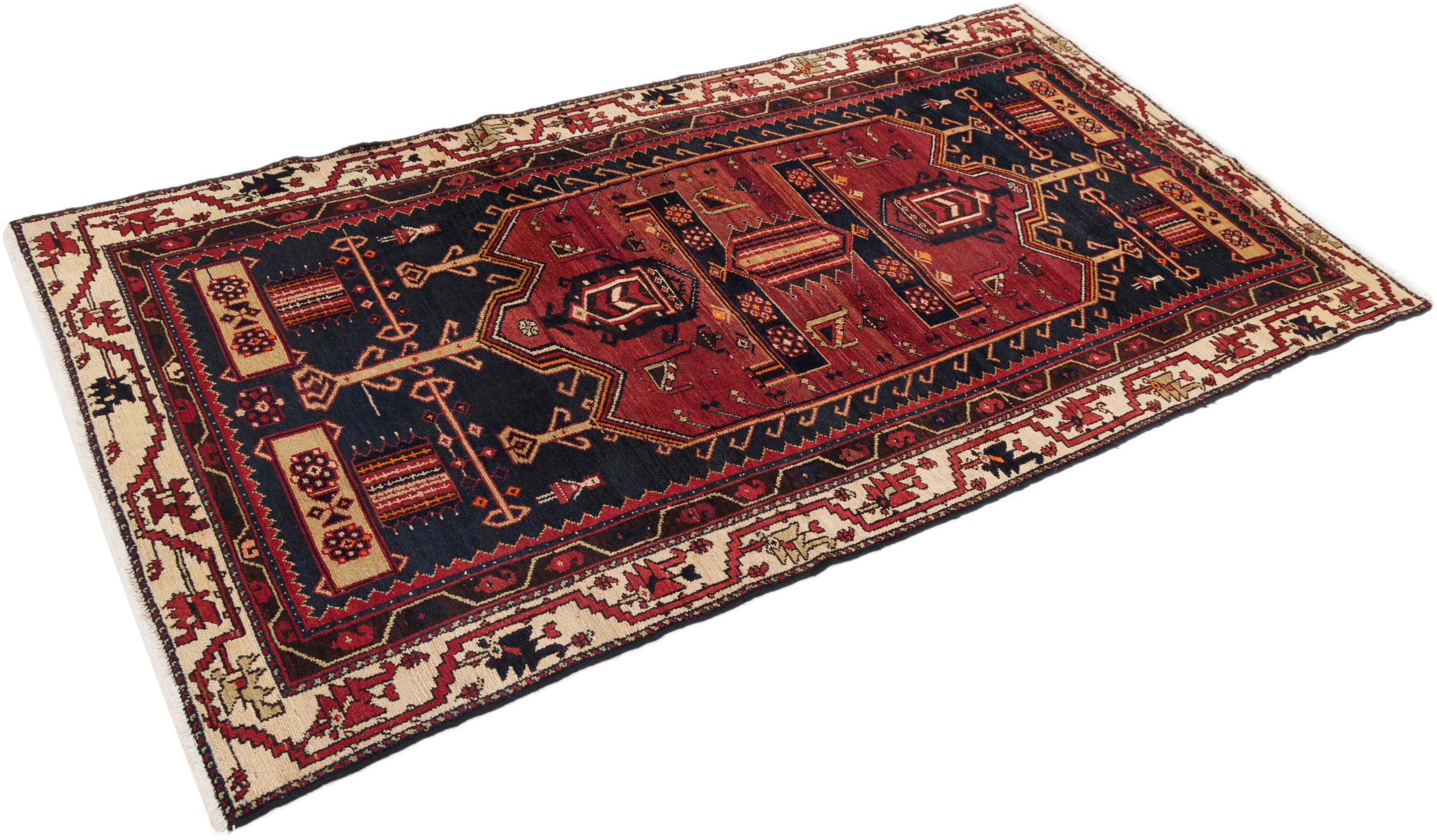 This rug belongs to village and nomadic rugs from Iran, formerly Persia. This type of rug is knotted by hand in smaller towns and villages in old tradition. Even nomads still knot Persian rugs in the open air. The rugs are knotted without a draft and completely from the mind. They are characterized by classical ornaments, which are arranged in straight and geometrical patterns. Thanks to their cultural-traditional origin, these rugs have a unique character that embodies ancient Persia.