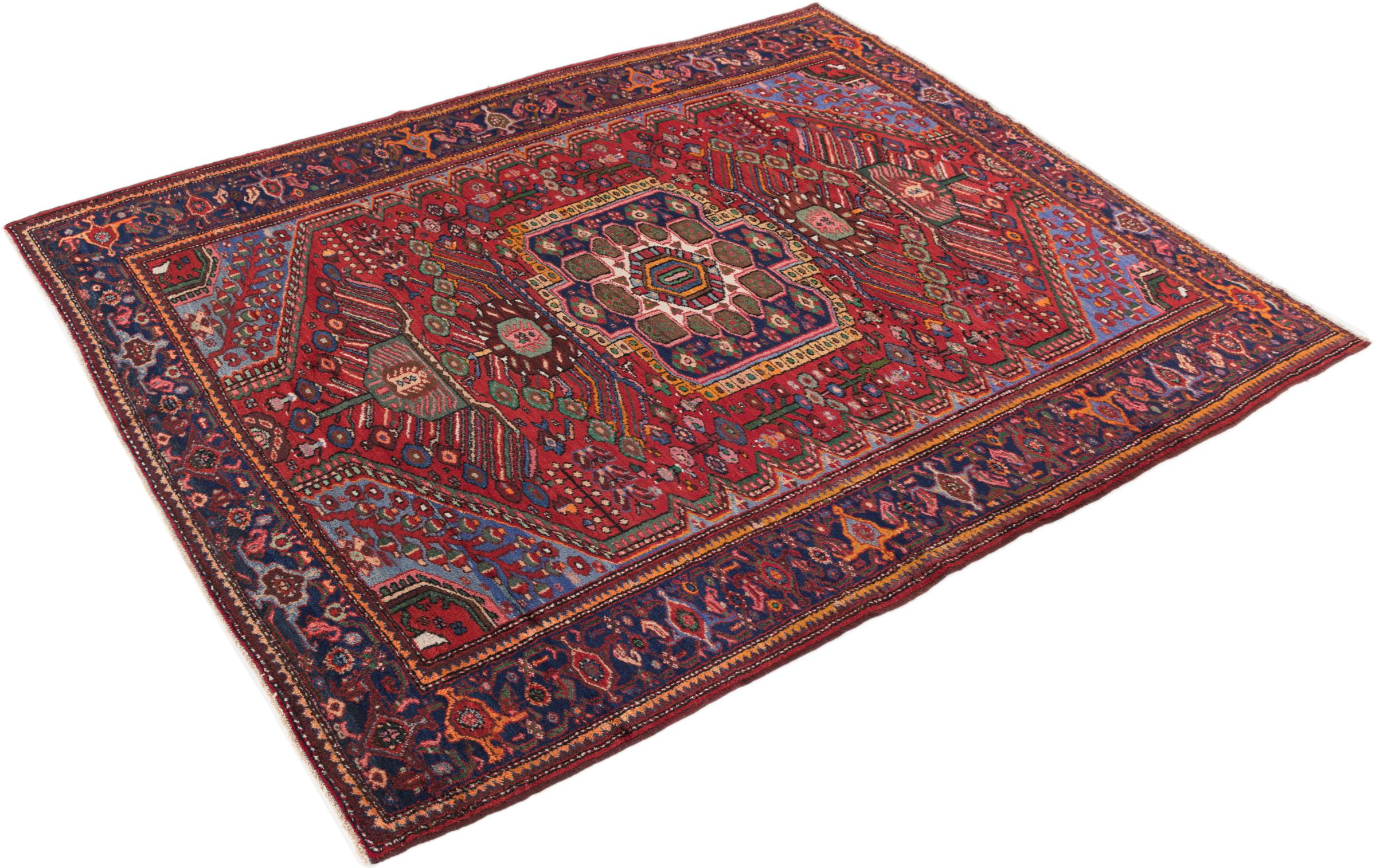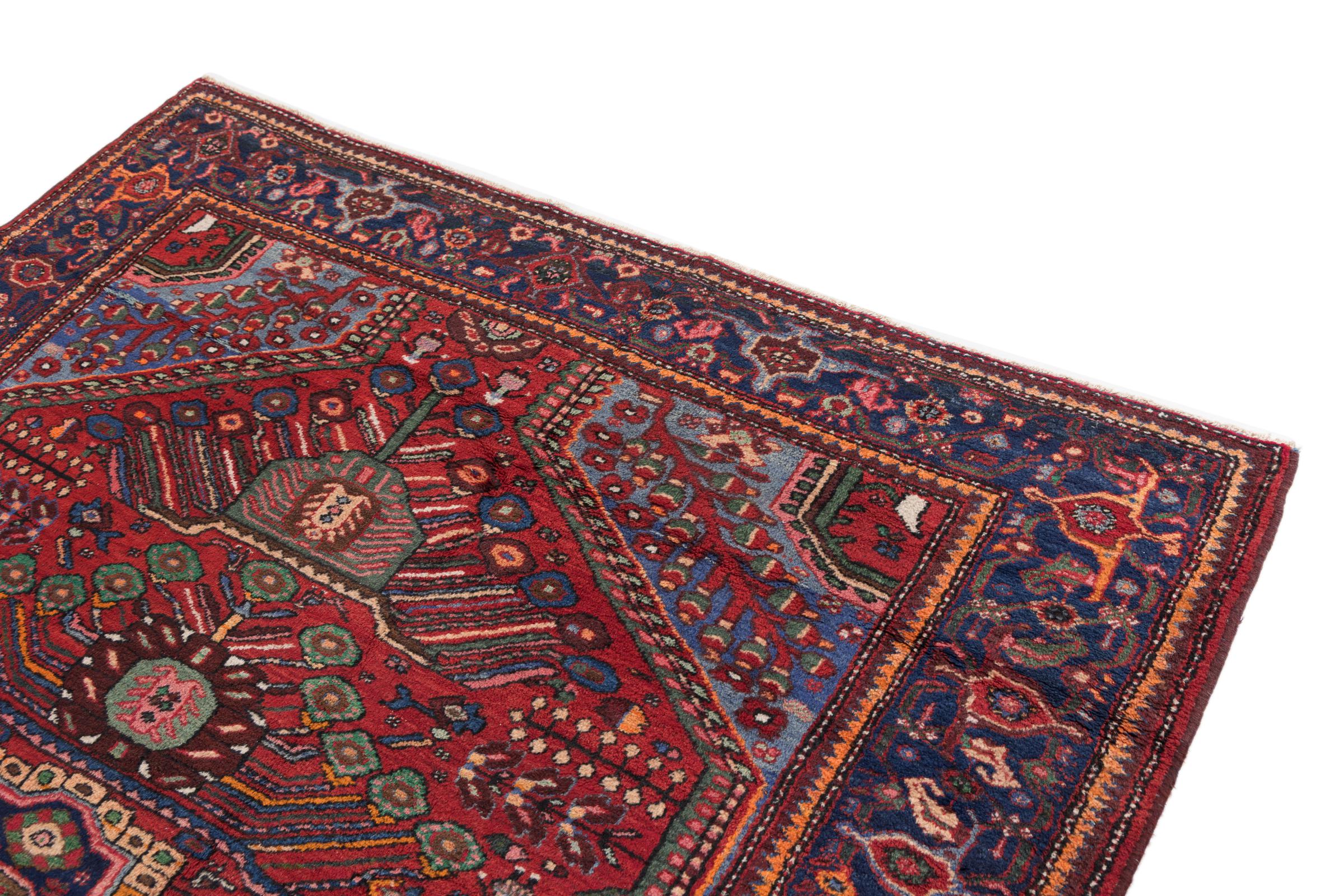 This Persian Bakhtiari was hand-knotted by nomads of the Bakhtiari tribe. This Persian carpet plays with the colours of the Orient in the most beautiful patterns. The design of its ornaments is inspired by Persian gardens. Over the years, the so-called traditional garden design has gained great popularity in the western world. Its high knotting density in combination with the strong yarn promises a long-lasting pleasure of Persian carpet art.