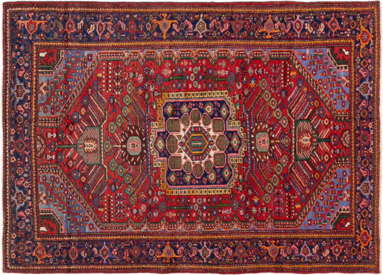 This rug belongs to village and nomadic rugs from Iran, formerly Persia. This type of rug is knotted by hand in smaller towns and villages in old tradition. Even nomads still knot Persian rugs in the open air. The rugs are knotted without a draft and completely from the mind. They are characterized by classical ornaments, which are arranged in straight and geometrical patterns. Thanks to their cultural-traditional origin, these rugs have a unique character that embodies ancient Persia.