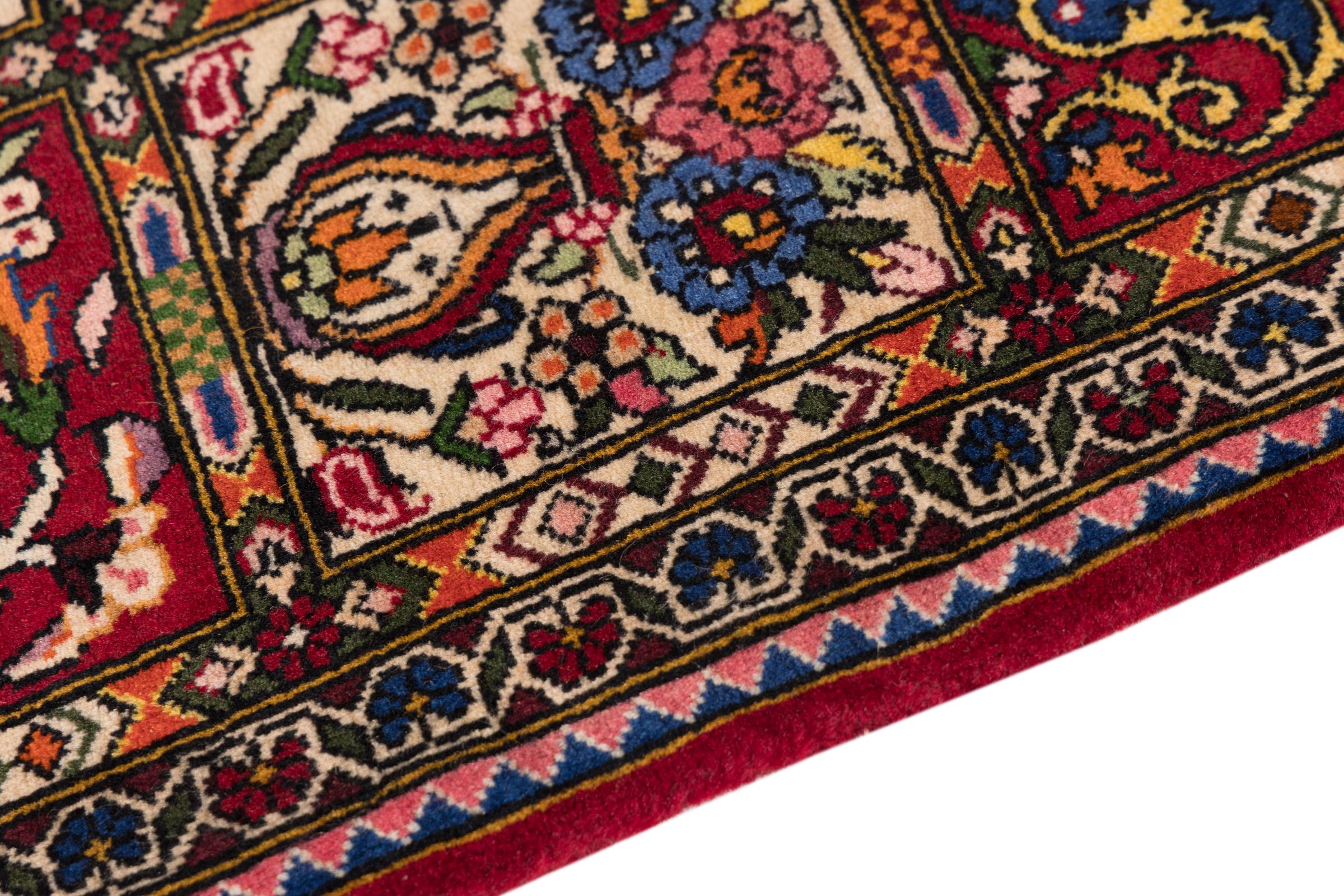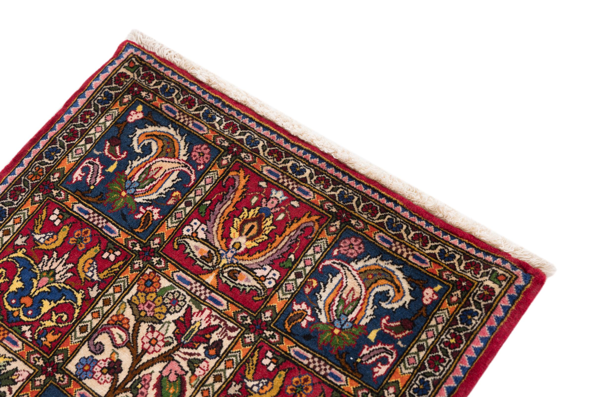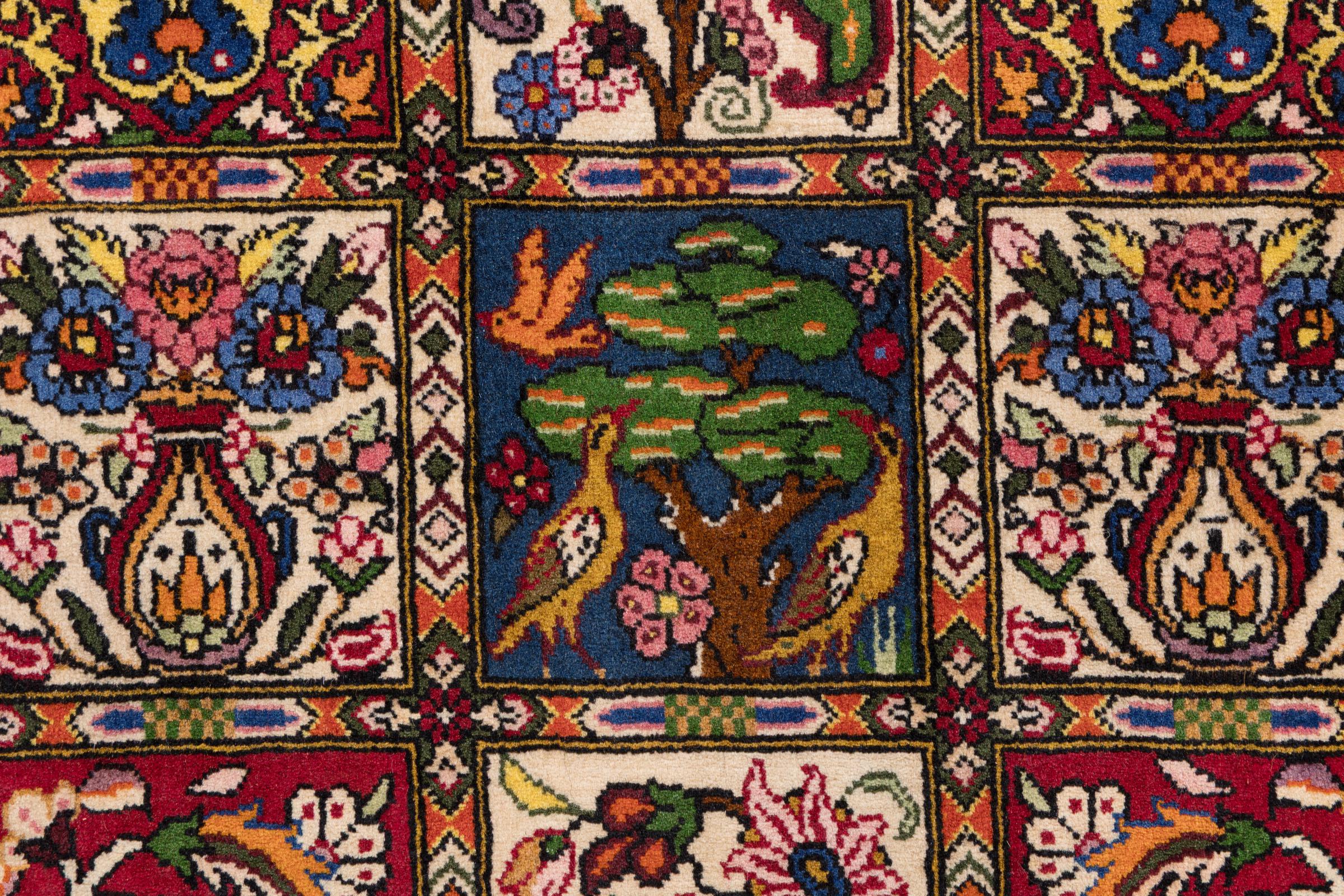 This Persian Bakhtiari was hand-knotted by nomads of the Bakhtiari tribe. This Persian carpet plays with the colours of the Orient in the most beautiful patterns. The design of its ornaments is inspired by Persian gardens. Over the years, the so-called traditional garden design has gained great popularity in the western world. Its high knotting density in combination with the strong yarn promises a long-lasting pleasure of Persian carpet art.