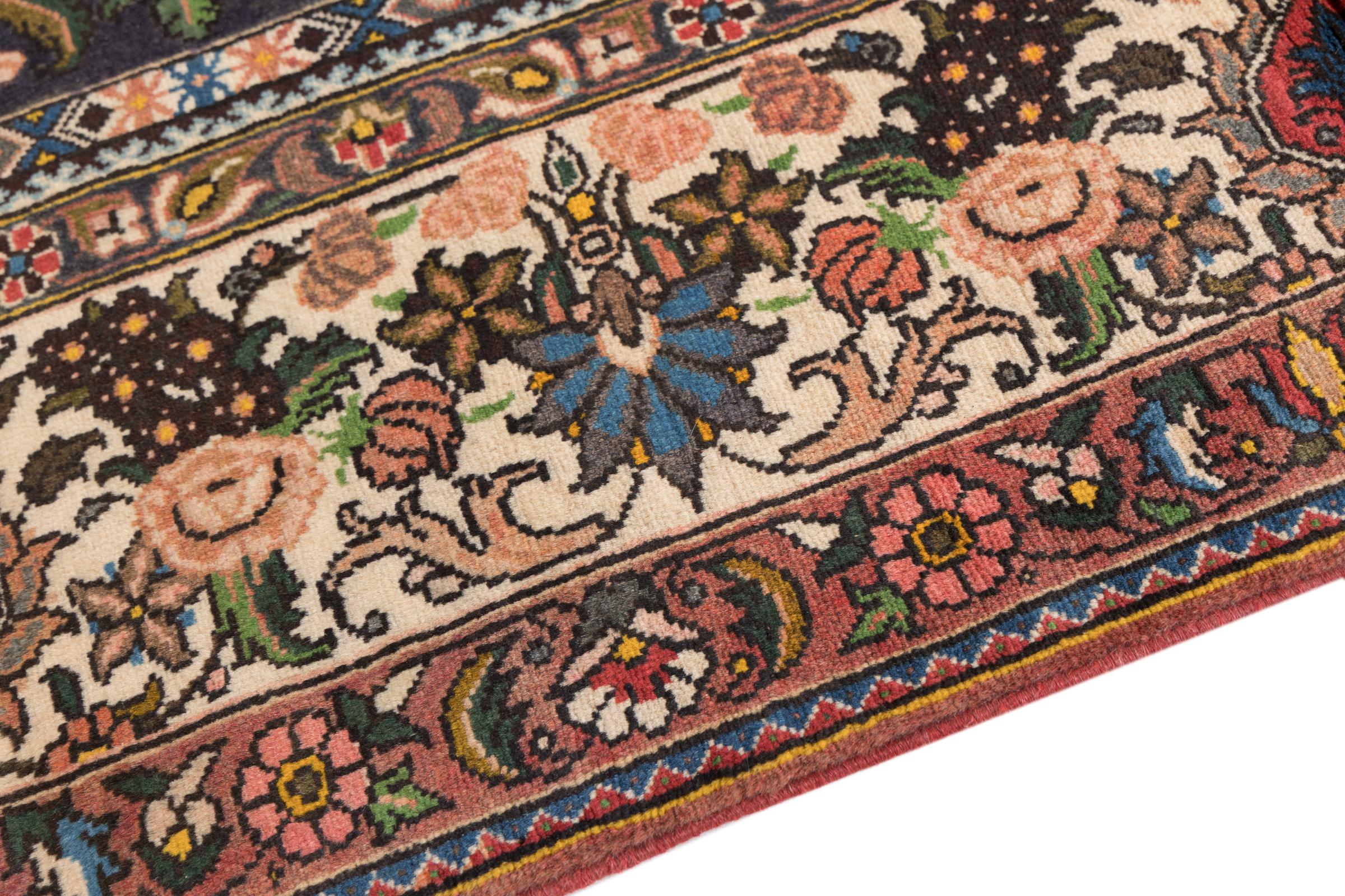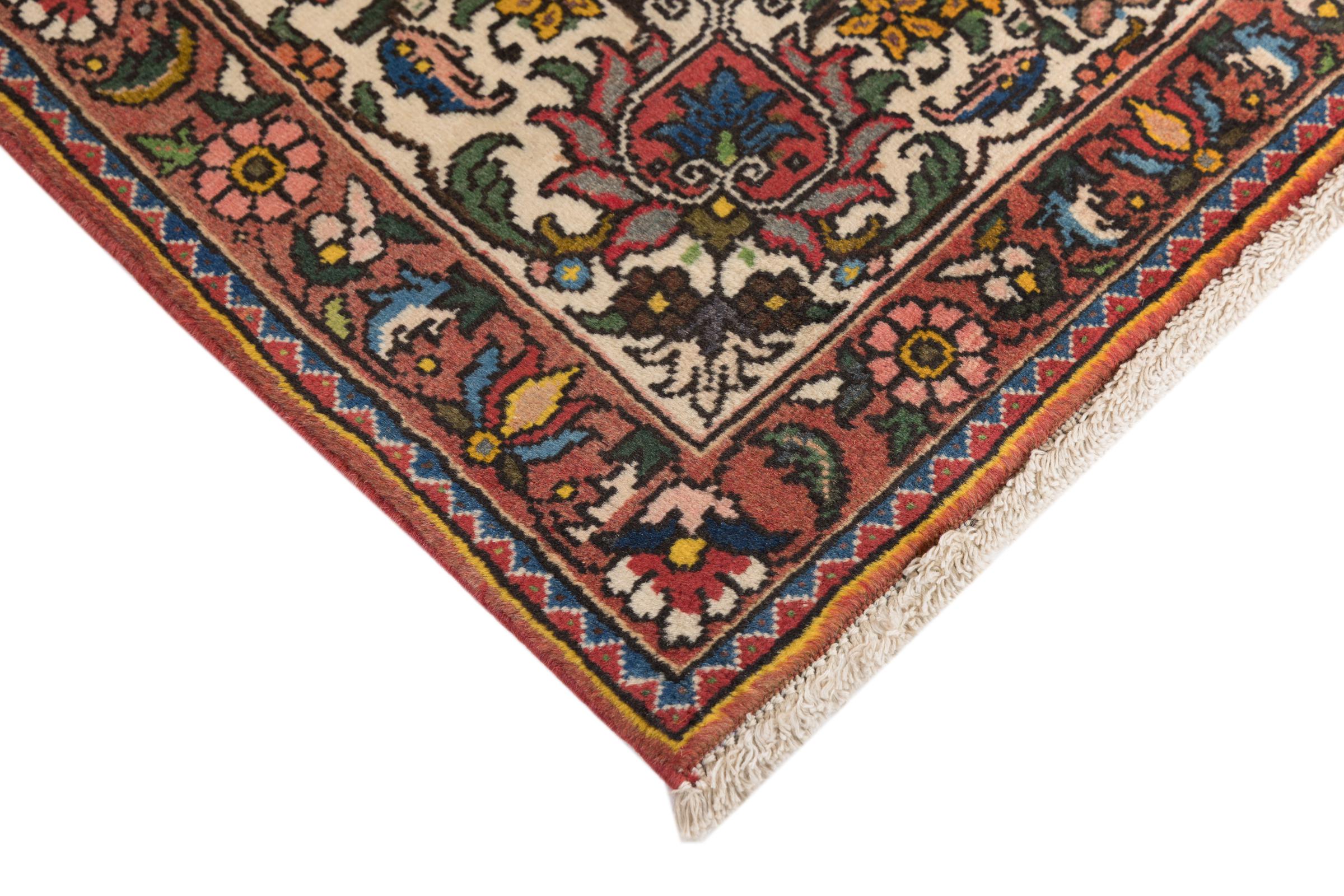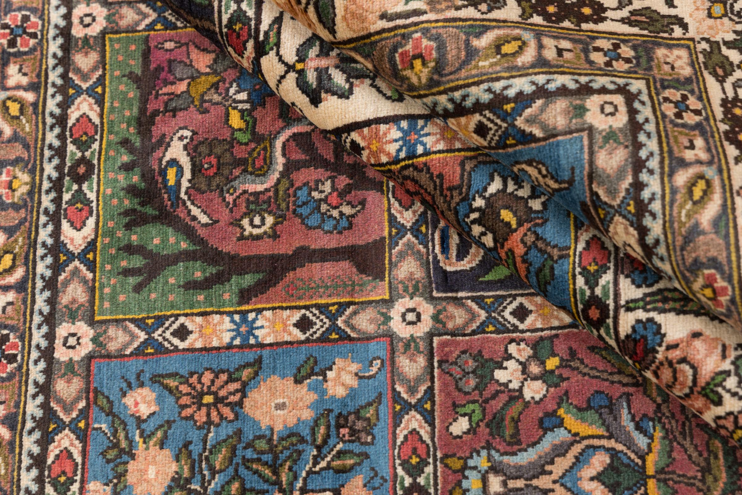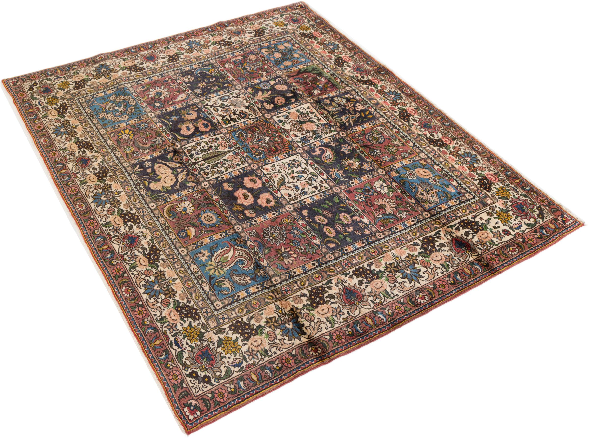 This Persian Bakhtiari was hand-knotted by nomads of the Bakhtiari tribe. This Persian carpet plays with the colours of the Orient in the most beautiful patterns. The design of its ornaments is inspired by Persian gardens. Over the years, the so-called traditional garden design has gained great popularity in the western world. Its high knotting density in combination with the strong yarn promises a long-lasting pleasure of Persian carpet art.