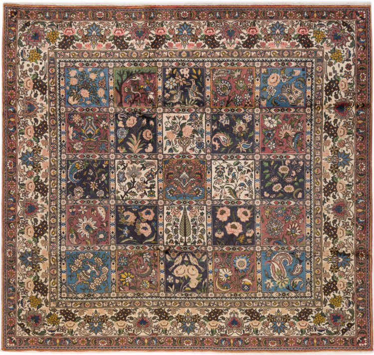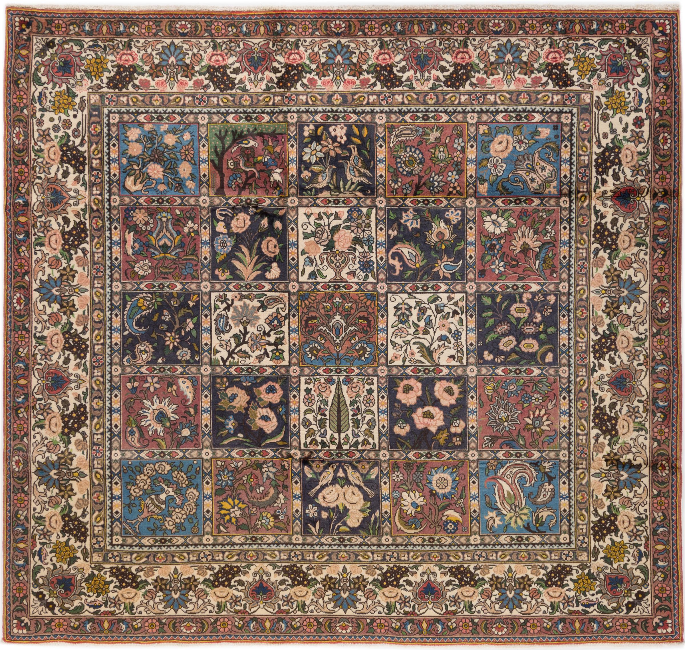 Carpet ID: 296127004754 Size: 205x195 cm Thickness: ap. 12 mm Knot density: 128 000 - 160 000 / m² Manufacturing: Knotted by hand Pile: Handspun wool Warp: Cotton Origin: Persia Age: New Weight: ap. 14 kg Also know as Baktjar In stock: Unique - Only 1 in stock