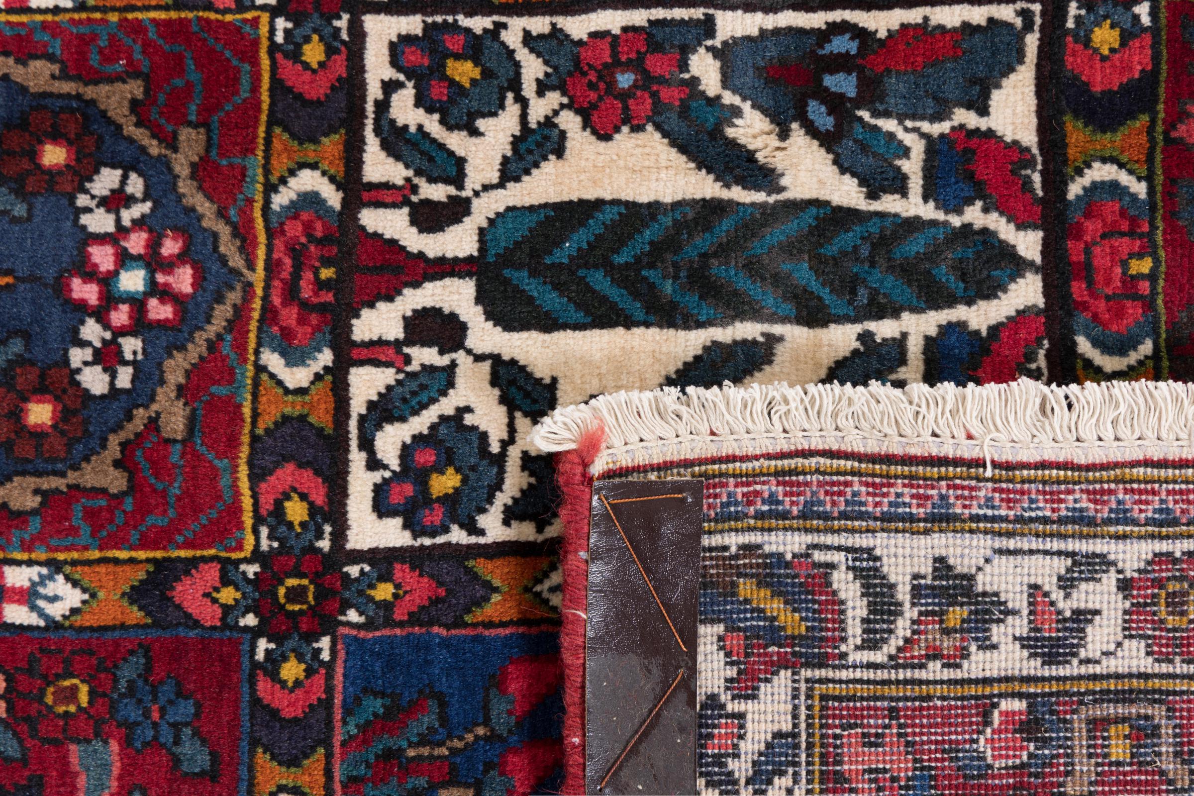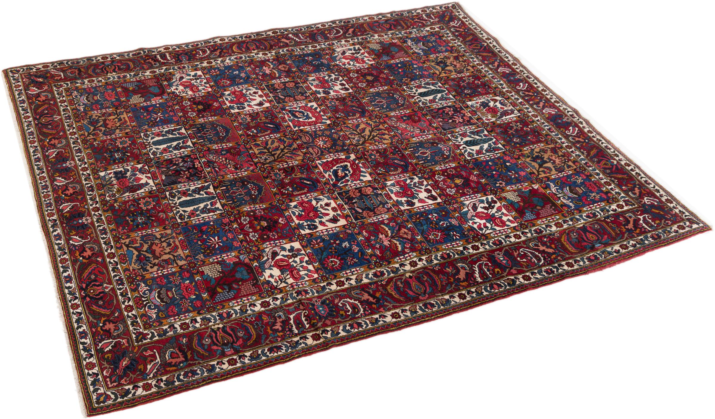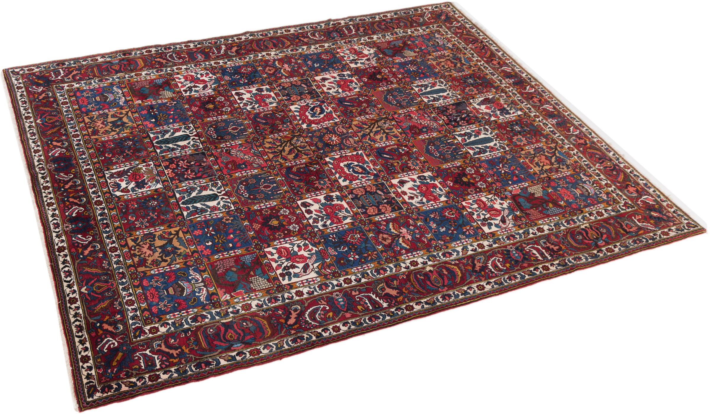 This Persian Bakhtiari was hand-knotted by nomads of the Bakhtiari tribe. This Persian carpet plays with the colours of the Orient in the most beautiful patterns. The design of its ornaments is inspired by Persian gardens. Over the years, the so-called traditional garden design has gained great popularity in the western world. Its high knotting density in combination with the strong yarn promises a long-lasting pleasure of Persian carpet art.