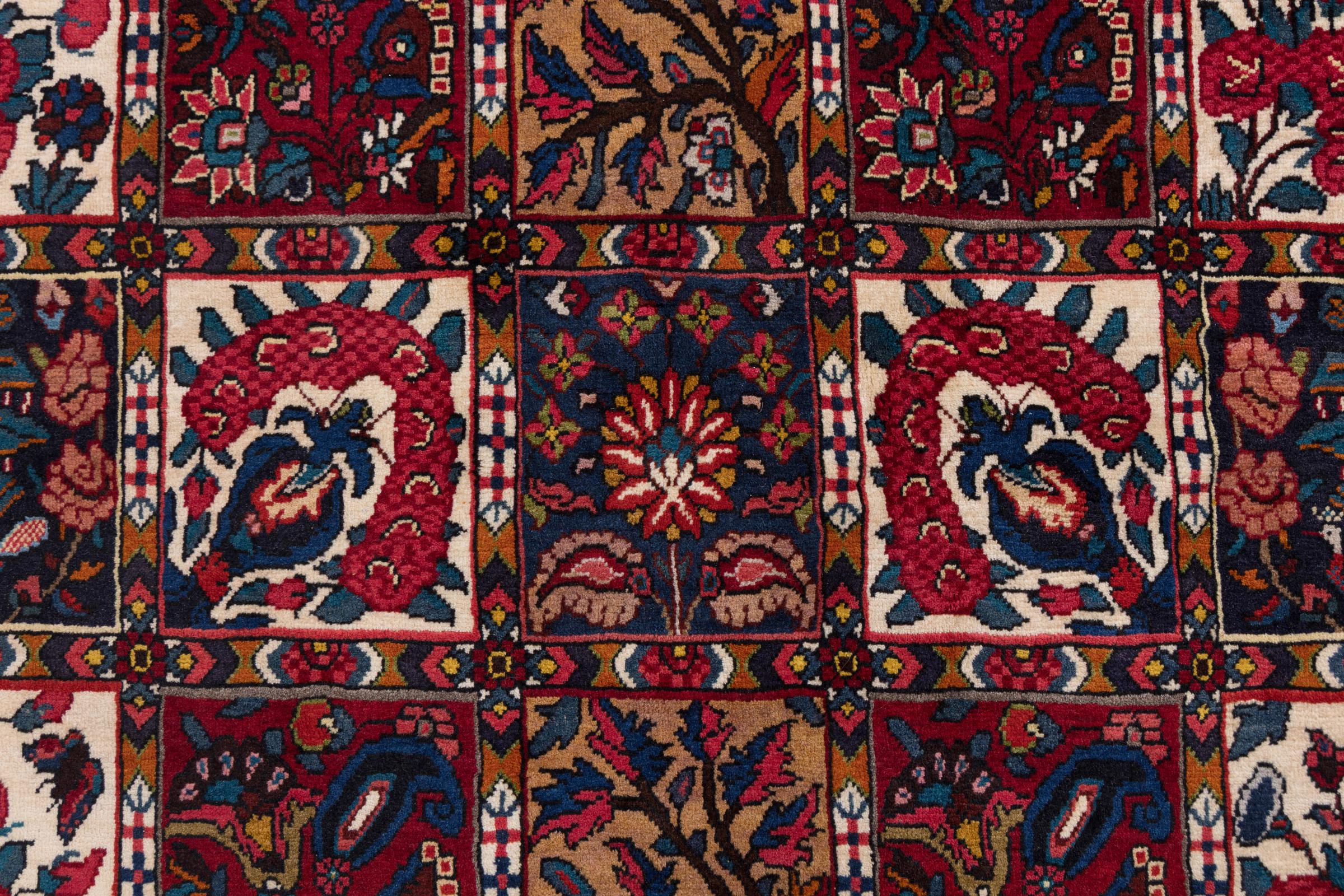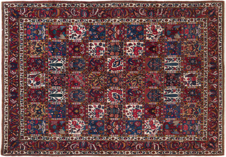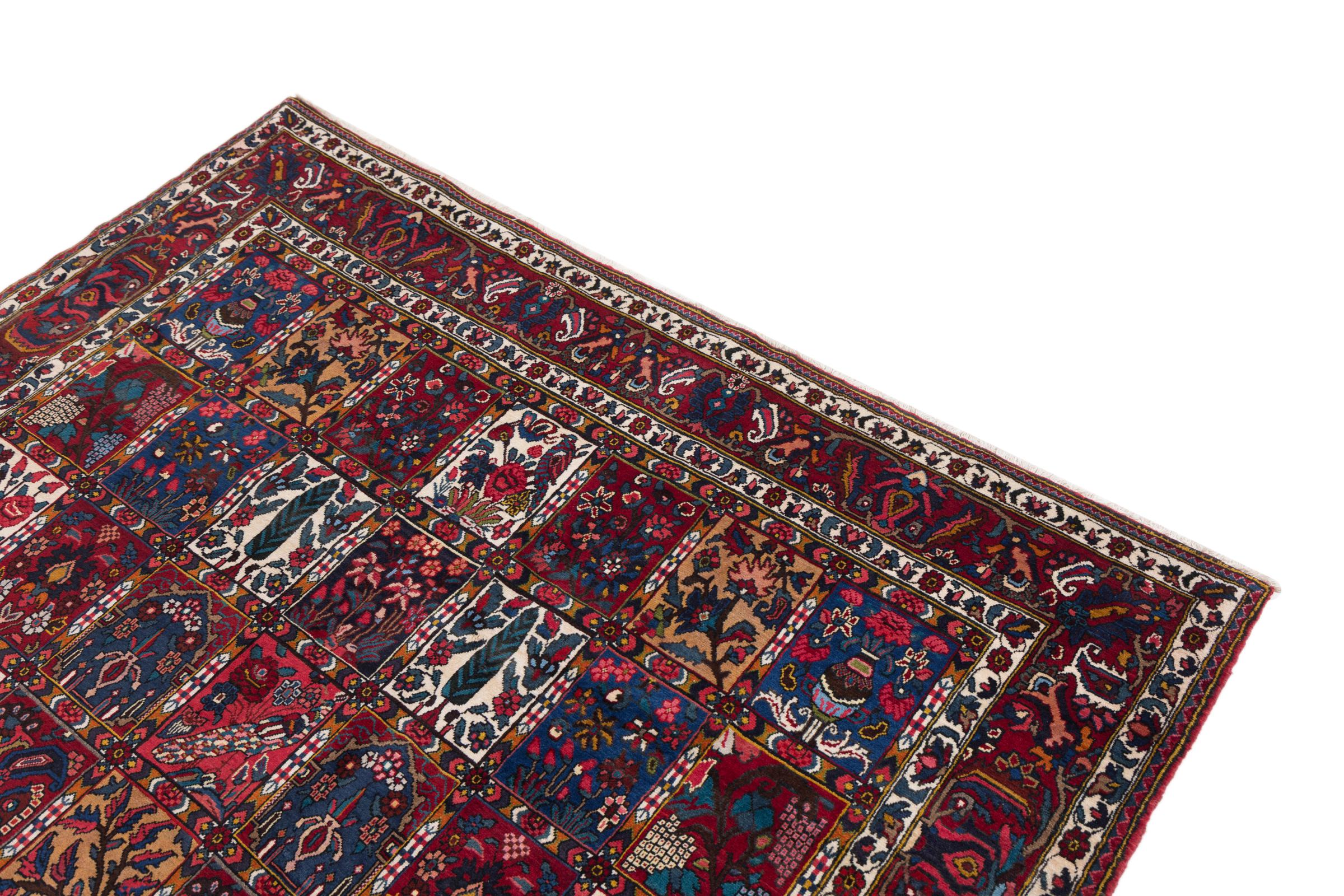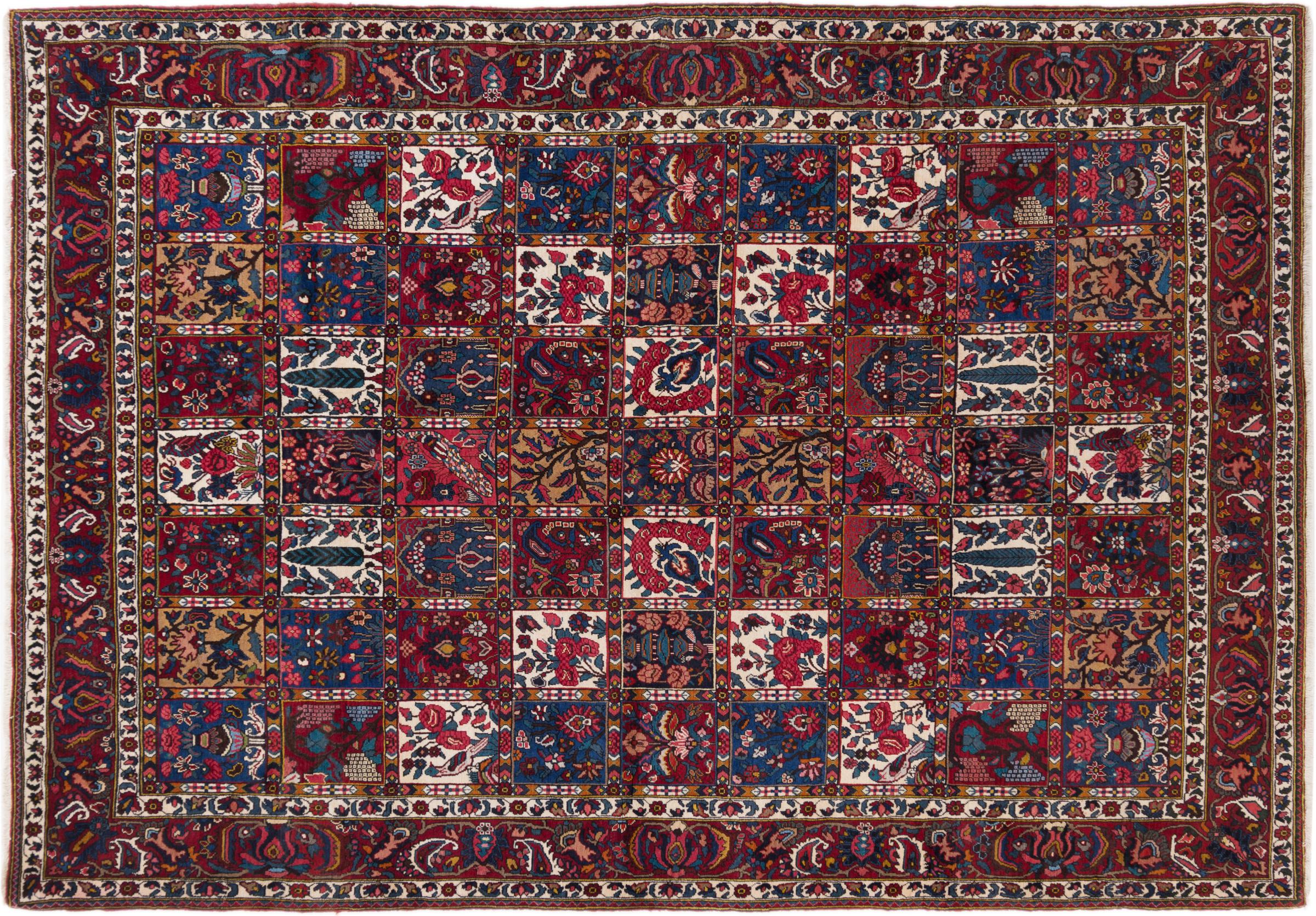This Persian Bakhtiari was hand-knotted by nomads of the Bakhtiari tribe. This Persian carpet plays with the colours of the Orient in the most beautiful patterns. The design of its ornaments is inspired by Persian gardens. Over the years, the so-called traditional garden design has gained great popularity in the western world. Its high knotting density in combination with the strong yarn promises a long-lasting pleasure of Persian carpet art.