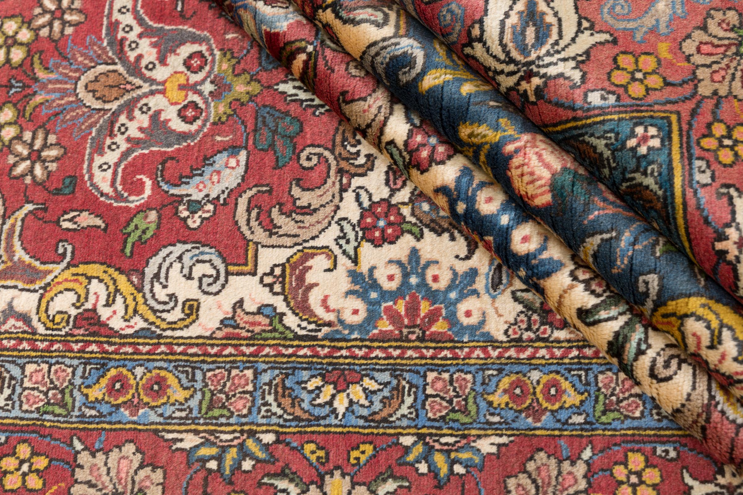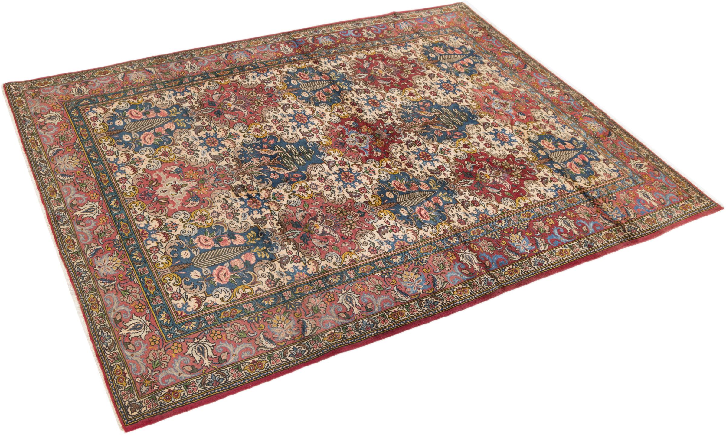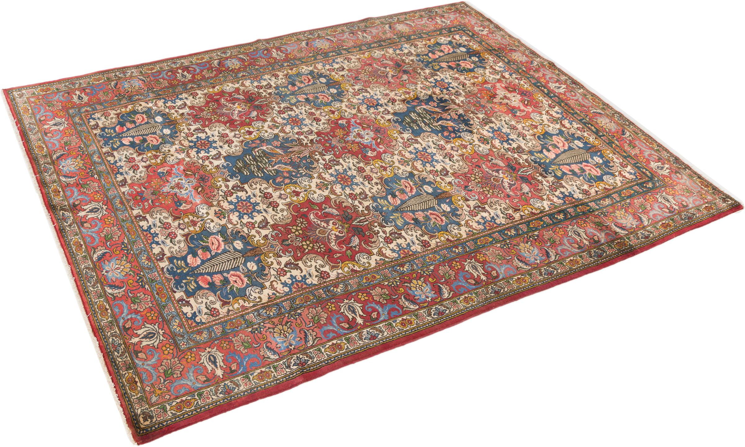 This Persian Bakhtiari was hand-knotted by nomads of the Bakhtiari tribe. This Persian carpet plays with the colours of the Orient in the most beautiful patterns. The design of its ornaments is inspired by Persian gardens. Over the years, the so-called traditional garden design has gained great popularity in the western world. Its high knotting density in combination with the strong yarn promises a long-lasting pleasure of Persian carpet art.
