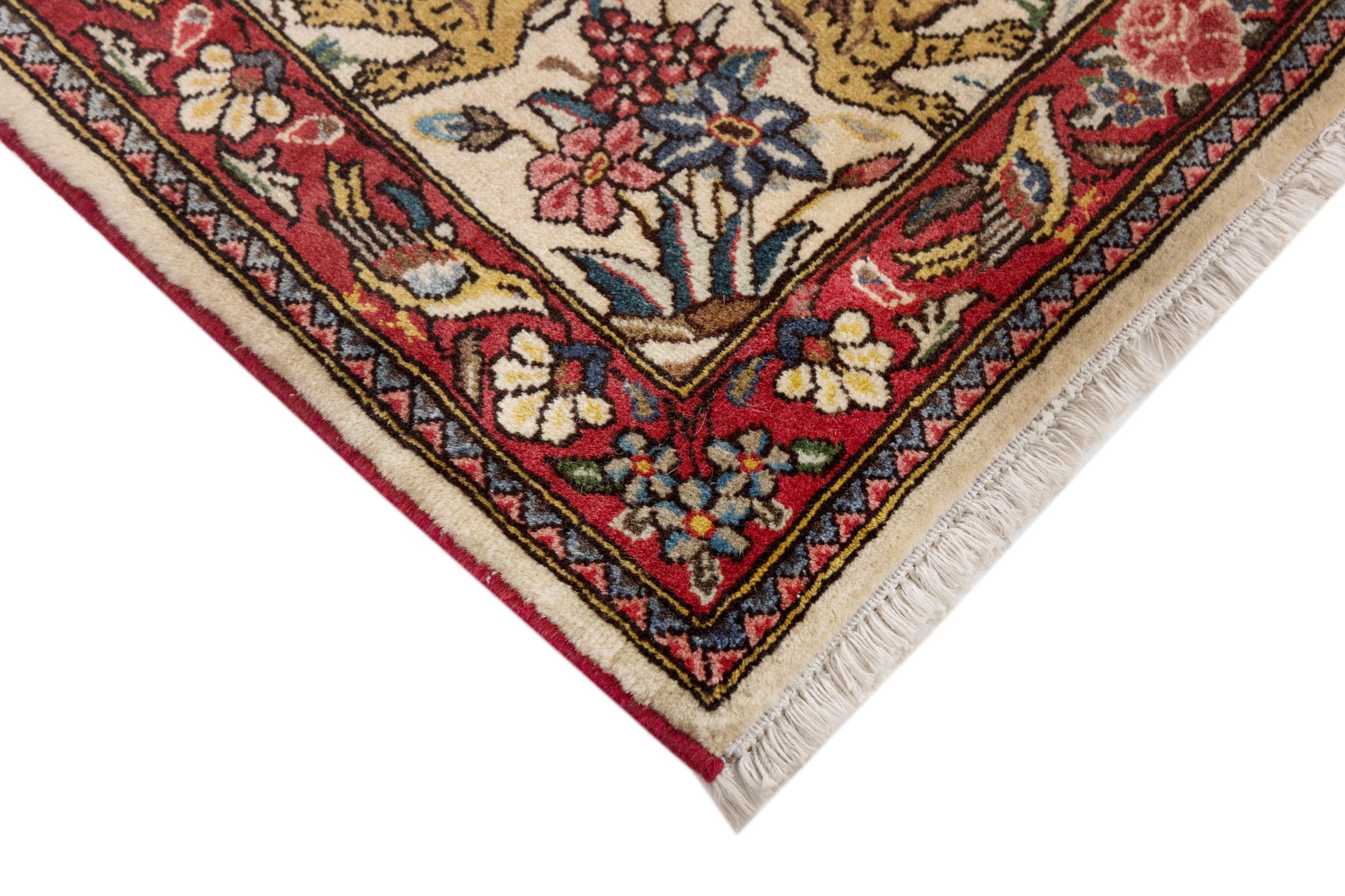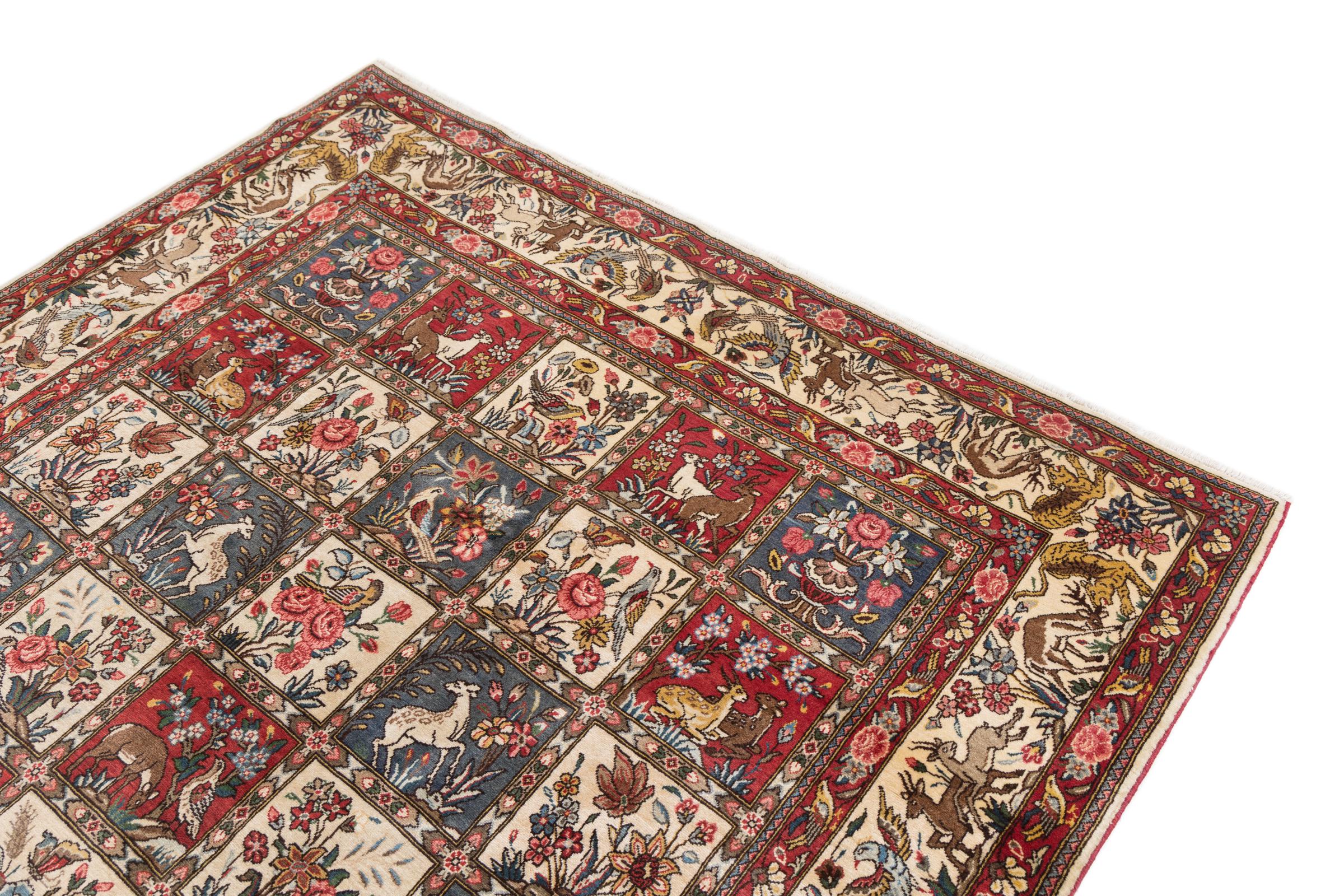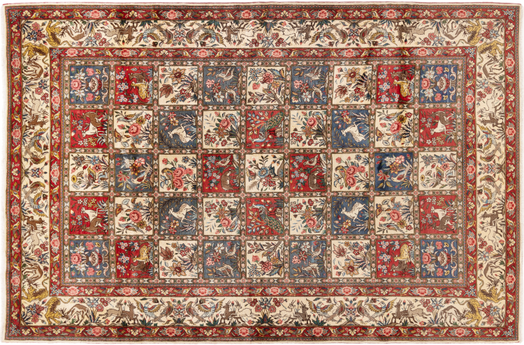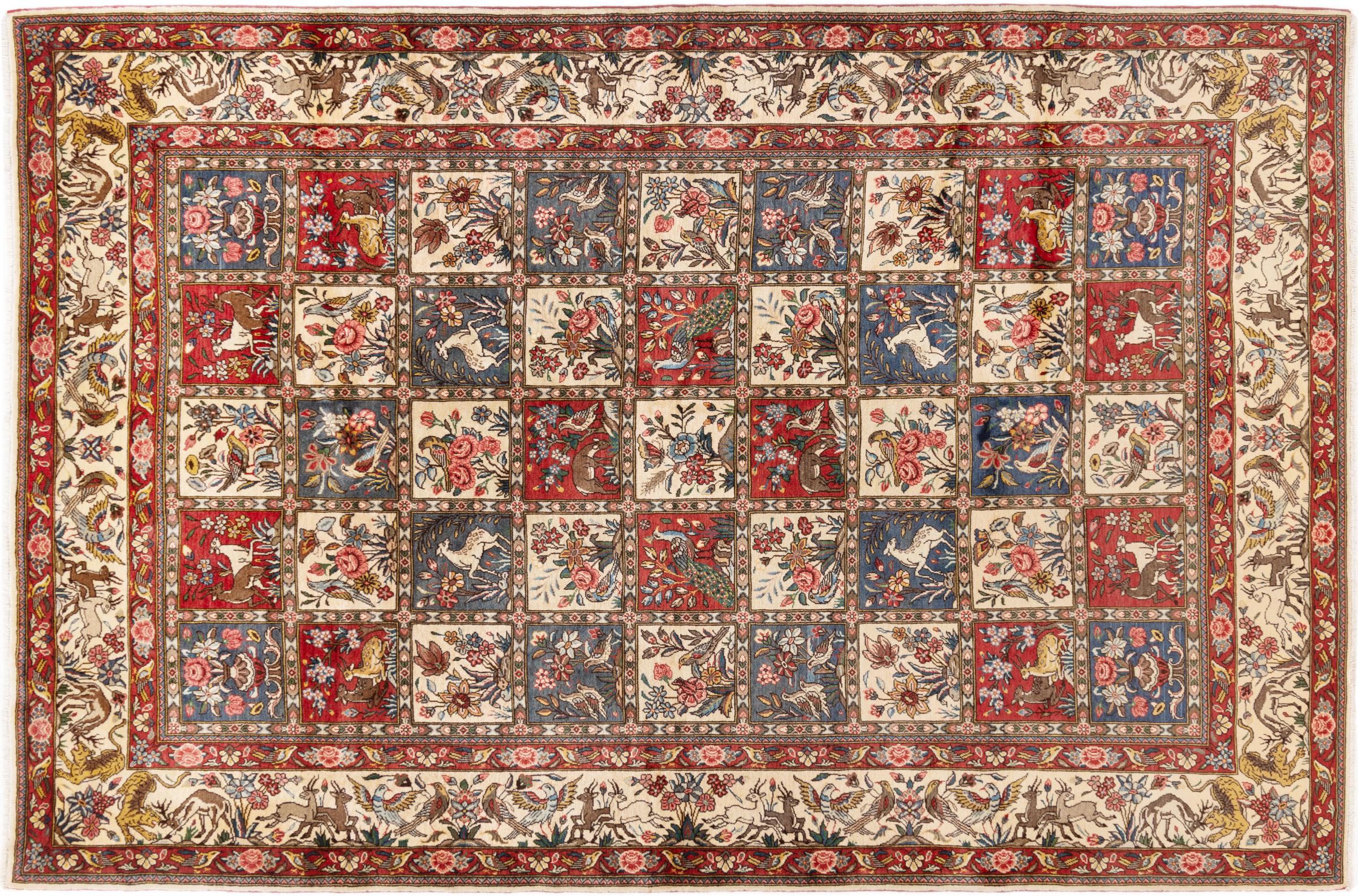 This Persian Bakhtiari was hand-knotted by nomads of the Bakhtiari tribe. This Persian carpet plays with the colours of the Orient in the most beautiful patterns. The design of its ornaments is inspired by Persian gardens. Over the years, the so-called traditional garden design has gained great popularity in the western world. Its high knotting density in combination with the strong yarn promises a long-lasting pleasure of Persian carpet art.