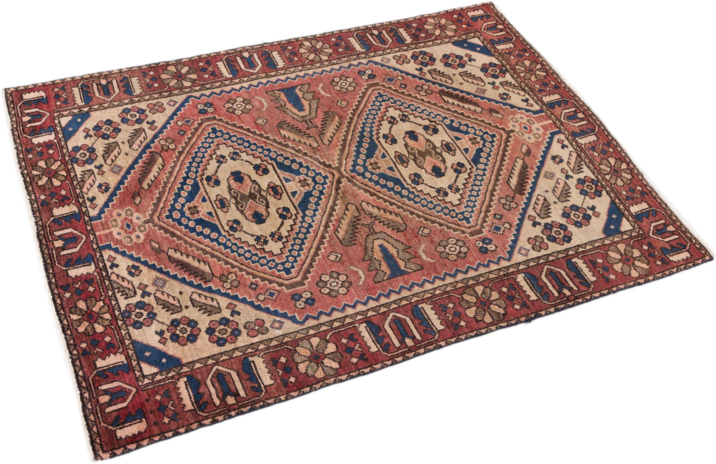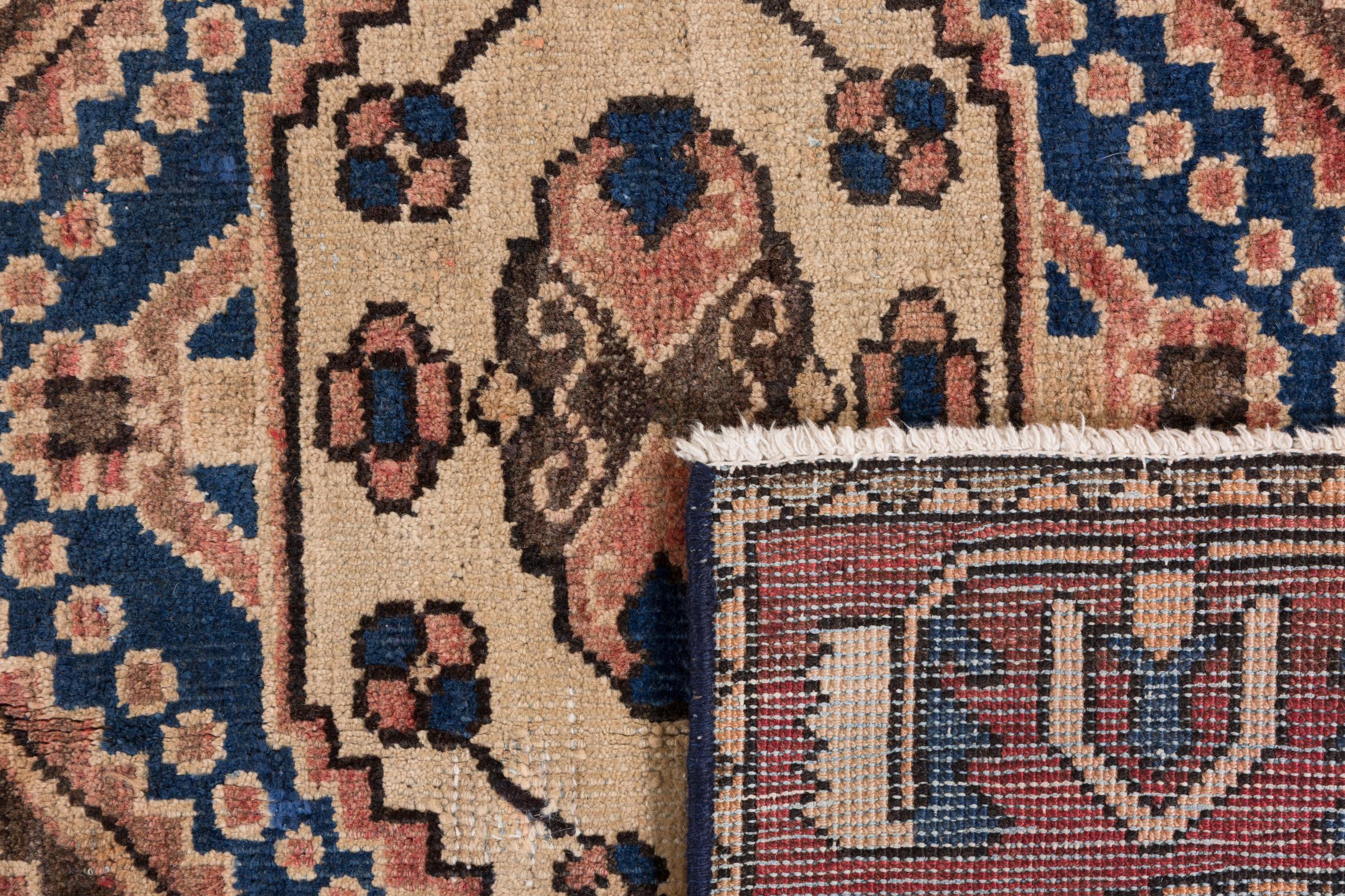 This rug belongs to village and nomadic rugs from Iran, formerly Persia. This type of rug is knotted by hand in smaller towns and villages in old tradition. Even nomads still knot Persian rugs in the open air. The rugs are knotted without a draft and completely from the mind. They are characterized by classical ornaments, which are arranged in straight and geometrical patterns. Thanks to their cultural-traditional origin, these rugs have a unique character that embodies ancient Persia.