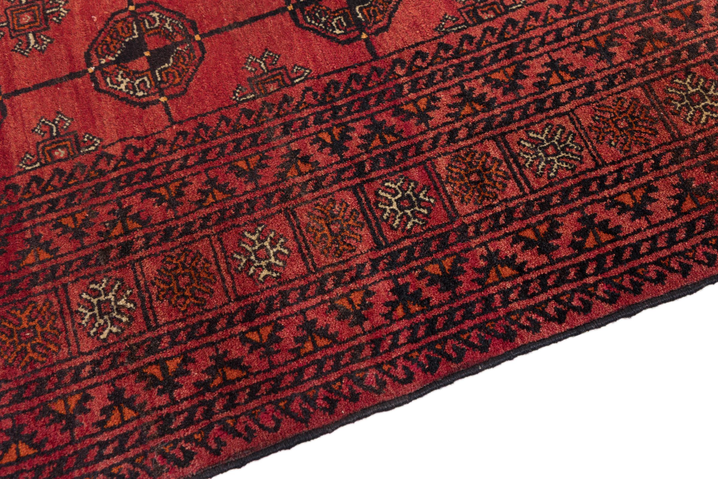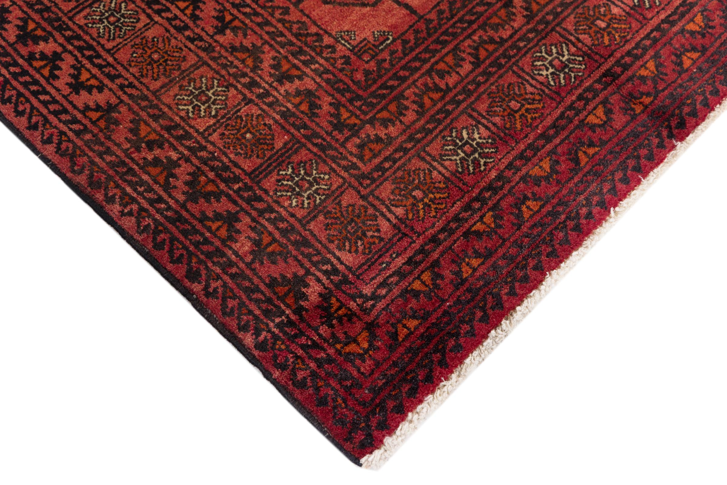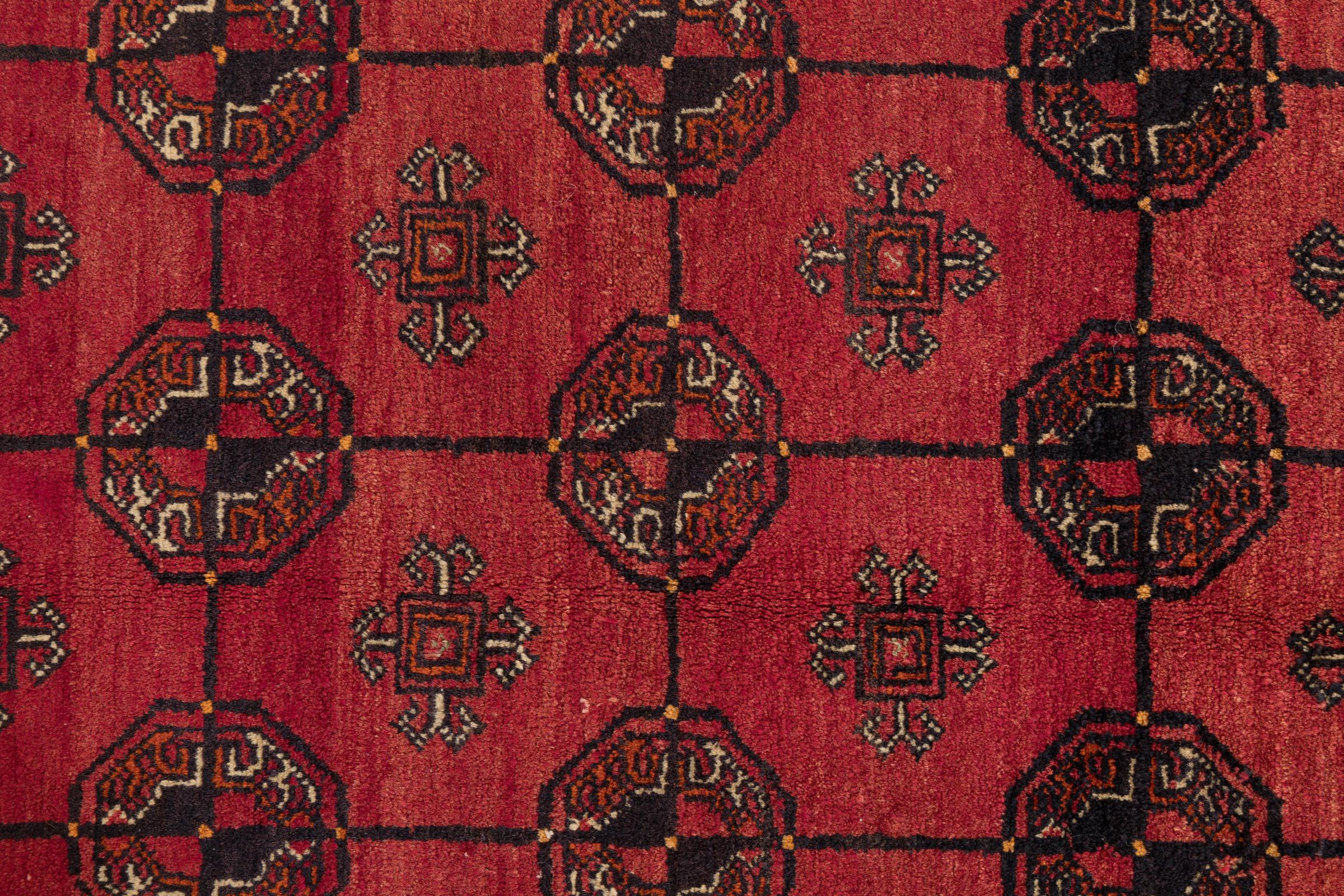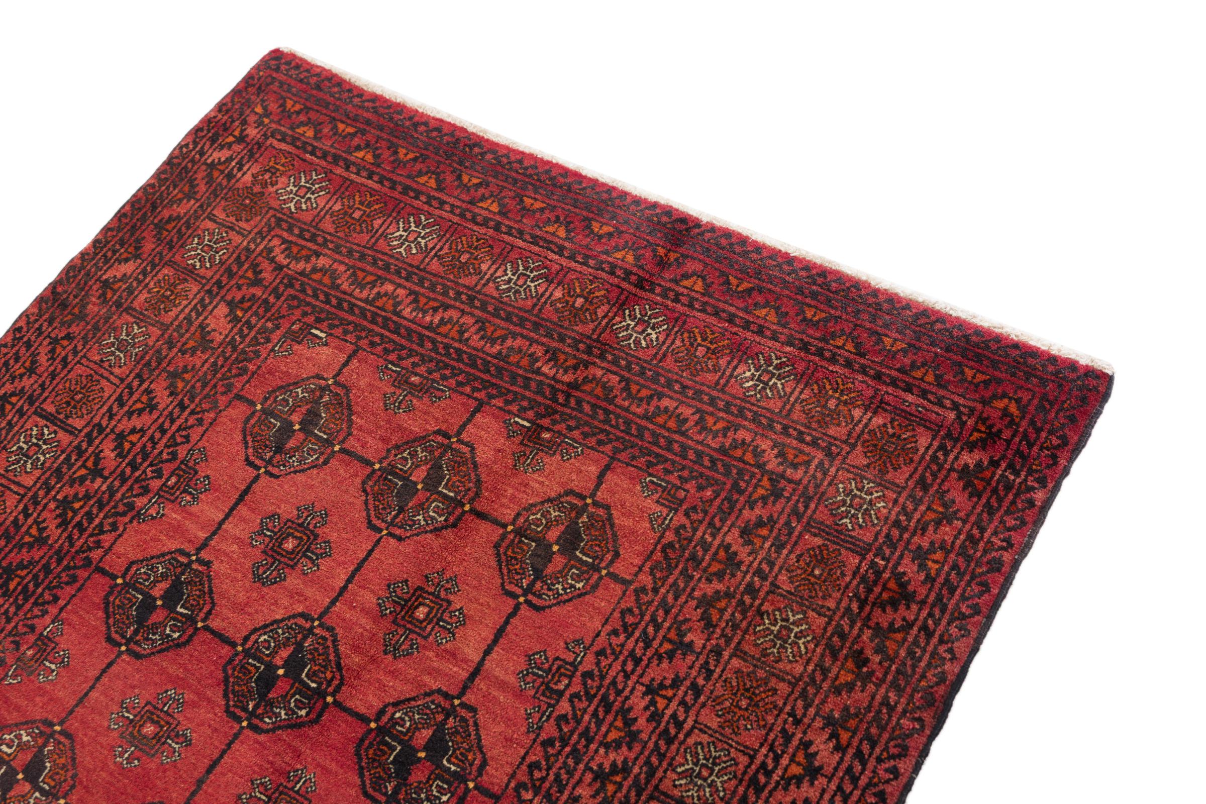 This Baluch carpet is a wonderful example of true nomadic art. The Persian carpet, made in the Iranian-Afghan border region, is convincing thanks to its dense, asymmetrical knotting. Lively patterns make it a real feast for the eyes. Typical are rather dark shades that spread a pleasant warmth. Its beautiful natural yarn conveys quality and makes it extremely durable. Typical for this carpet are the straight-lined patterns that make it an unmistakable nomadic carpet.