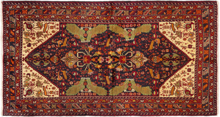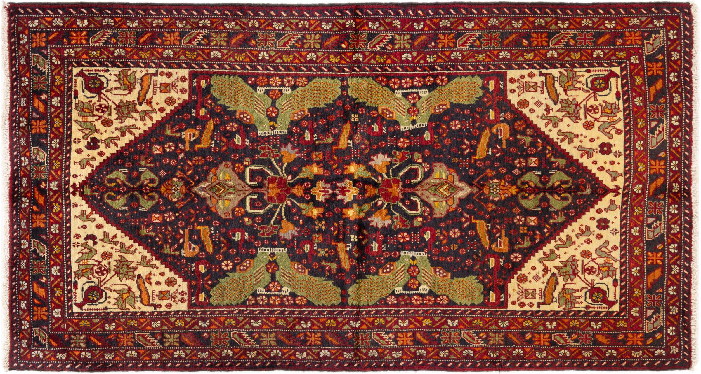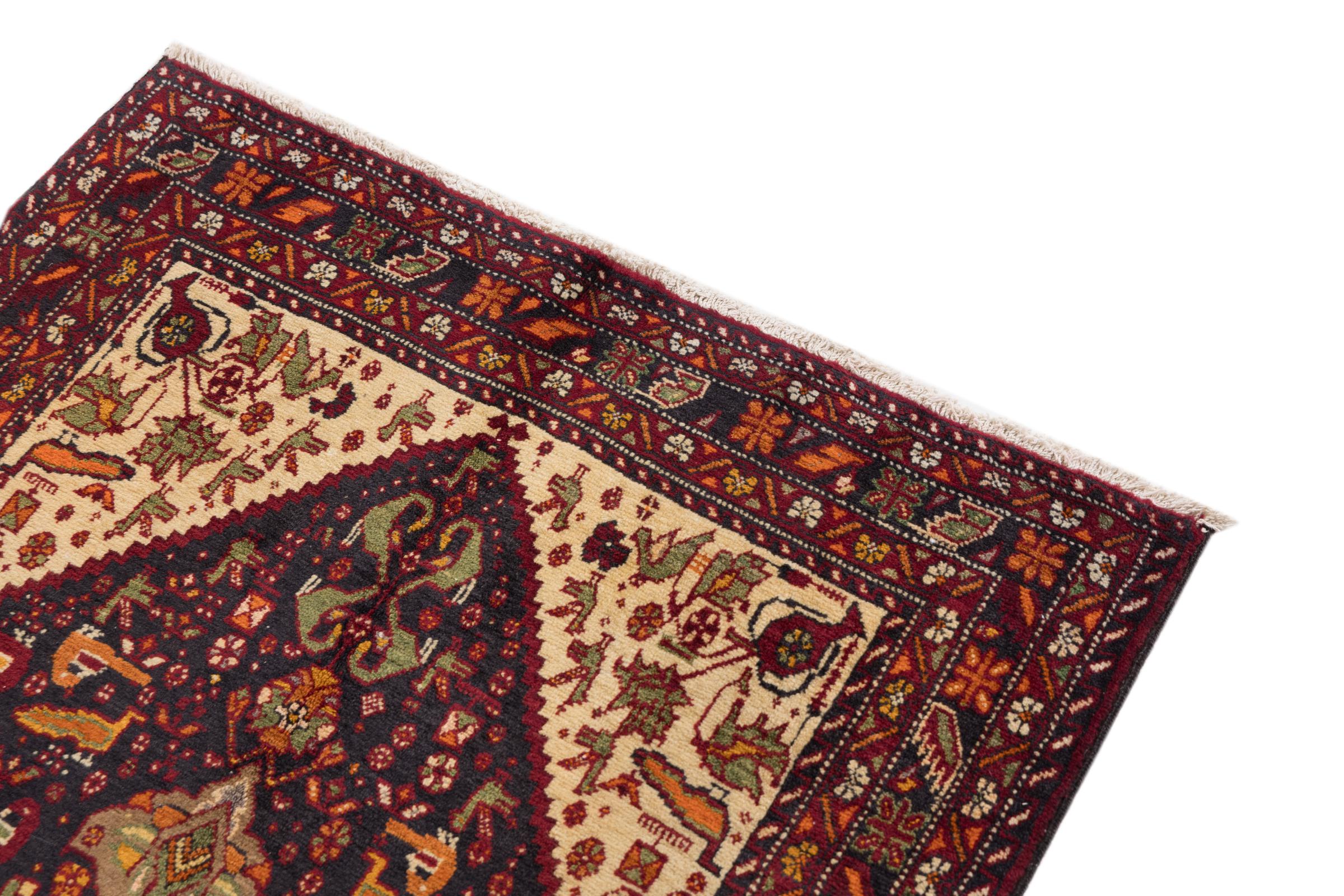 This rug belongs to village and nomadic rugs from Iran, formerly Persia. This type of rug is knotted by hand in smaller towns and villages in old tradition. Even nomads still knot Persian rugs in the open air. The rugs are knotted without a draft and completely from the mind. They are characterized by classical ornaments, which are arranged in straight and geometrical patterns. Thanks to their cultural-traditional origin, these rugs have a unique character that embodies ancient Persia.