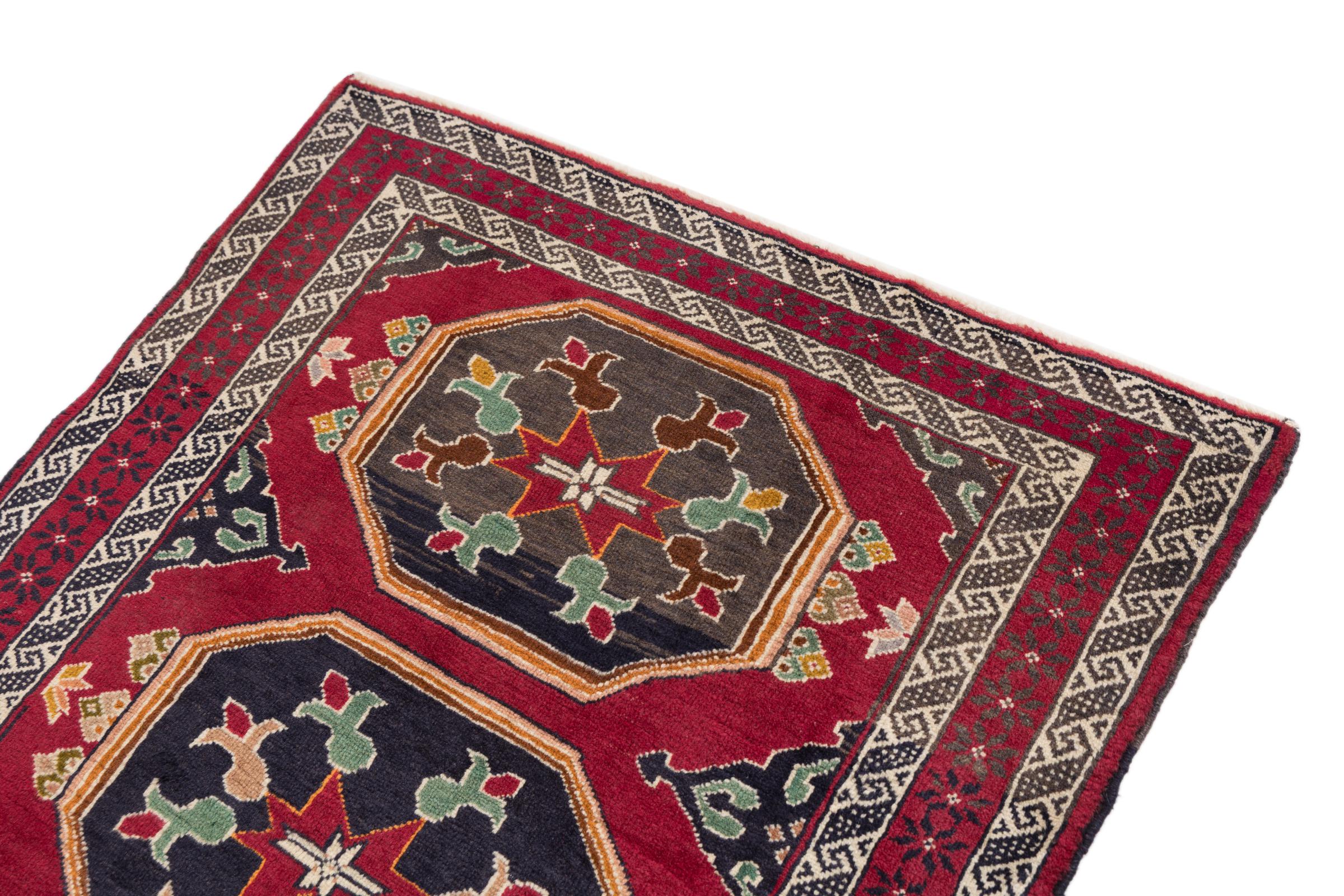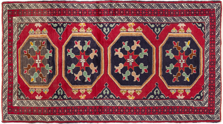 This rug belongs to village and nomadic rugs from Iran, formerly Persia. This type of rug is knotted by hand in smaller towns and villages in old tradition. Even nomads still knot Persian rugs in the open air. The rugs are knotted without a draft and completely from the mind. They are characterized by classical ornaments, which are arranged in straight and geometrical patterns. Thanks to their cultural-traditional origin, these rugs have a unique character that embodies ancient Persia.
