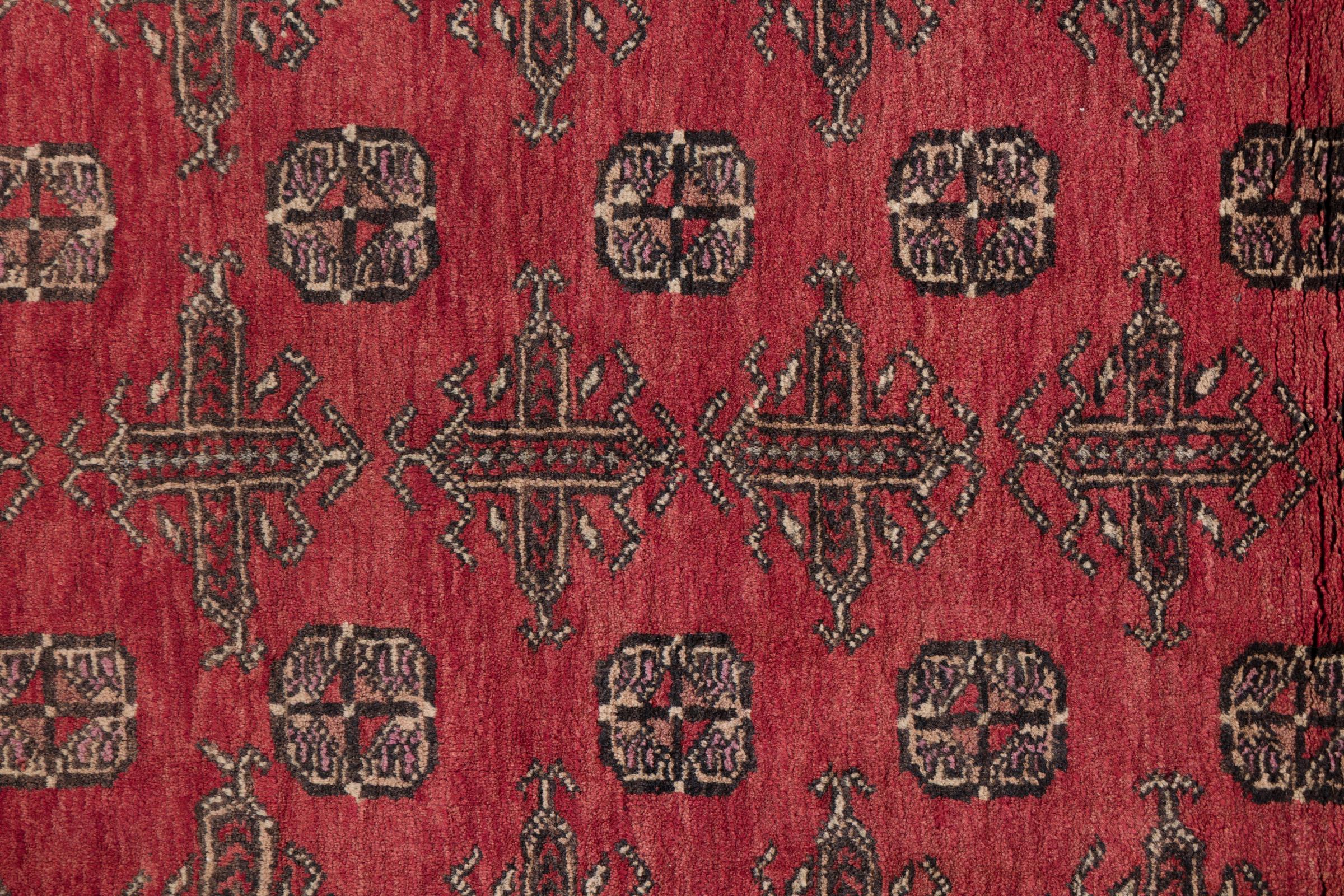 This Baluch carpet is a wonderful example of true nomadic art. The Persian carpet, made in the Iranian-Afghan border region, is convincing thanks to its dense, asymmetrical knotting. Lively patterns make it a real feast for the eyes. Typical are rather dark shades that spread a pleasant warmth. Its beautiful natural yarn conveys quality and makes it extremely durable. Typical for this carpet are the straight-lined patterns that make it an unmistakable nomadic carpet.