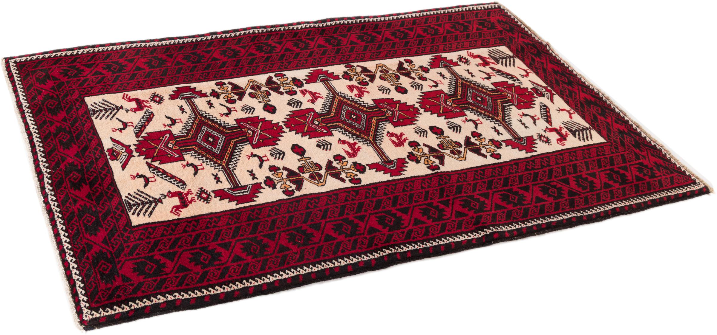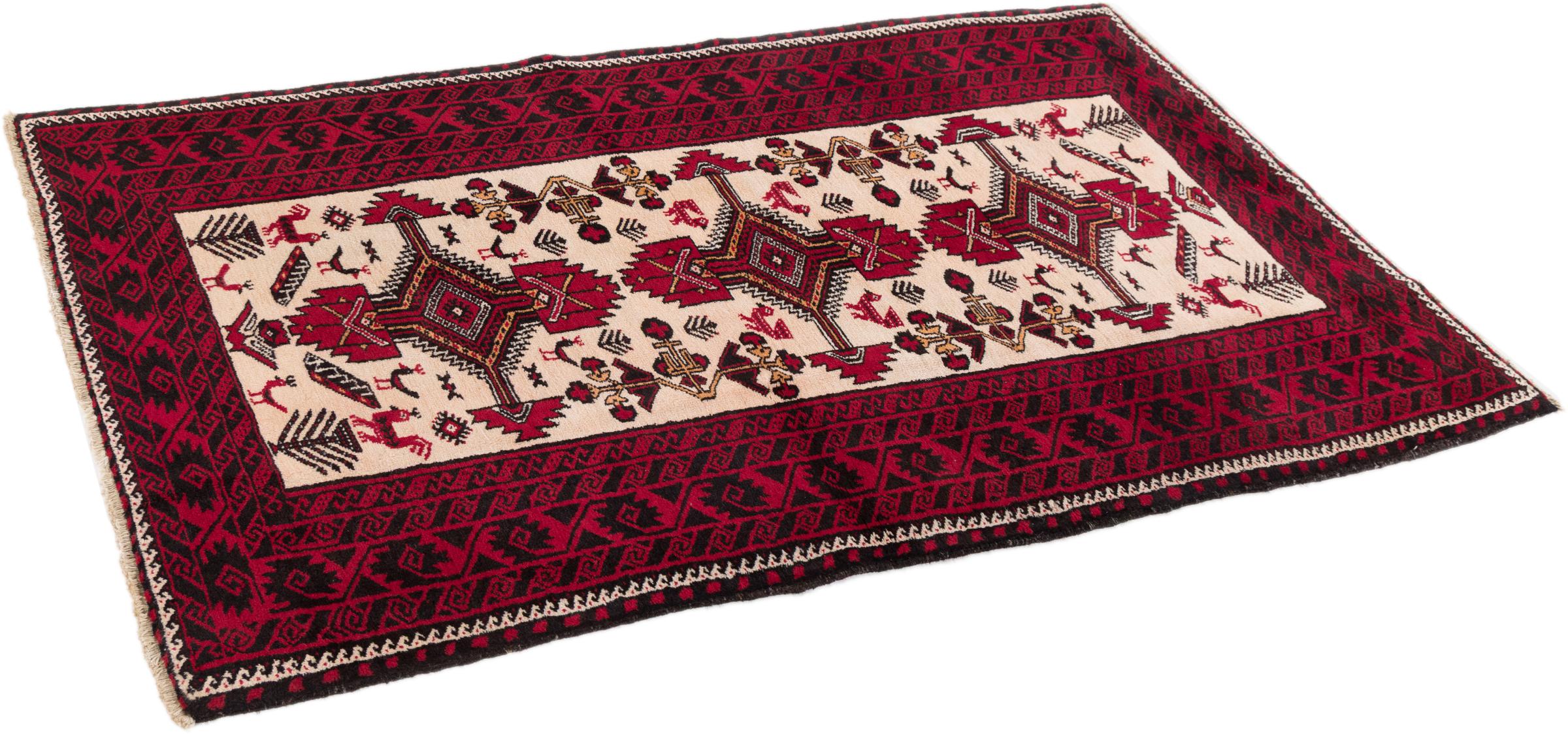 This Baluch carpet is a wonderful example of true nomadic art. The Persian carpet, made in the Iranian-Afghan border region, is convincing thanks to its dense, asymmetrical knotting. Lively patterns make it a real feast for the eyes. Typical are rather dark shades that spread a pleasant warmth. Its beautiful natural yarn conveys quality and makes it extremely durable. Typical for this carpet are the straight-lined patterns that make it an unmistakable nomadic carpet.