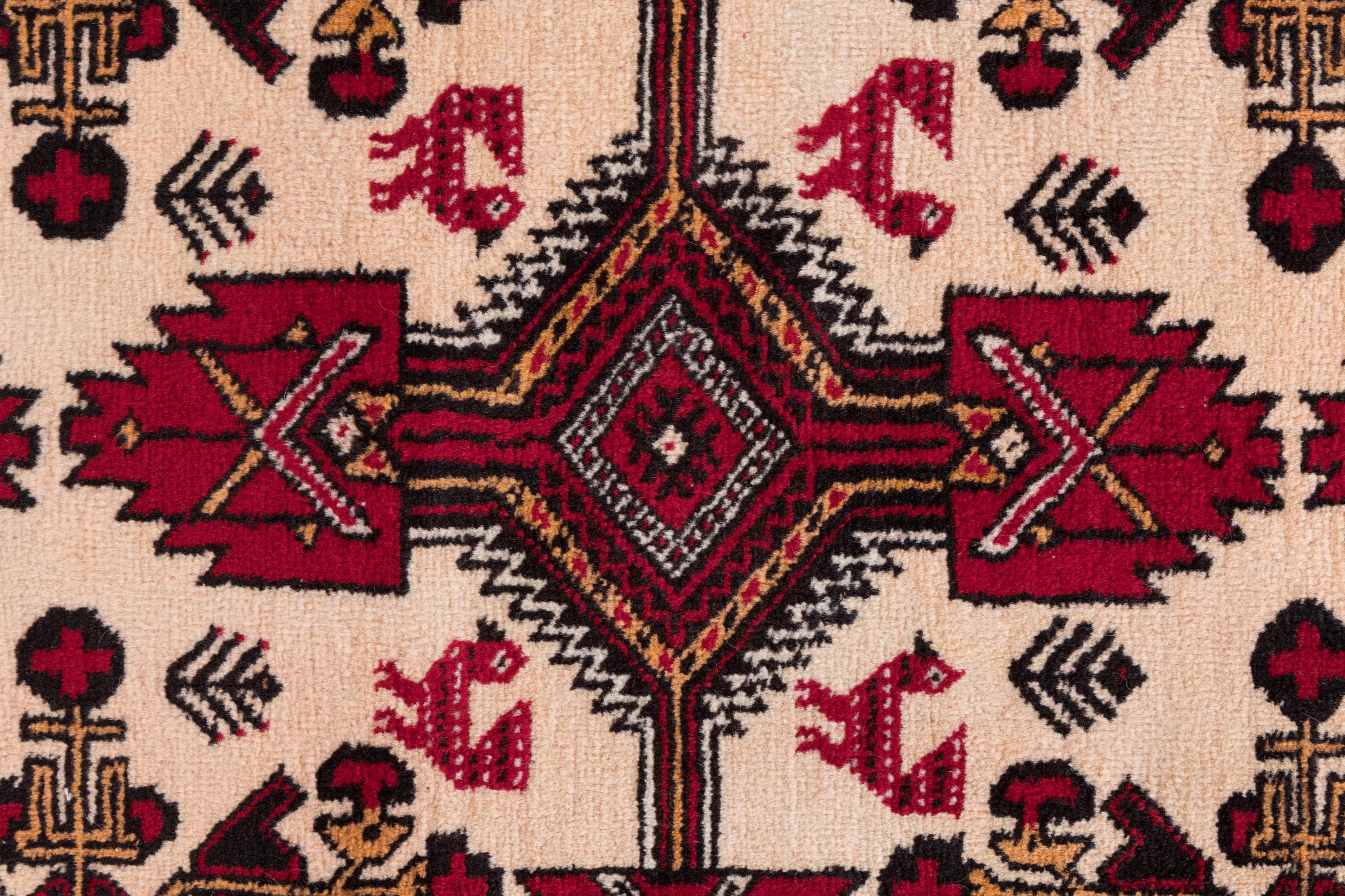 This rug belongs to village and nomadic rugs from Iran, formerly Persia. This type of rug is knotted by hand in smaller towns and villages in old tradition. Even nomads still knot Persian rugs in the open air. The rugs are knotted without a draft and completely from the mind. They are characterized by classical ornaments, which are arranged in straight and geometrical patterns. Thanks to their cultural-traditional origin, these rugs have a unique character that embodies ancient Persia.