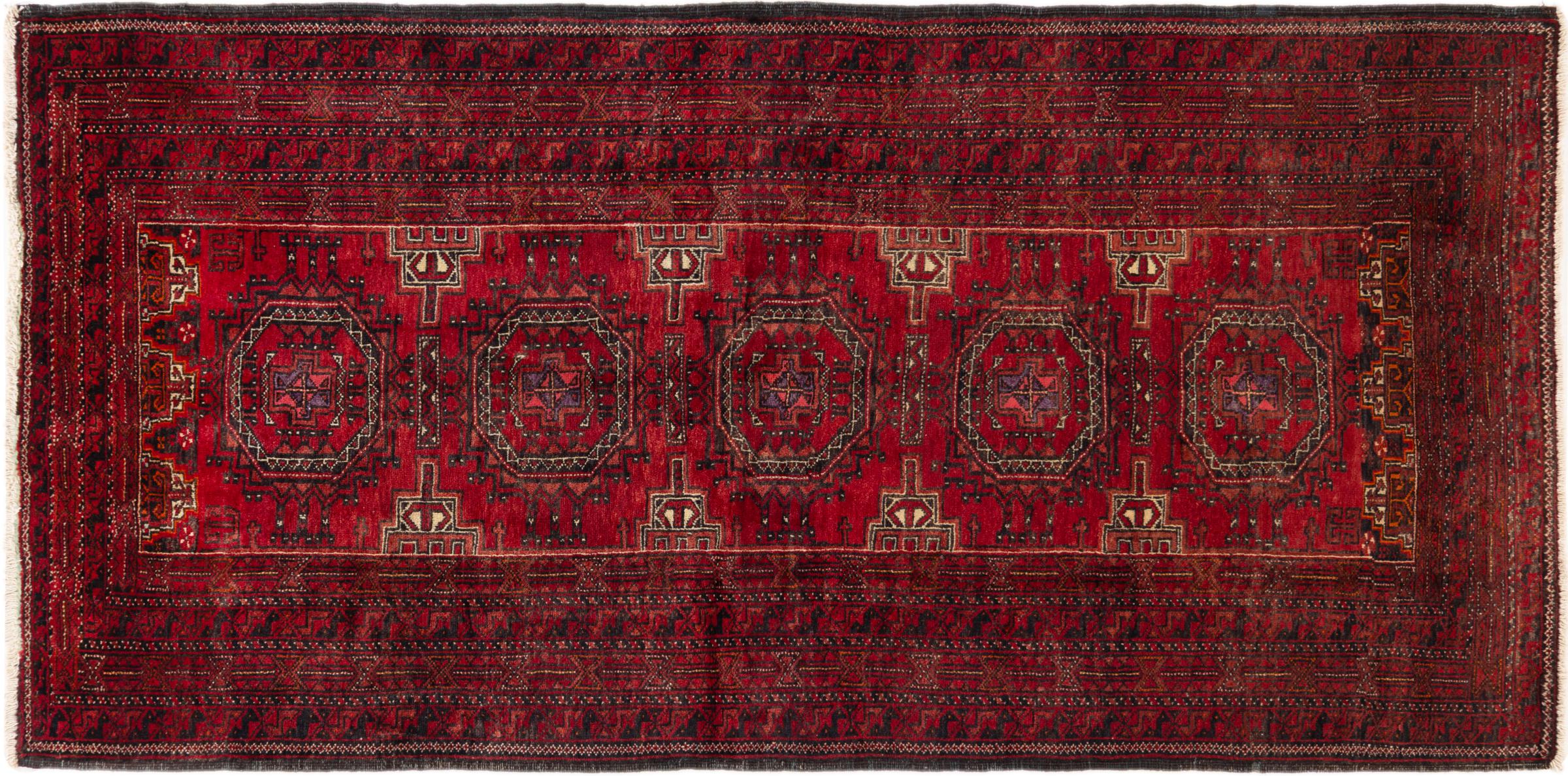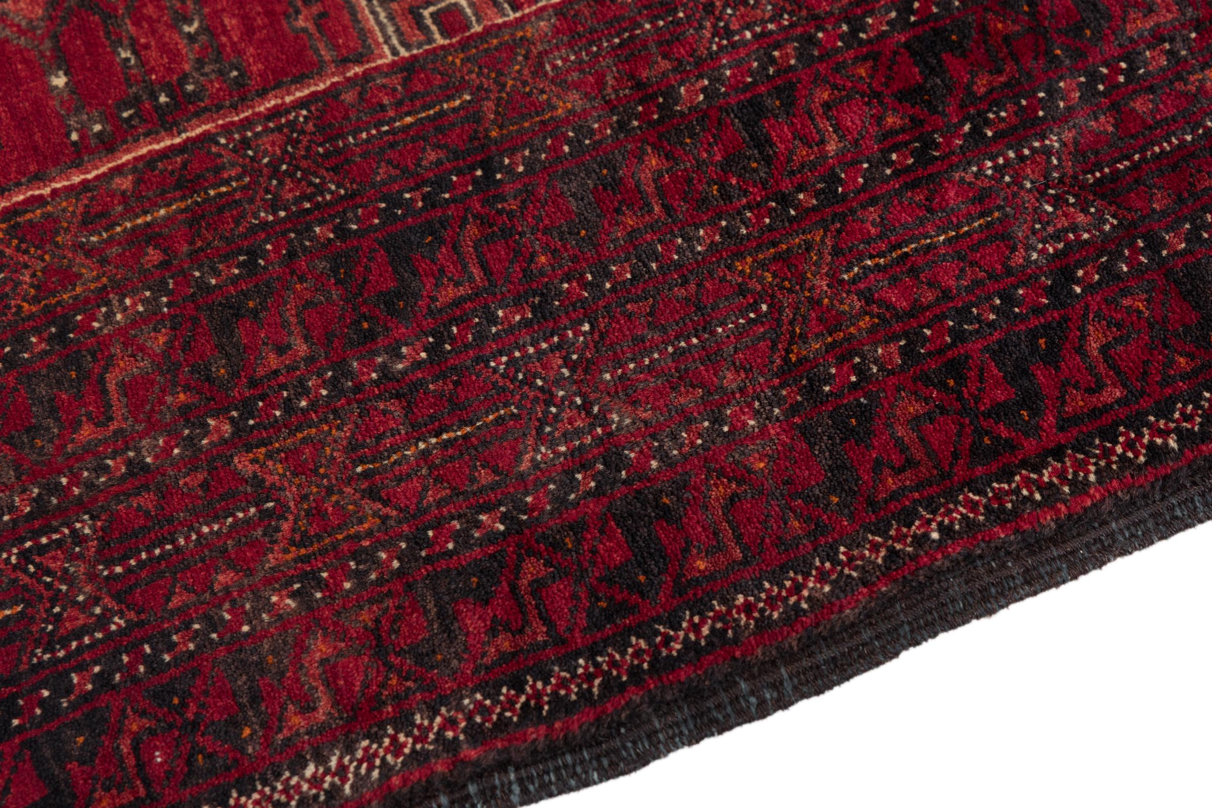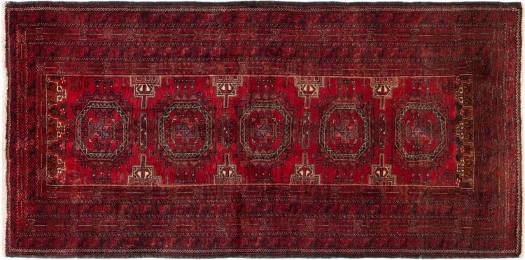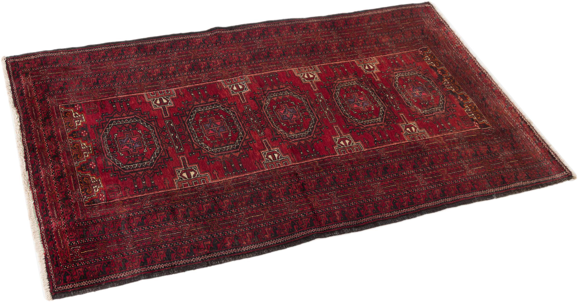 This Baluch carpet is a wonderful example of true nomadic art. The Persian carpet, made in the Iranian-Afghan border region, is convincing thanks to its dense, asymmetrical knotting. Lively patterns make it a real feast for the eyes. Typical are rather dark shades that spread a pleasant warmth. Its beautiful natural yarn conveys quality and makes it extremely durable. Typical for this carpet are the straight-lined patterns that make it an unmistakable nomadic carpet.