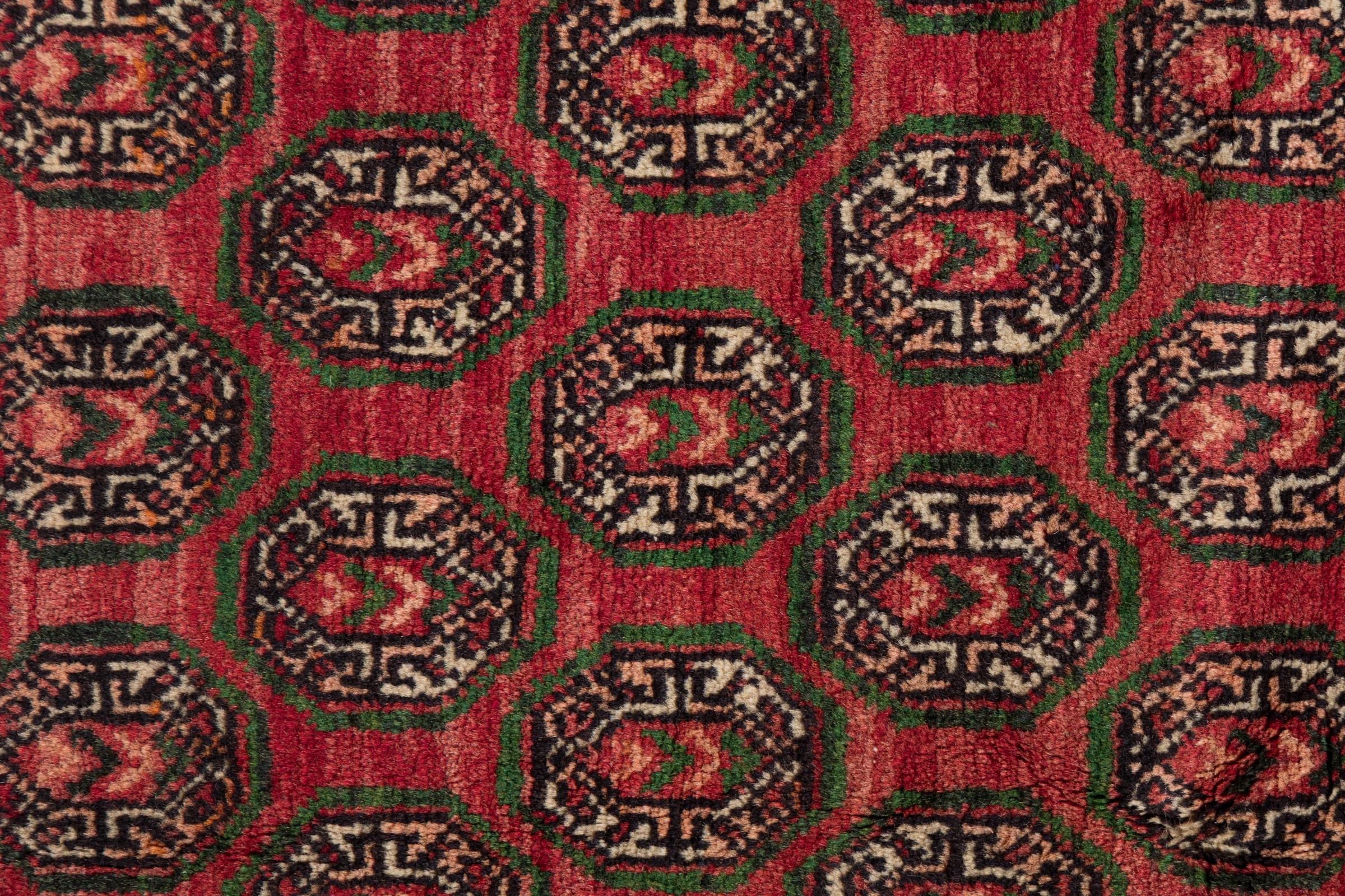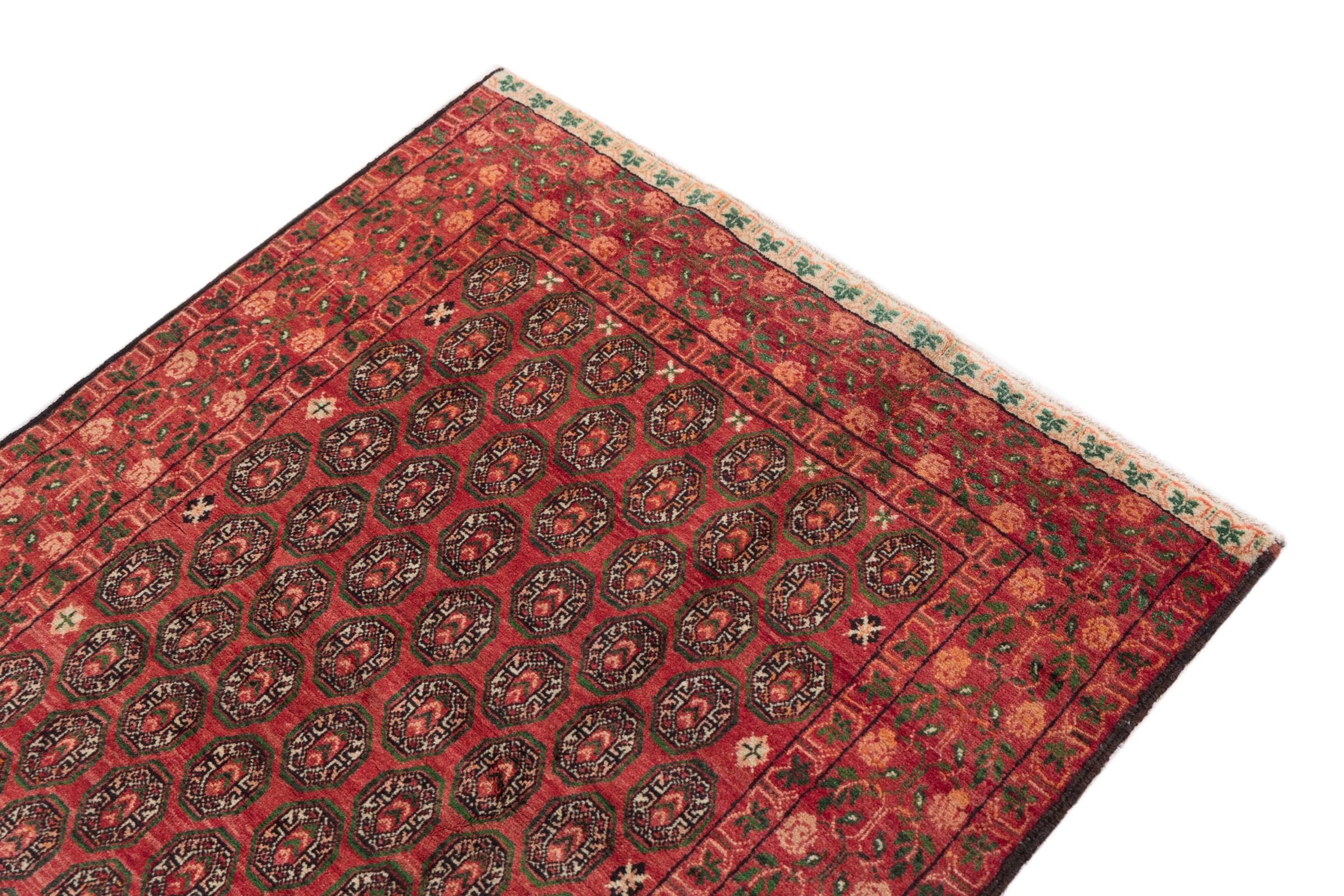 This Baluch carpet is a wonderful example of true nomadic art. The Persian carpet, made in the Iranian-Afghan border region, is convincing thanks to its dense, asymmetrical knotting. Lively patterns make it a real feast for the eyes. Typical are rather dark shades that spread a pleasant warmth. Its beautiful natural yarn conveys quality and makes it extremely durable. Typical for this carpet are the straight-lined patterns that make it an unmistakable nomadic carpet.