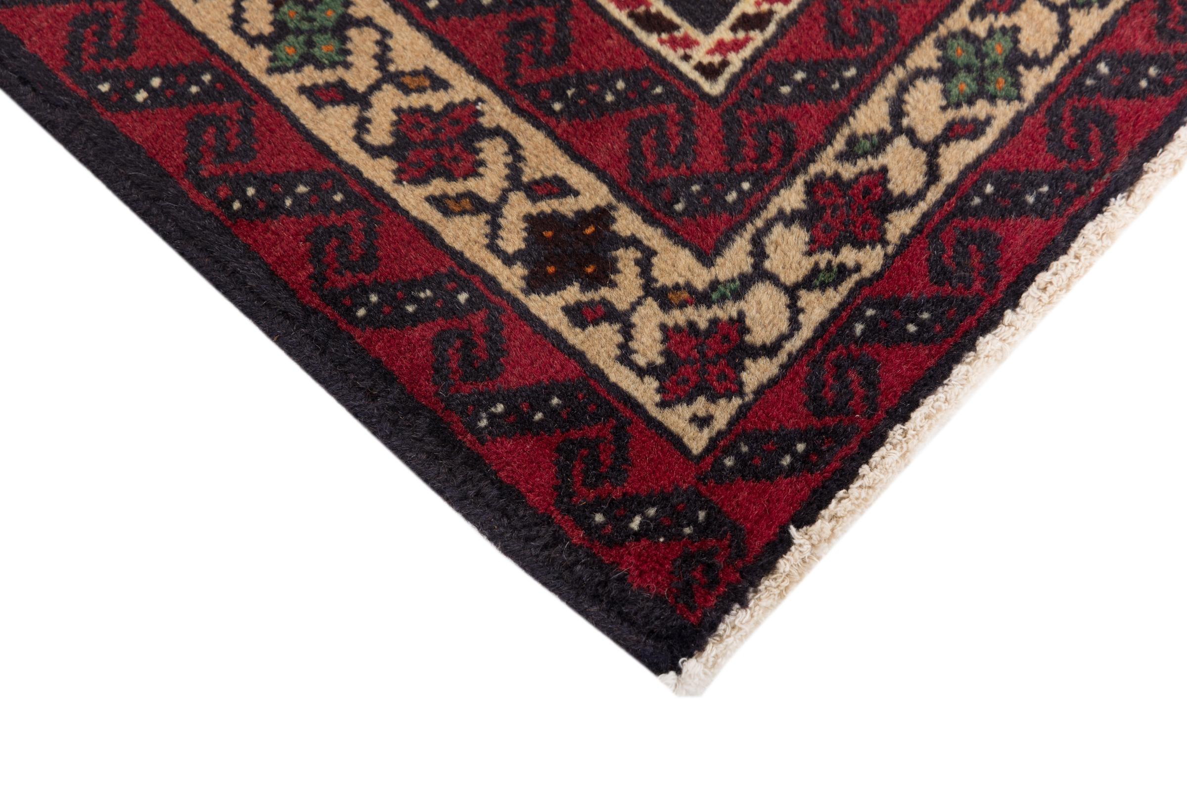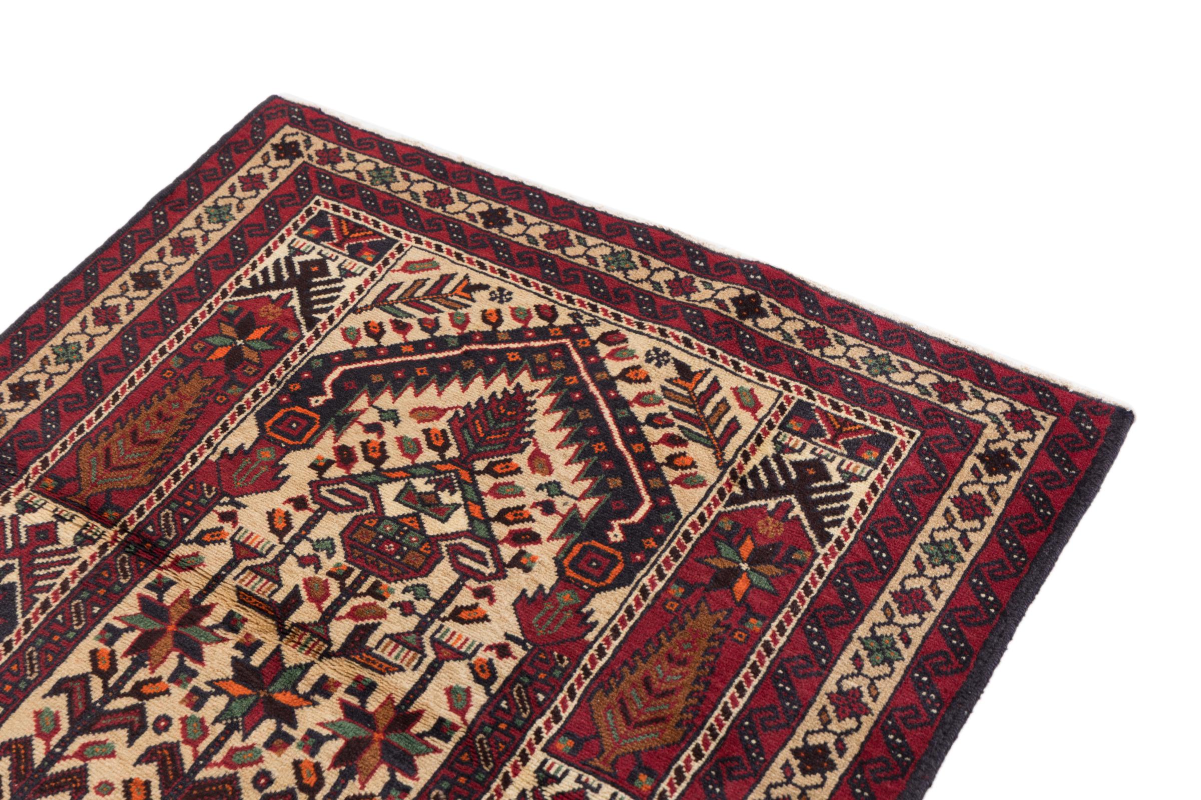 This Baluch carpet is a wonderful example of true nomadic art. The Persian carpet, made in the Iranian-Afghan border region, is convincing thanks to its dense, asymmetrical knotting. Lively patterns make it a real feast for the eyes. Typical are rather dark shades that spread a pleasant warmth. Its beautiful natural yarn conveys quality and makes it extremely durable. Typical for this carpet are the straight-lined patterns that make it an unmistakable nomadic carpet.
