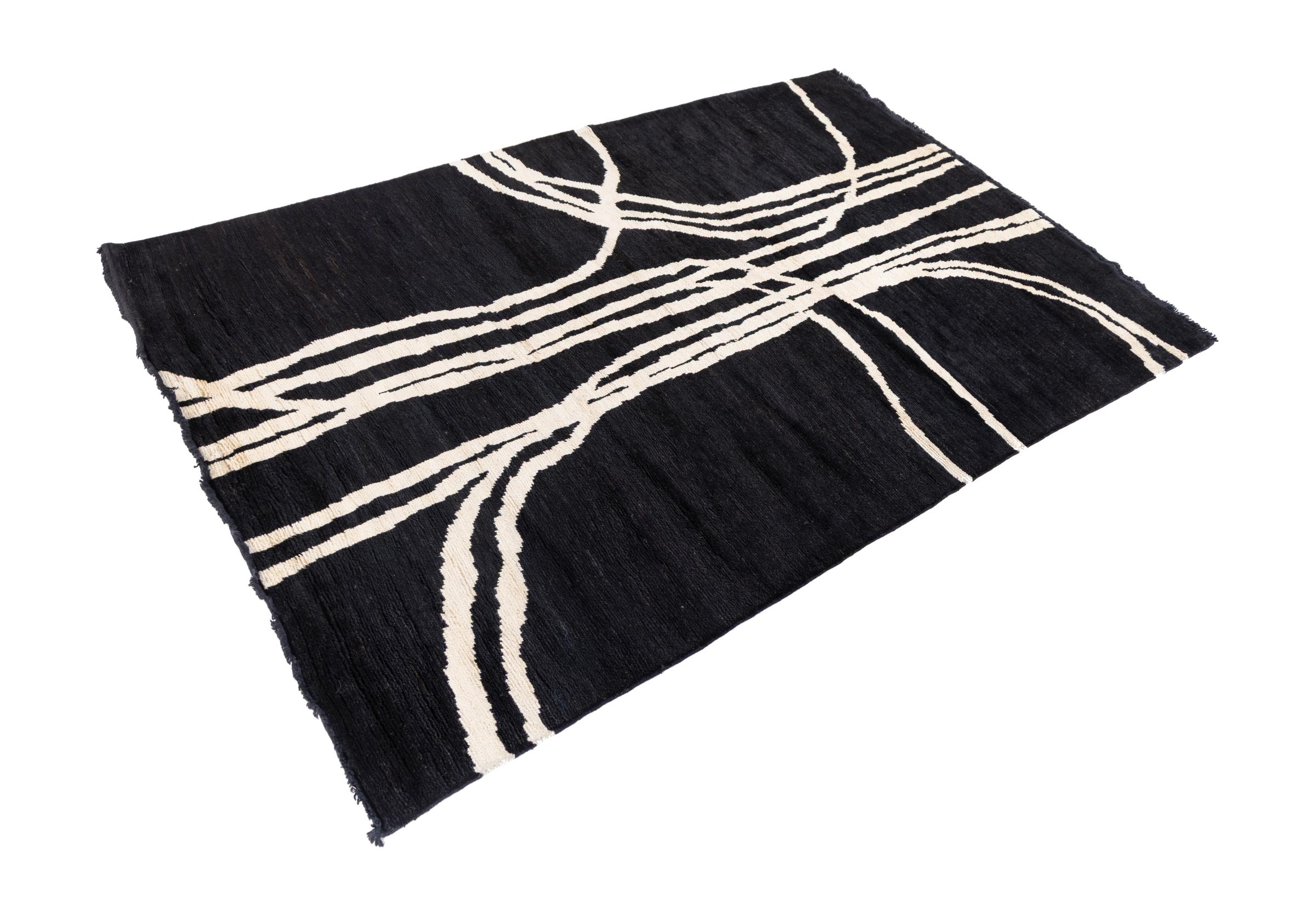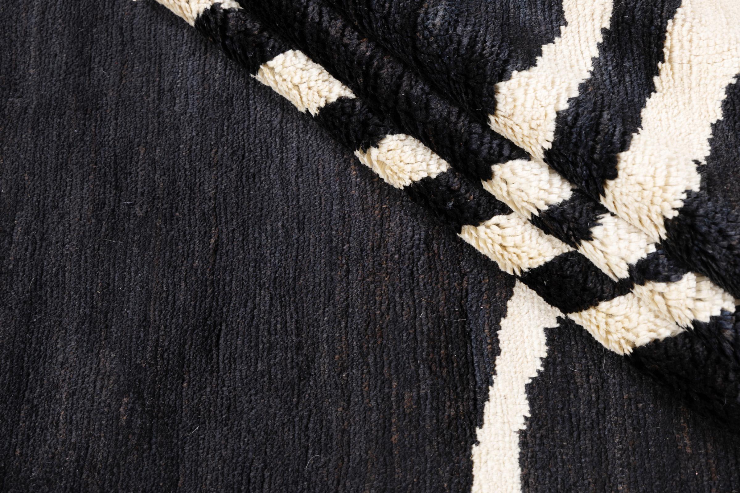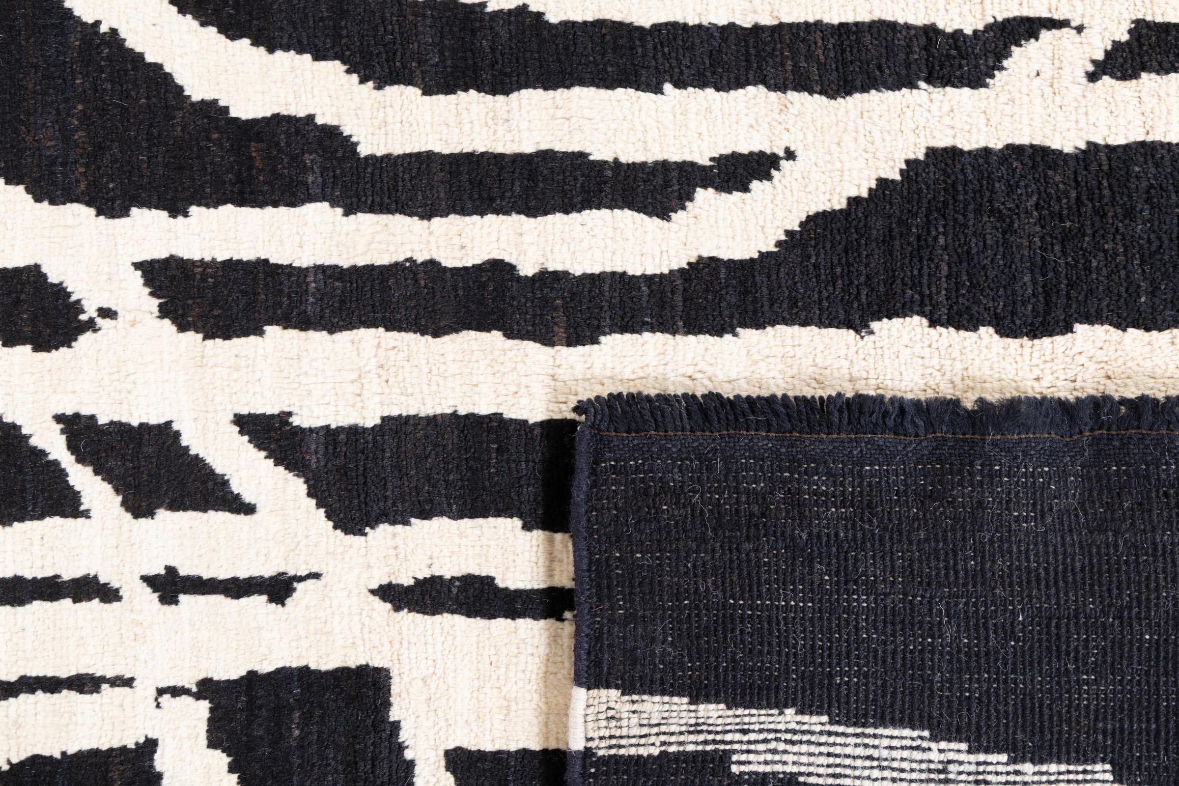Berber Ela Design carpets are hand-knotted from high-quality natural wool. Inspired by two cultures and the influence of organic, natural forms, this rug was created as part of an entire collection. Such a unique piece gives your home a particularly individual touch and forms the focal point of your interior. This rug was made by experienced rug weavers over a period of months, the result is a unique design of excellent quality.