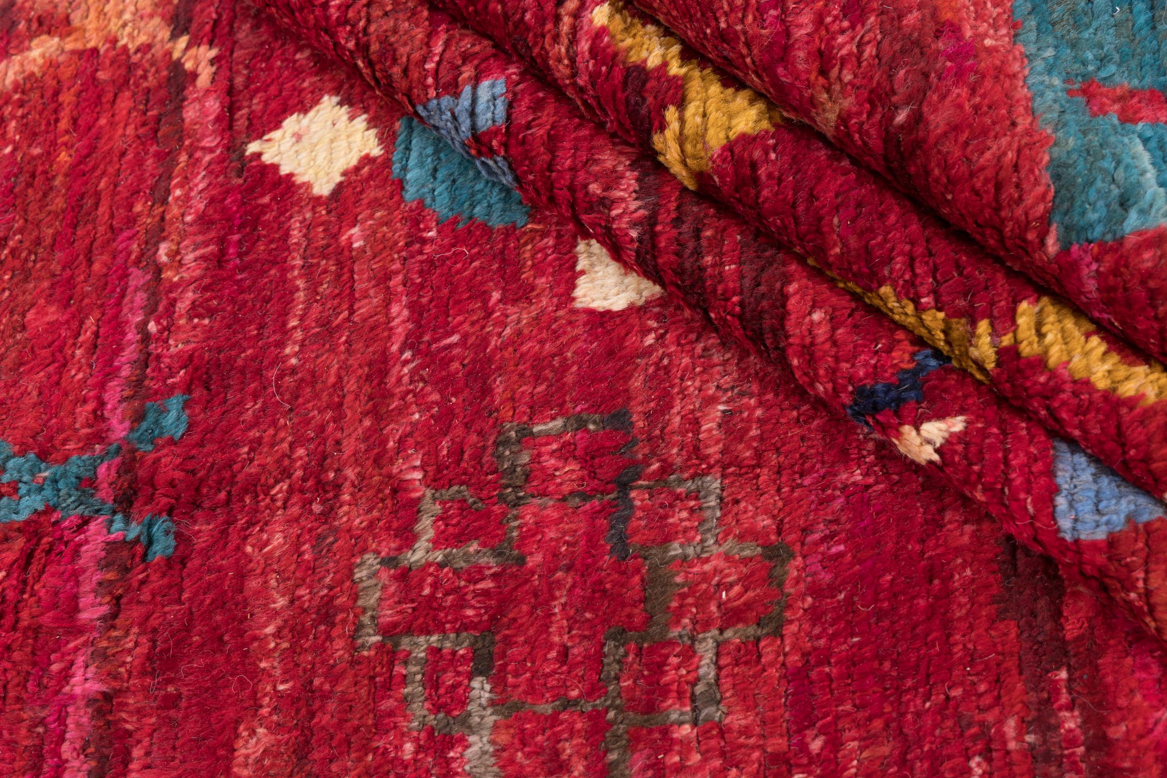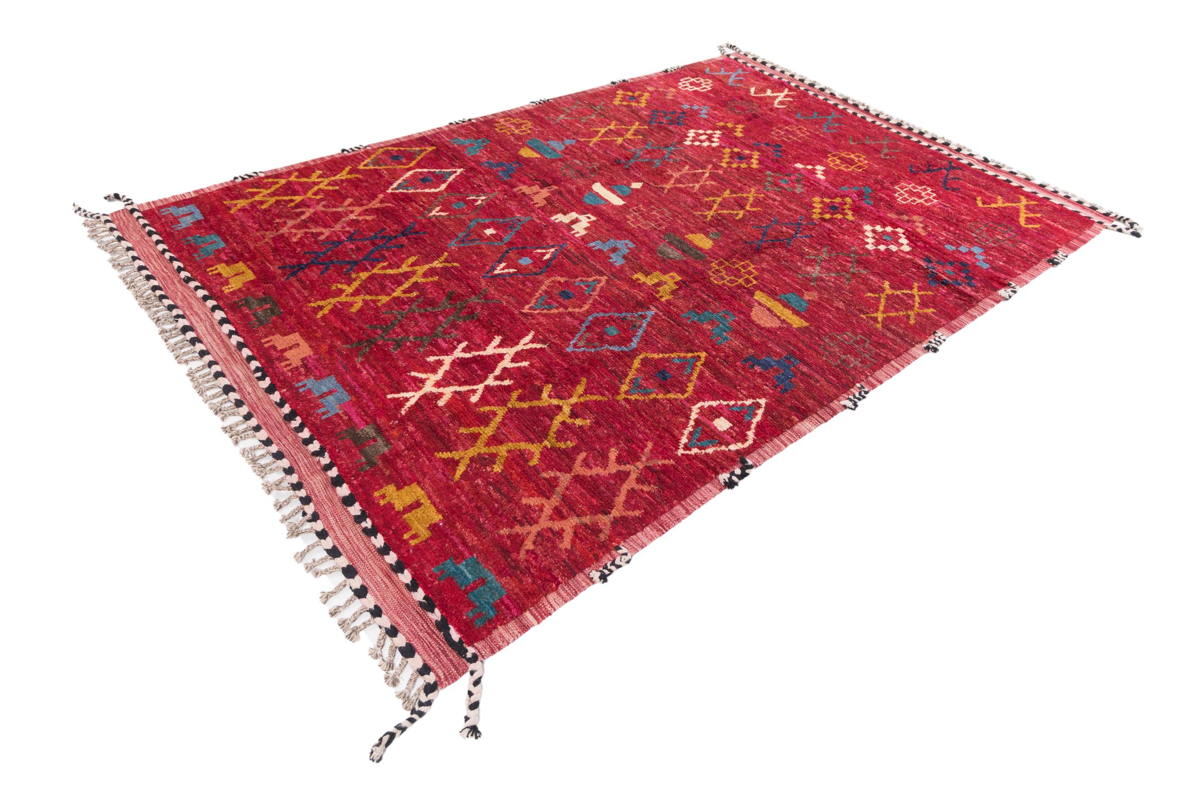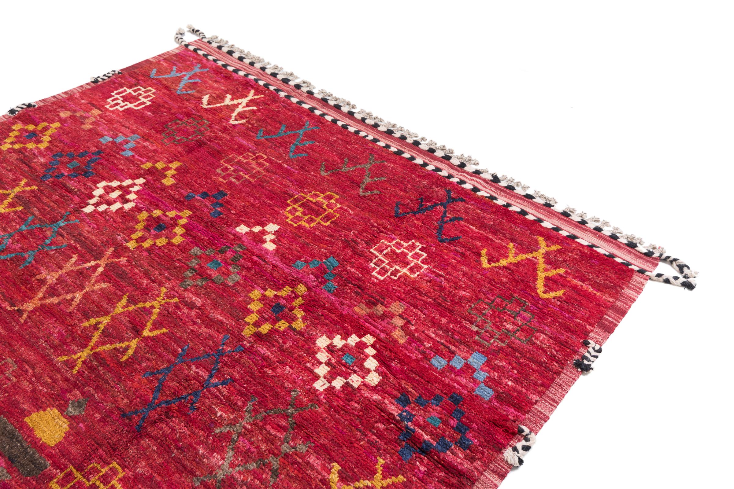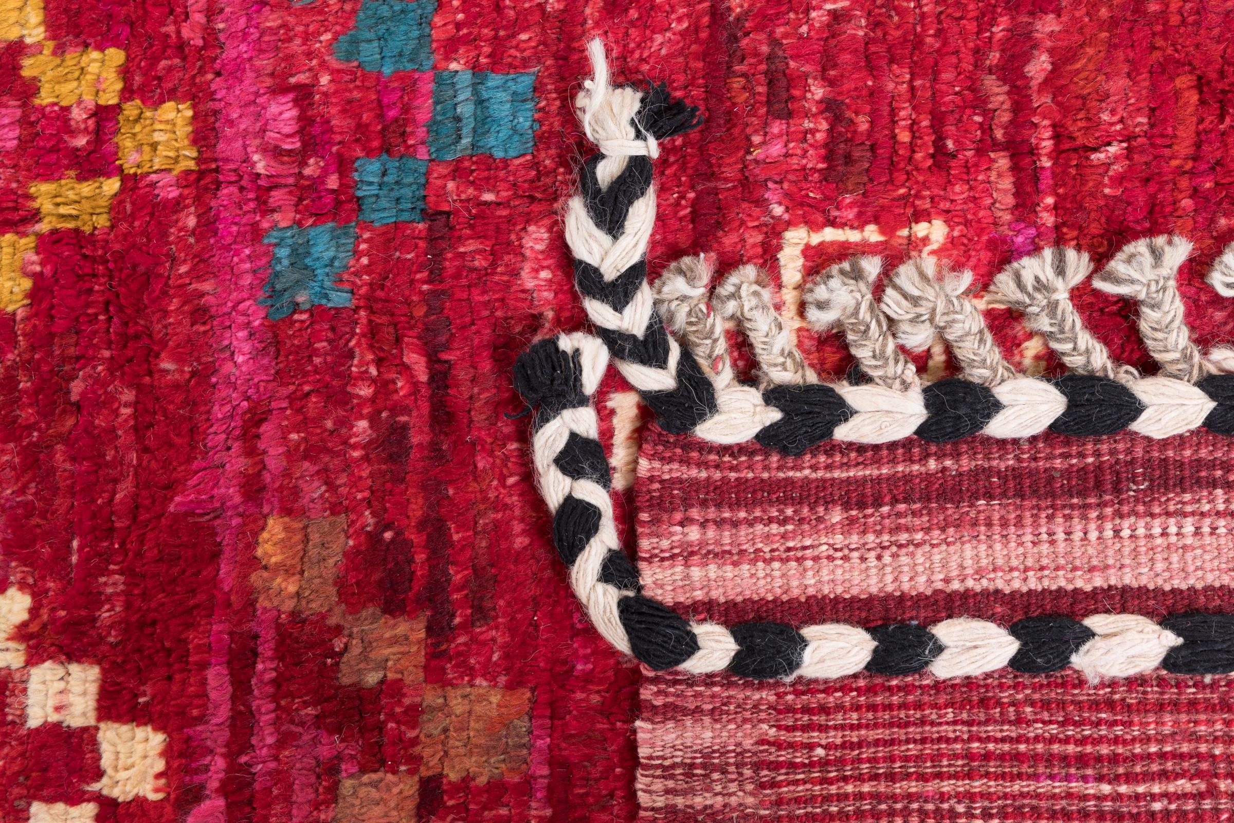 This Berber Ghashghai carpet is characterized by its high-quality wool and a dense and particularly precise weave. It is therefore exceptionally durable and has a consistently firm yet wonderfully soft pile. Its design inspires with color and symbolic patterns every day.