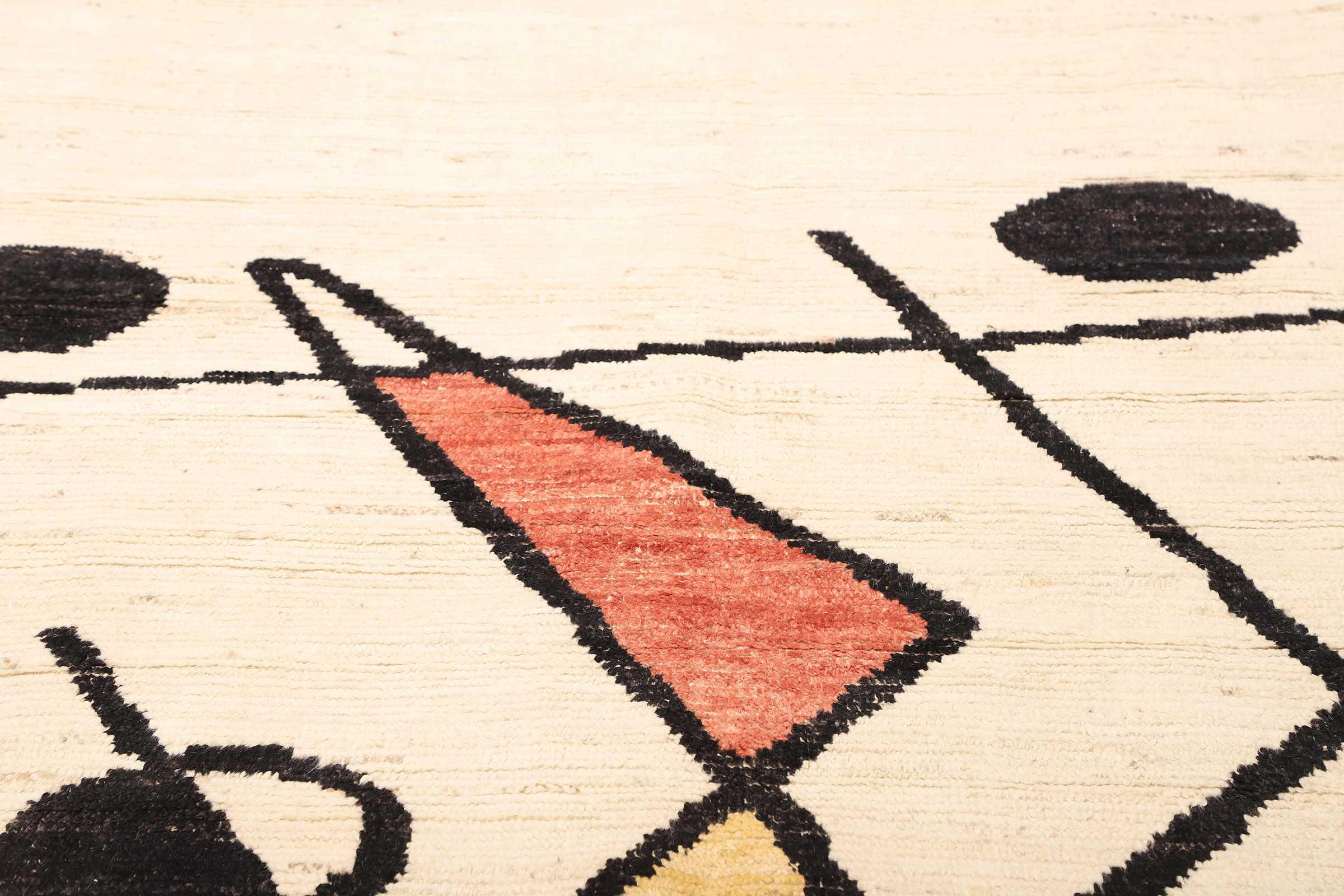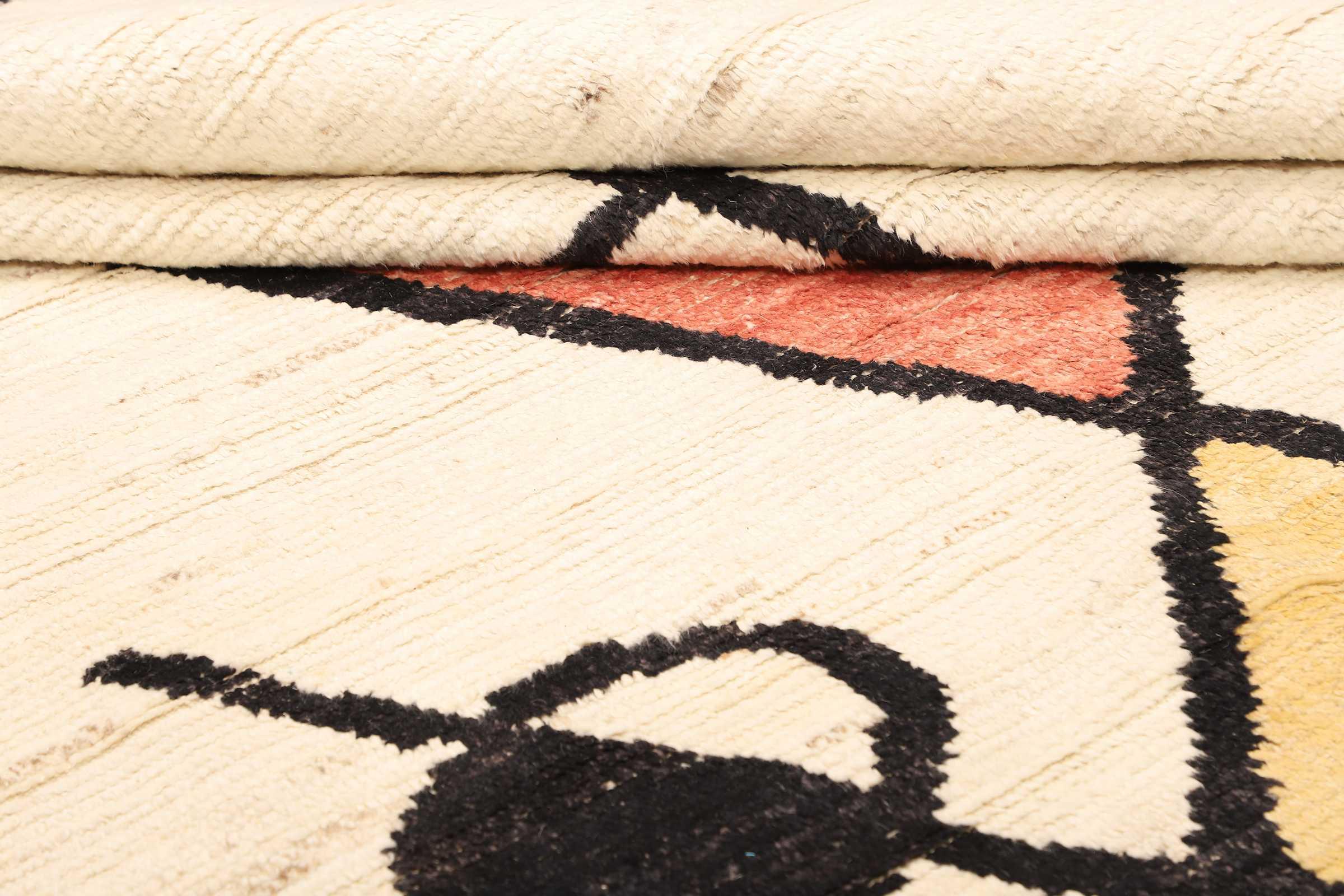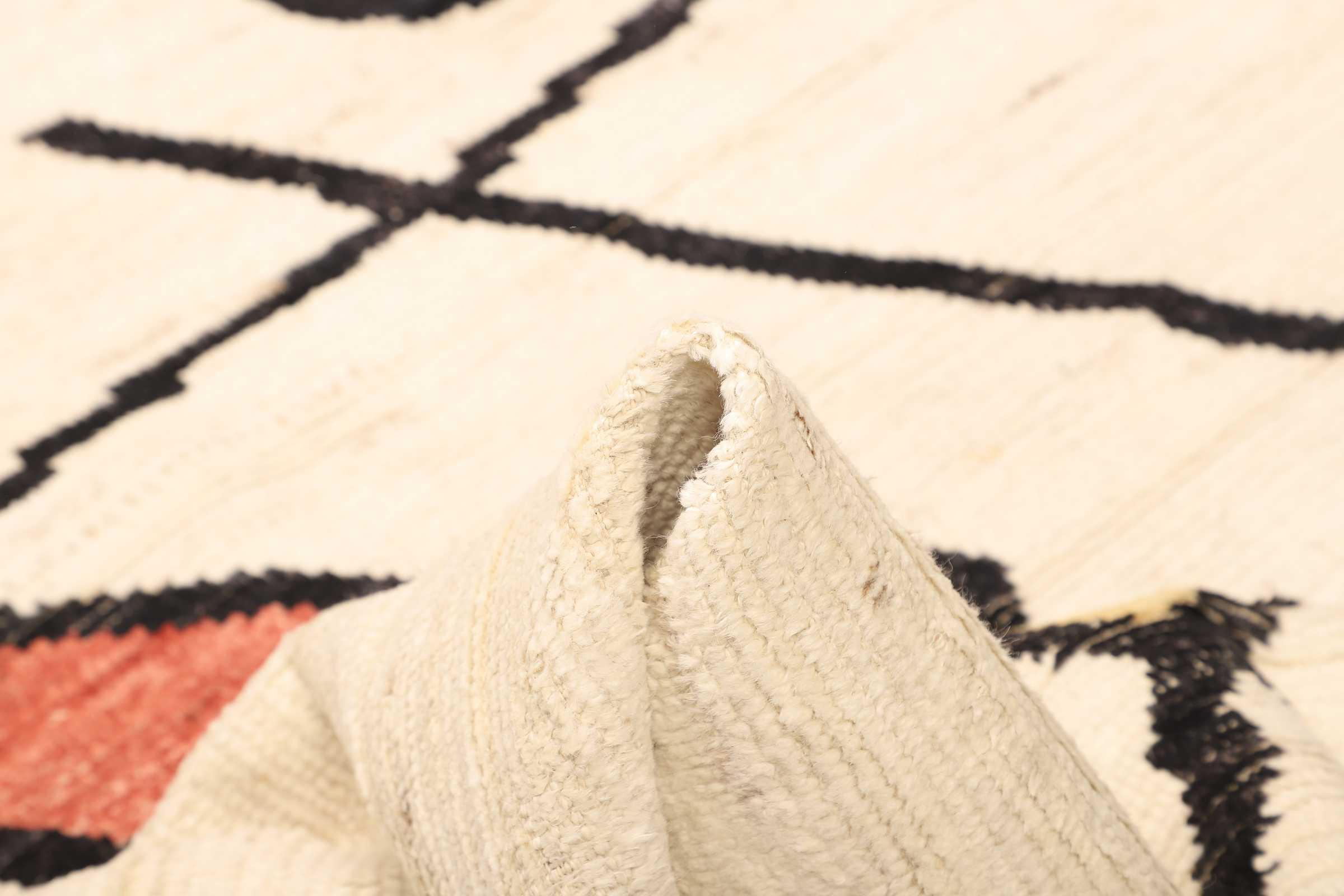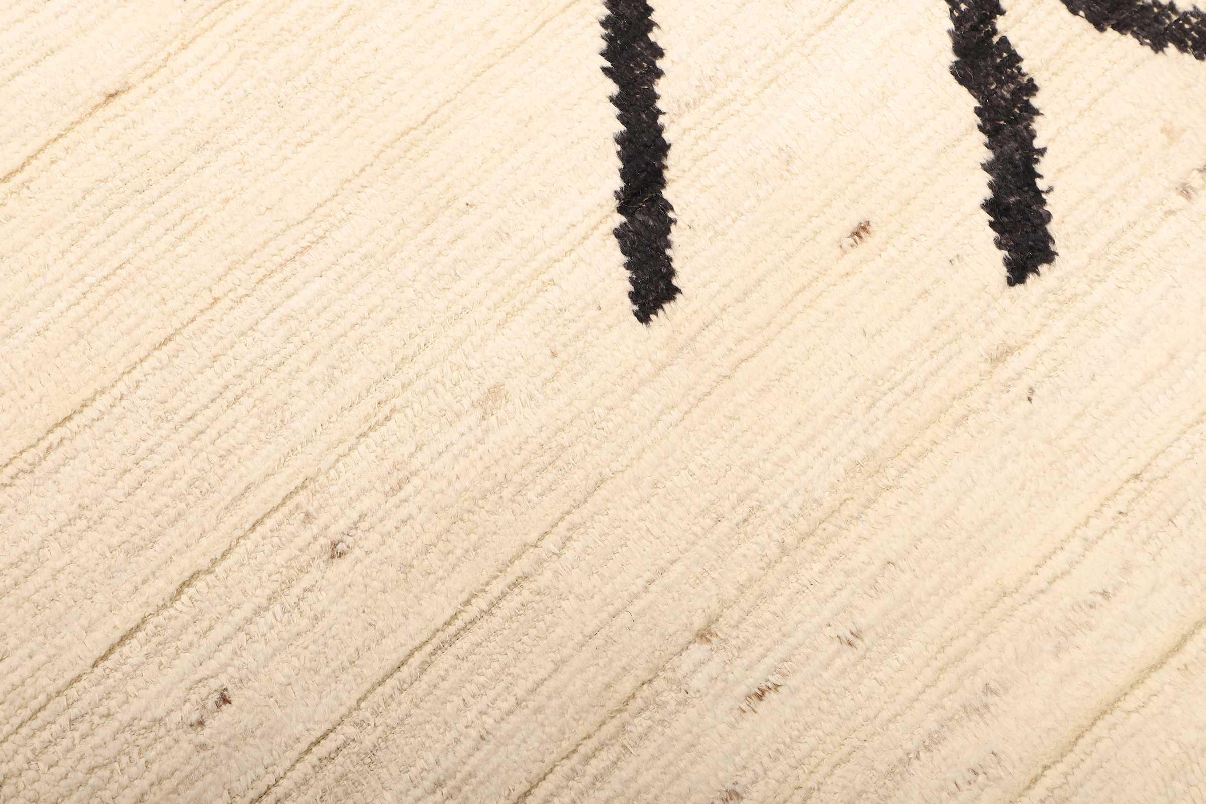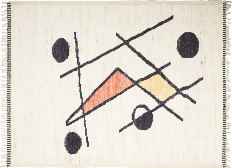 Carpet ID: 271012004013532 Size: 228x180 cm Thickness: ap. 25 mm Knot density: 96 000 - 120 000 / m² Manufacturing: Knotted by hand Pile: Handspun wool Warp: Cotton Origin: Afghanistan Age: New Weight: ap. 16 kg Also know as Beni Ourain, Beni Ouarain, Boucherouite In stock: Unique - Only 1 in stock