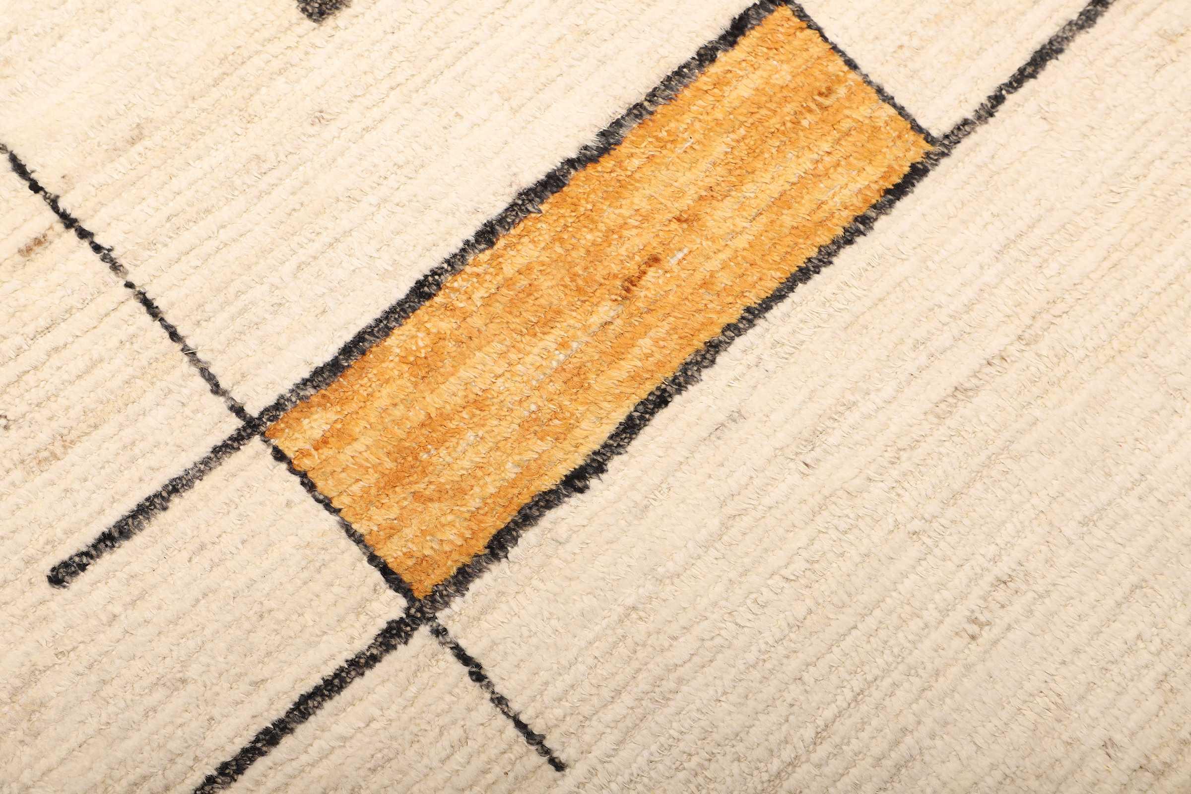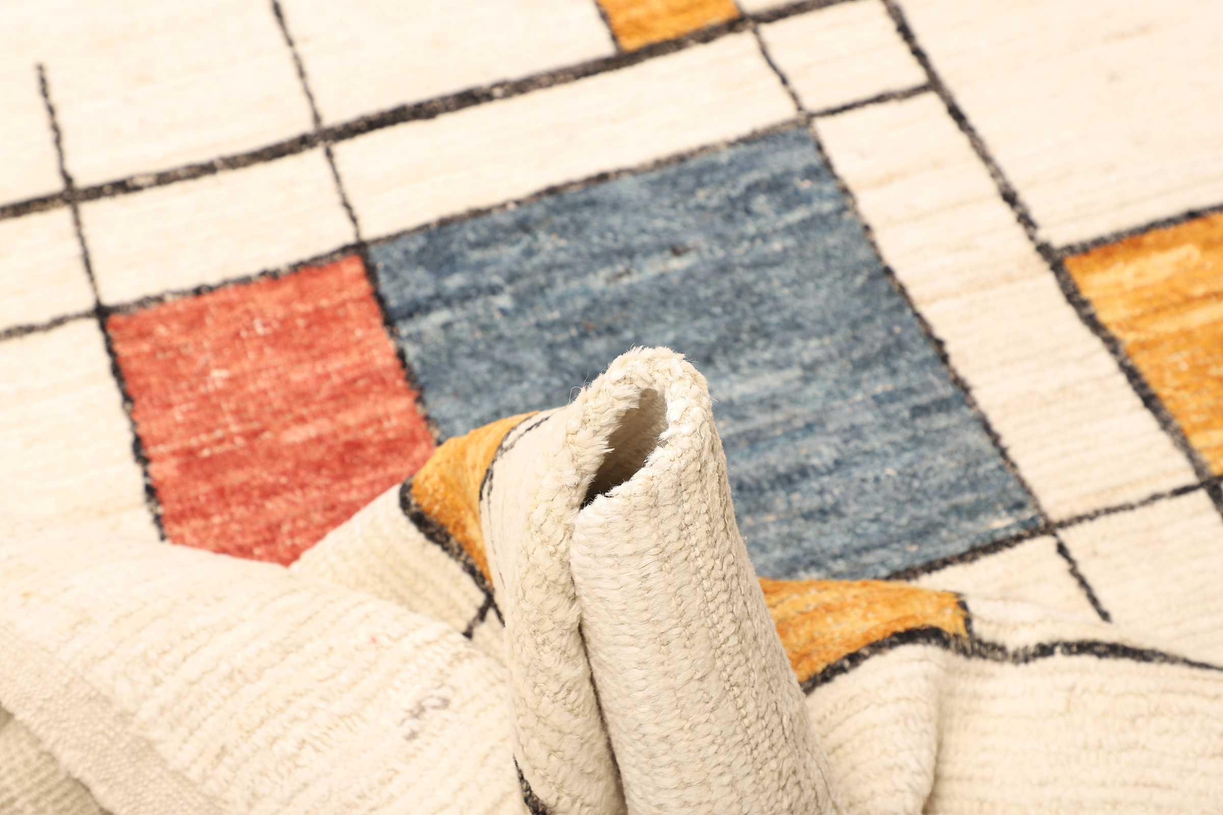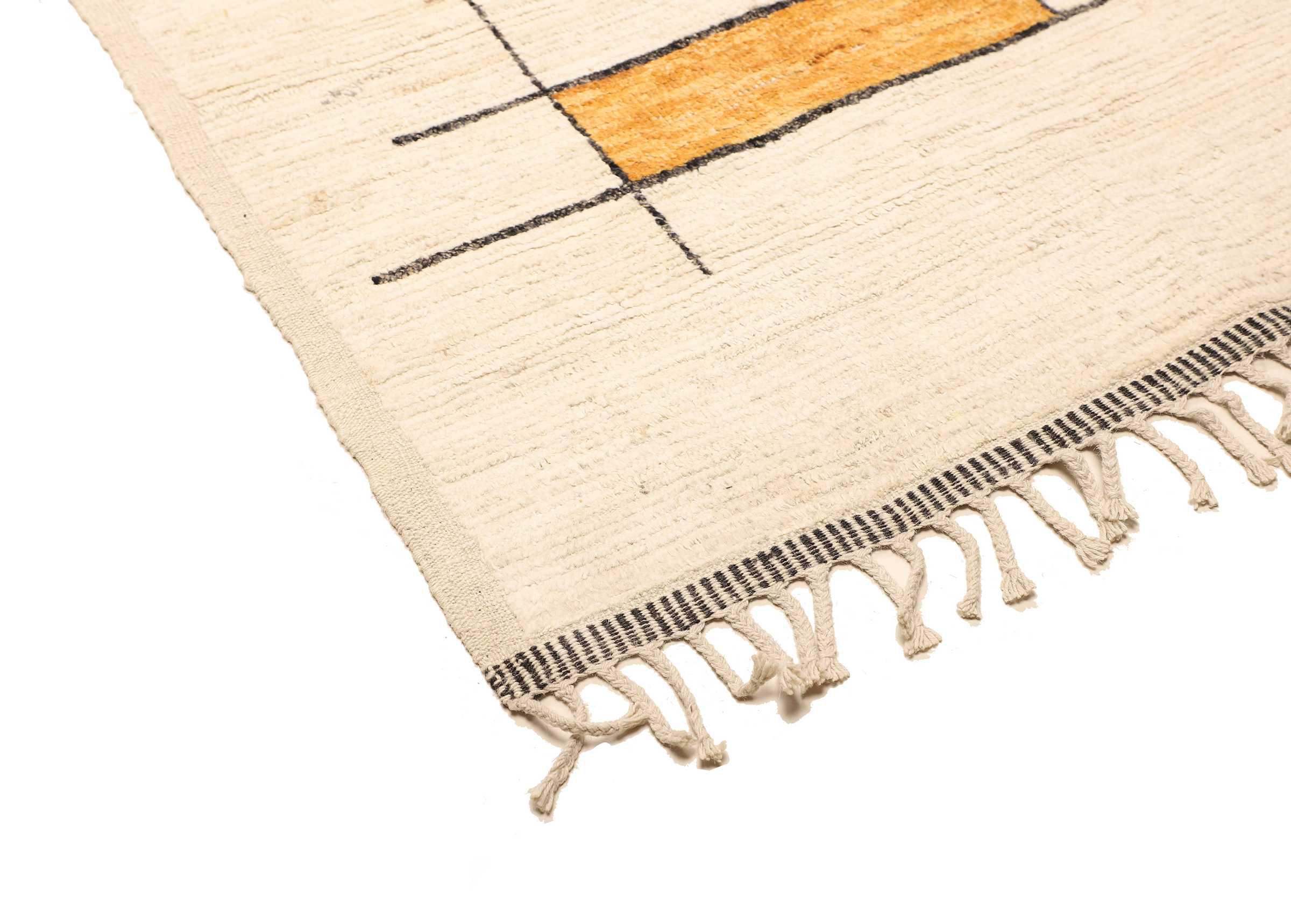 Carpet ID: 271005001360763 Size: 305x208 cm Thickness: ap. 25 mm Knot density: 96 000 - 120 000 / m² Manufacturing: Knotted by hand Pile: Handspun wool Warp: Cotton Origin: Afghanistan Age: New Weight: ap. 25 kg Also know as Beni Ourain, Beni Ouarain, Boucherouite In stock: Unique - Only 1 in stock