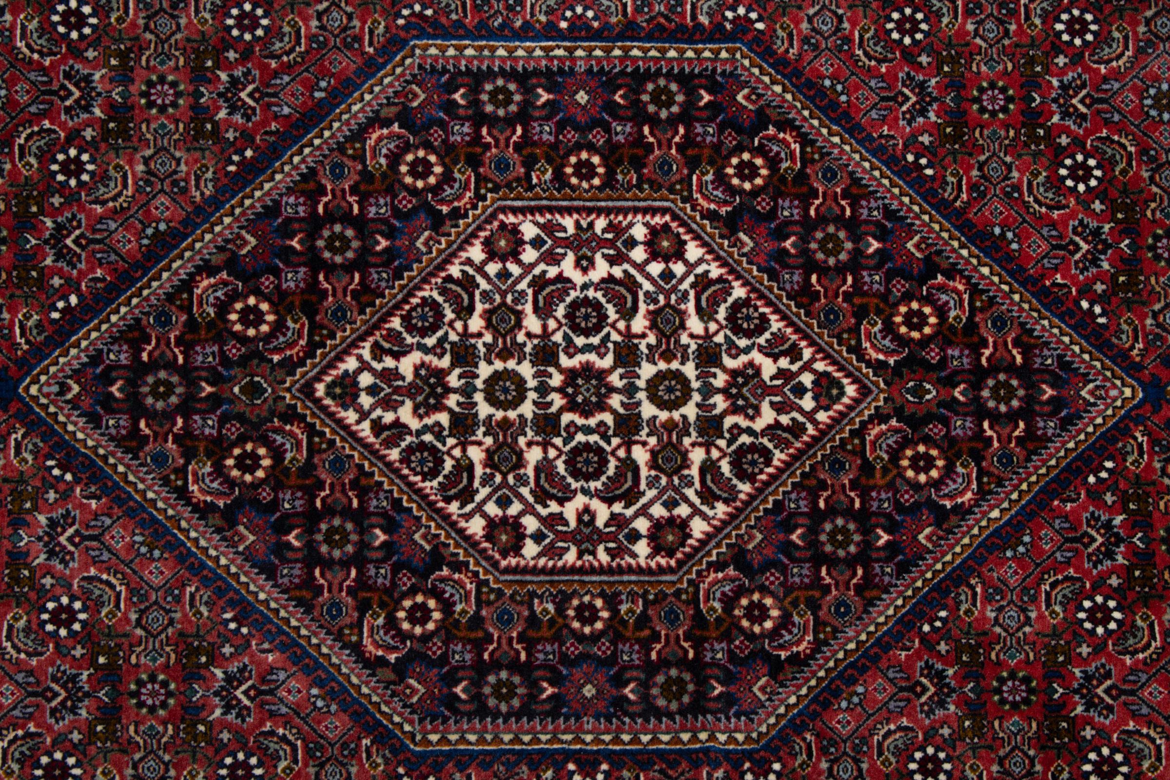 This Persian carpet has been crafted in a small Kurdish town in Western Persia. Bidjar carpets stand for high quality and contemporary design. With geometric patterns and ornaments it is highly popular even for modern interior concepts. Additionally, its compact pile is popular due to its resilience and robustness. This Persian rug made by a Kurdish minority is a great and long-lasting choice you wouldn't want to miss anymore.