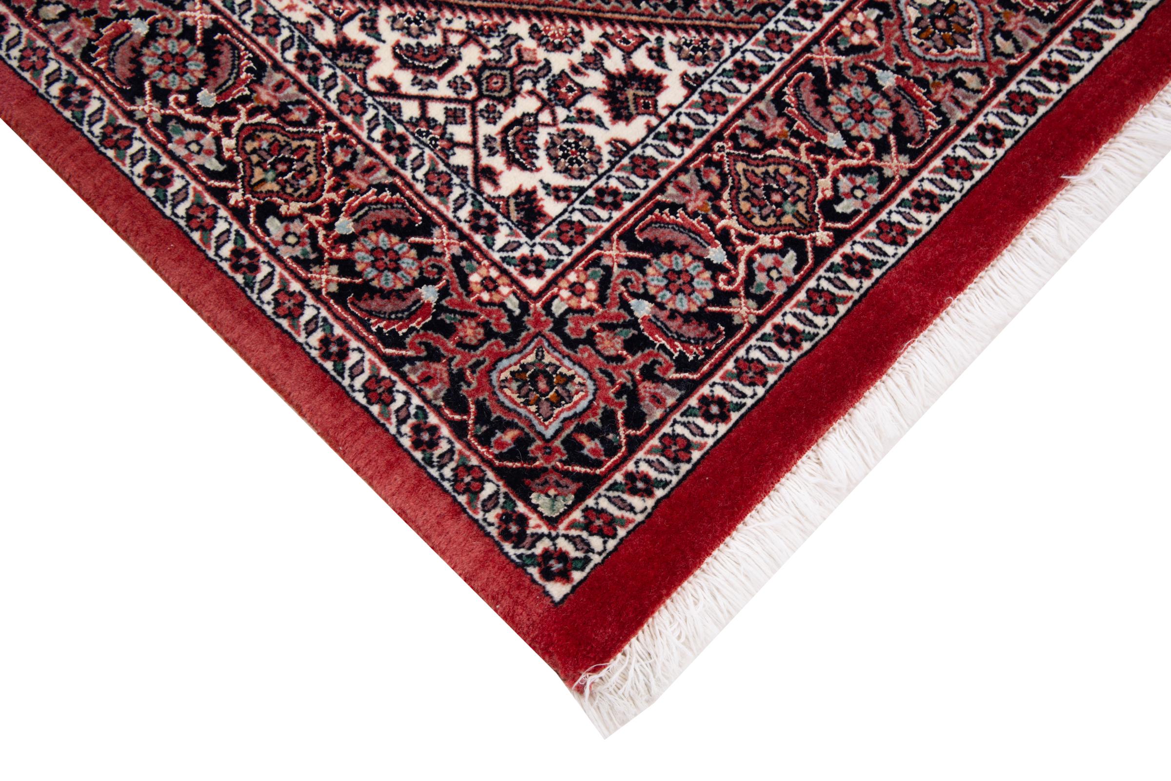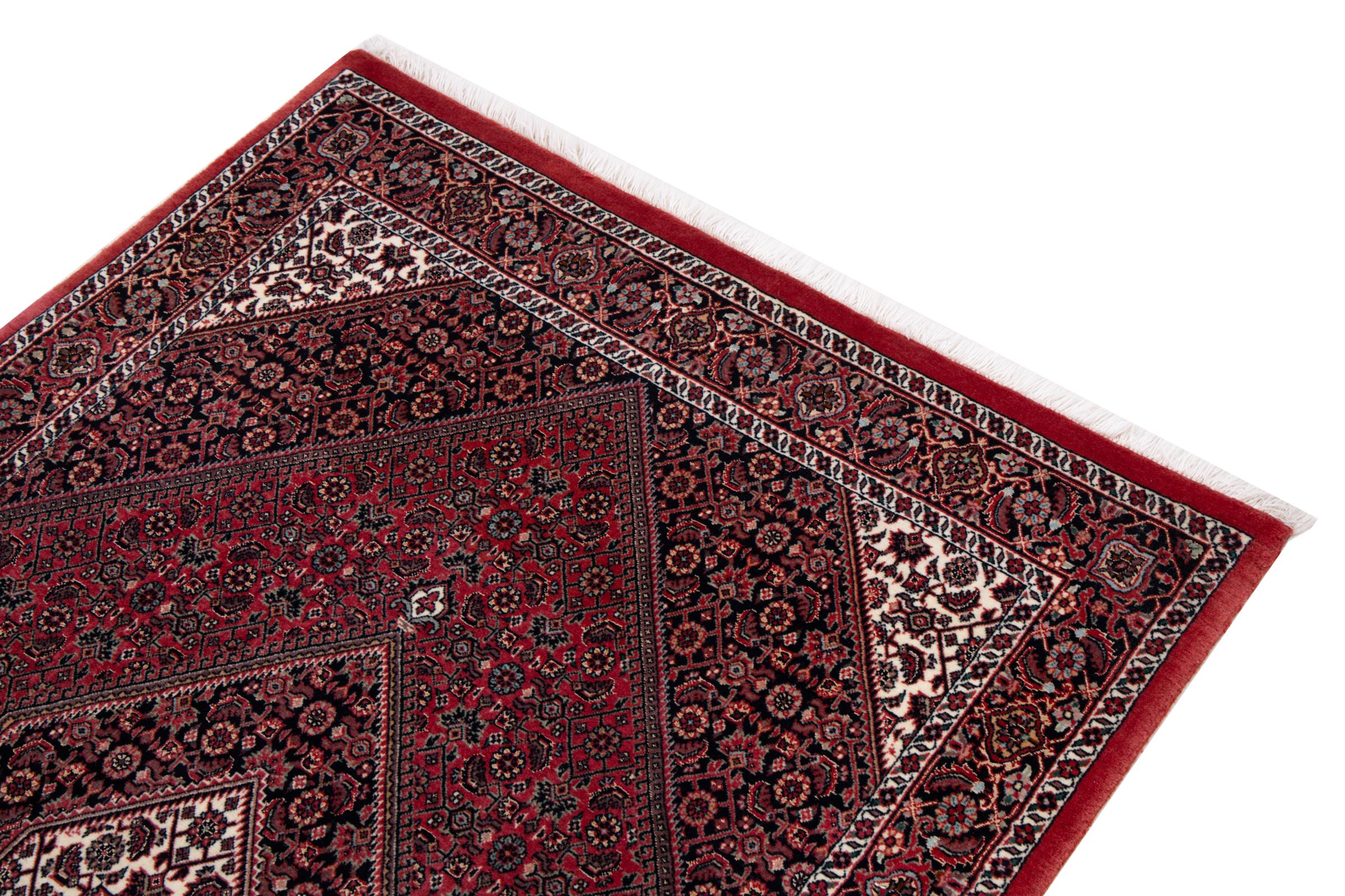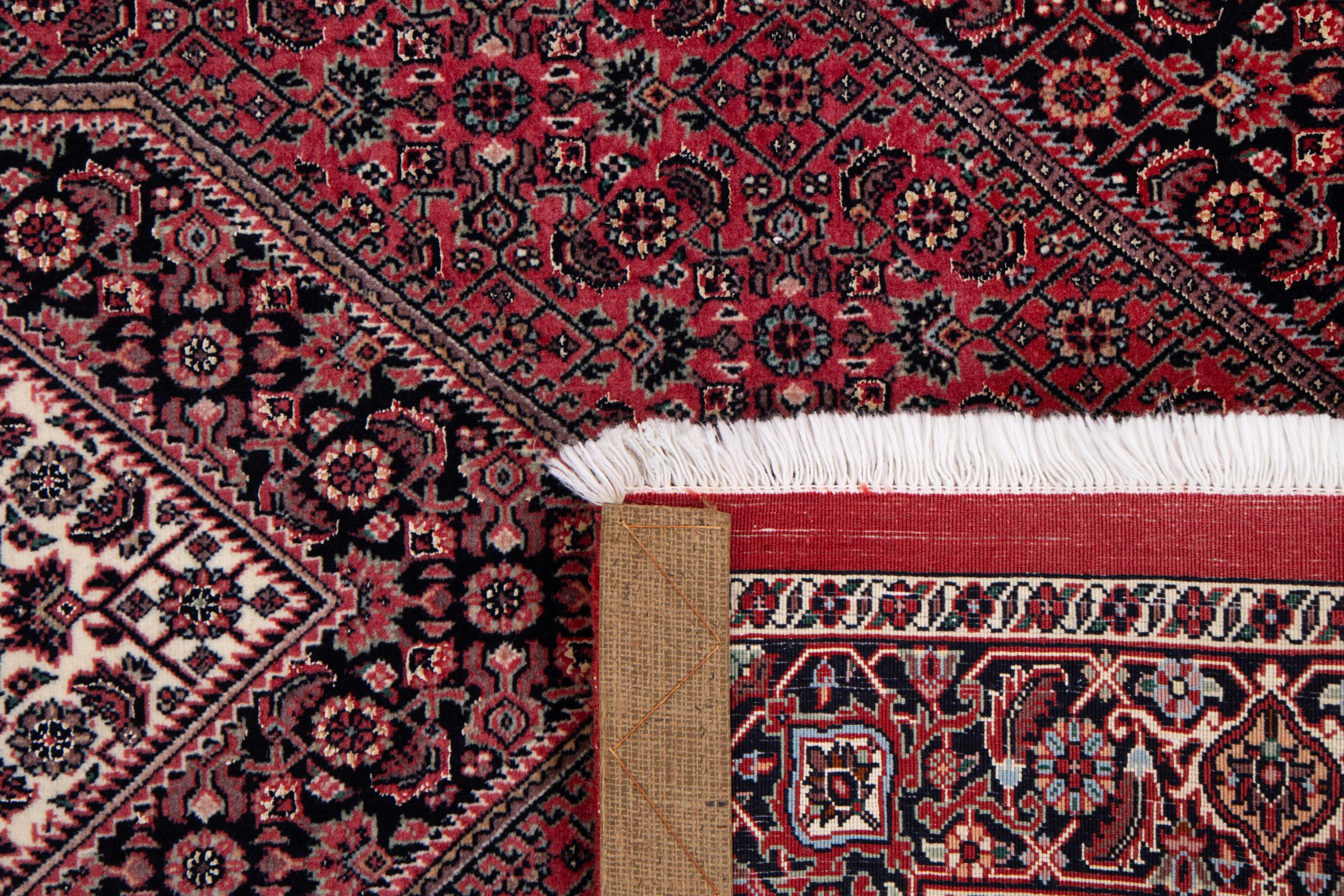 This Persian carpet has been crafted in a small Kurdish town in Western Persia. Bidjar carpets stand for high quality and contemporary design. With geometric patterns and ornaments it is highly popular even for modern interior concepts. Additionally, its compact pile is popular due to its resilience and robustness. This Persian rug made by a Kurdish minority is a great and long-lasting choice you wouldn't want to miss anymore.