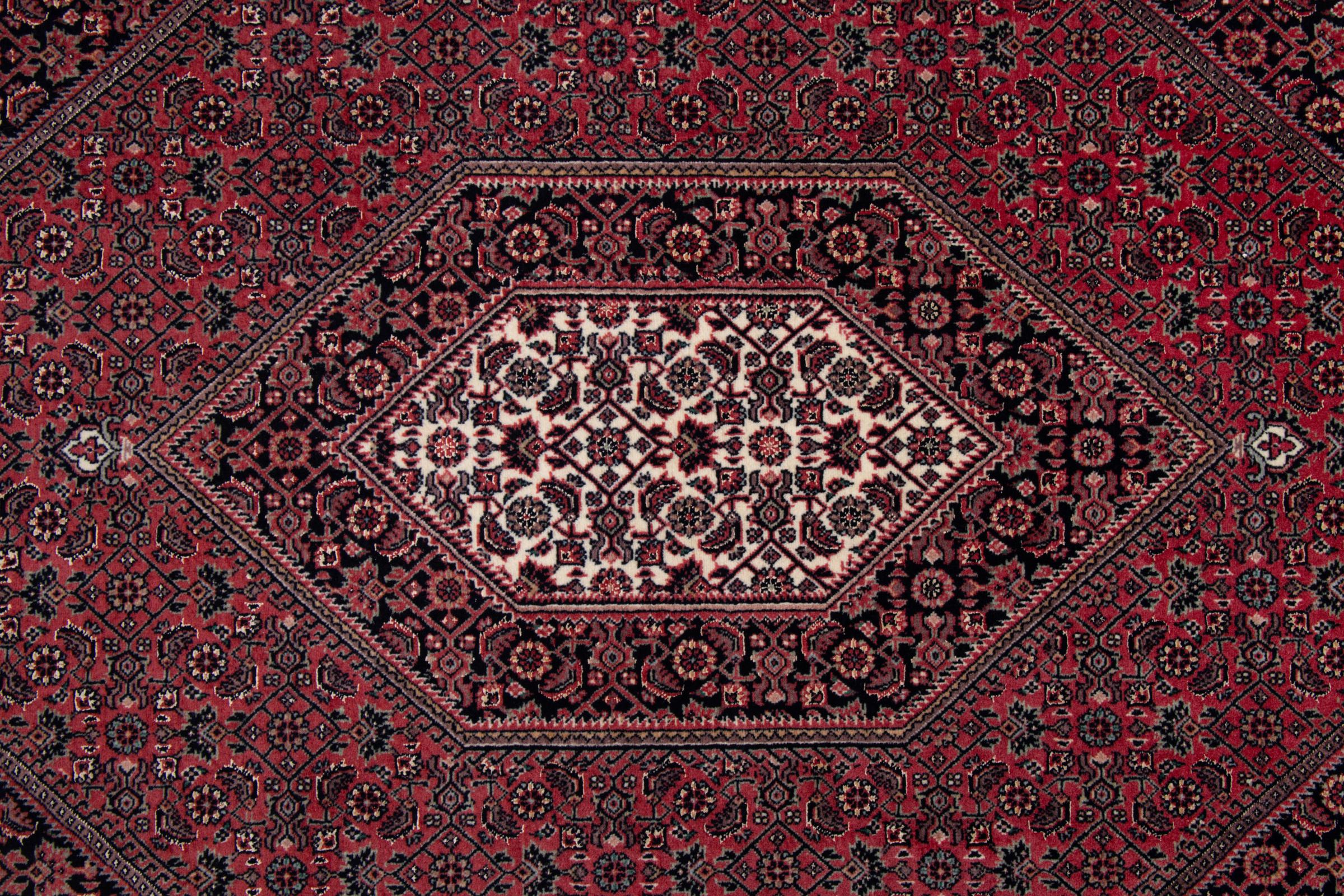 These rugs come from the Kurdish minority living in Iran. The city of Bijar is known for its strong and high quality Persian rugs. The pile of these carpets is tightly compressed with a comb when knotted. This way, dirt particles can hardly penetrate. At the same time Bijar rugs are relatively heavy and thick. Bijar rugs usually have a medallion in the centre and come in the so-called Herati pattern. Bijar rugs usually have a medallion in the centre and come in the so-called Herati pattern.