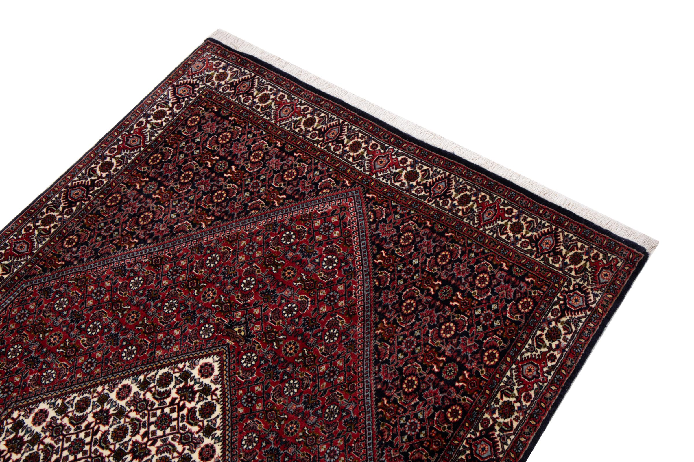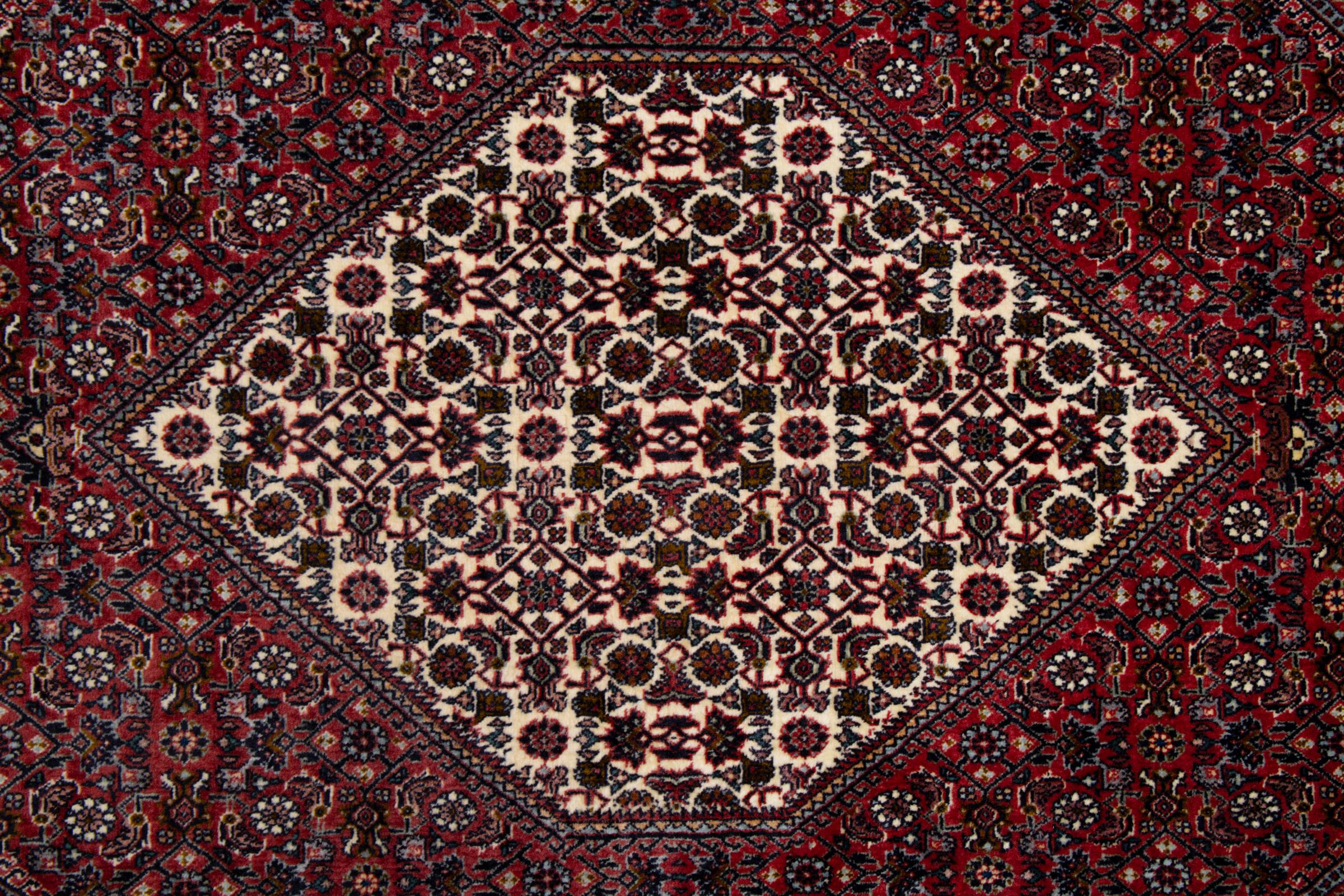 This Persian carpet has been crafted in a small Kurdish town in Western Persia. Bidjar carpets stand for high quality and contemporary design. With geometric patterns and ornaments it is highly popular even for modern interior concepts. Additionally, its compact pile is popular due to its resilience and robustness. This Persian rug made by a Kurdish minority is a great and long-lasting choice you wouldn't want to miss anymore.