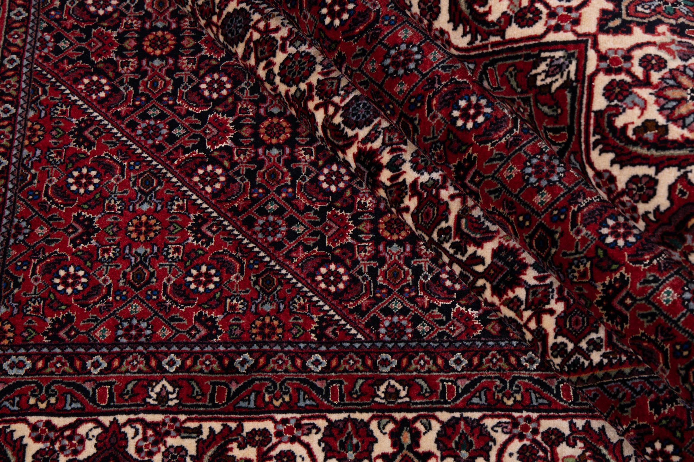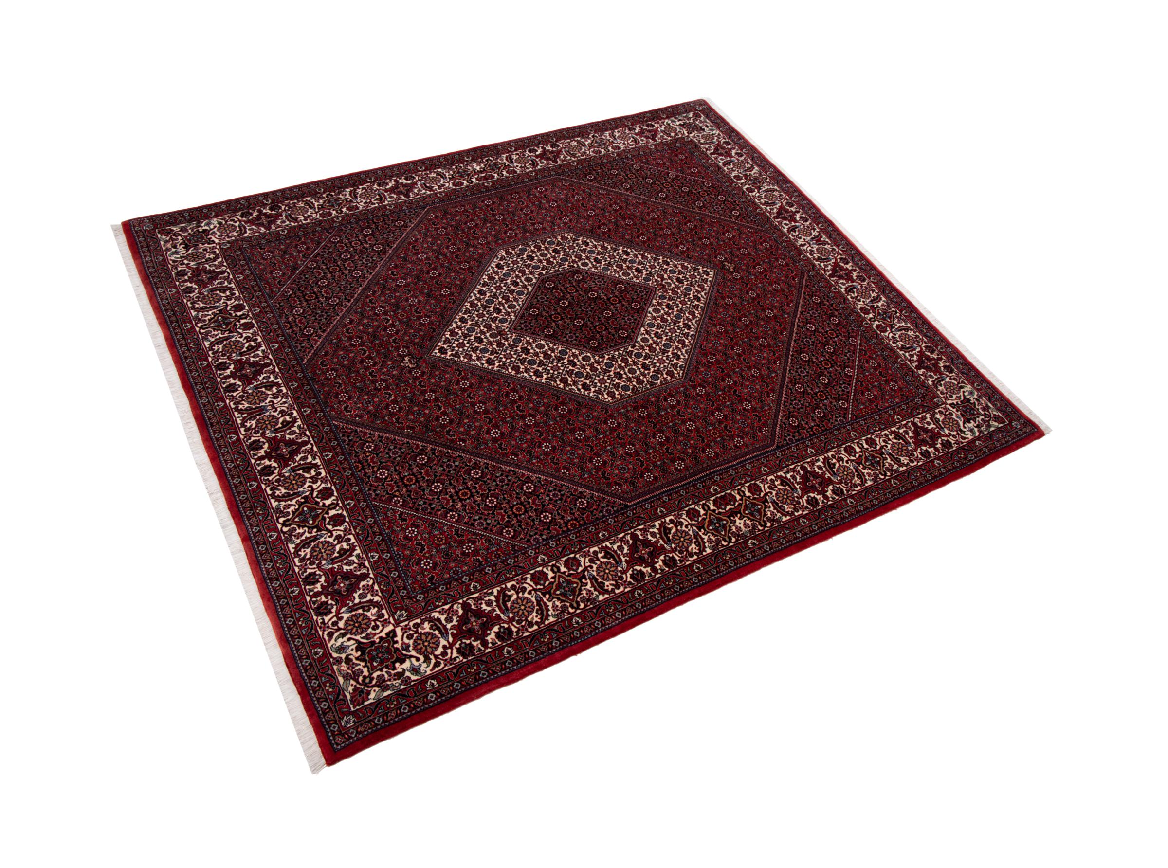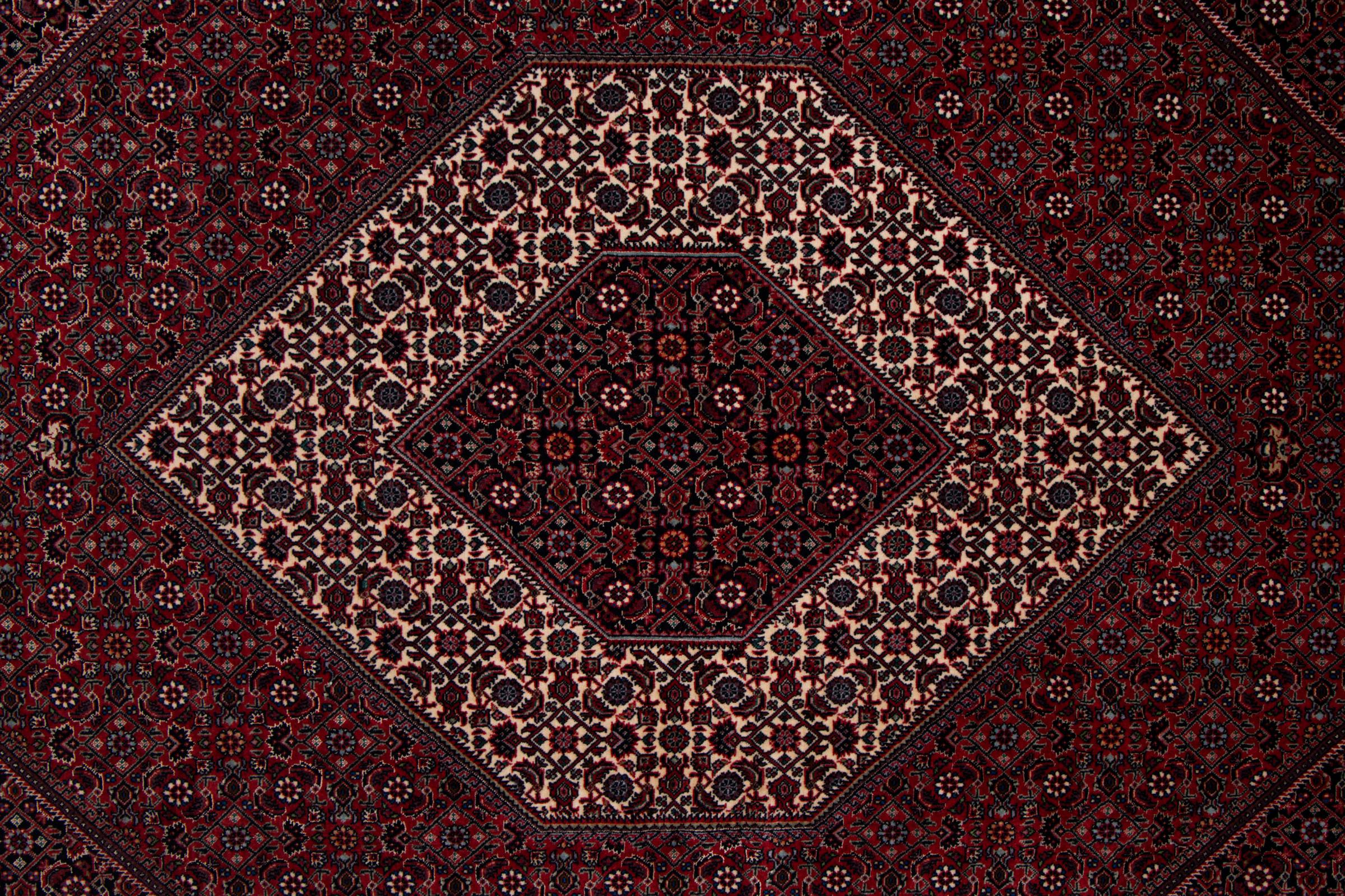 This Persian carpet has been crafted in a small Kurdish town in Western Persia. Bidjar carpets stand for high quality and contemporary design. With geometric patterns and ornaments it is highly popular even for modern interior concepts. Additionally, its compact pile is popular due to its resilience and robustness. This Persian rug made by a Kurdish minority is a great and long-lasting choice you wouldn't want to miss anymore.