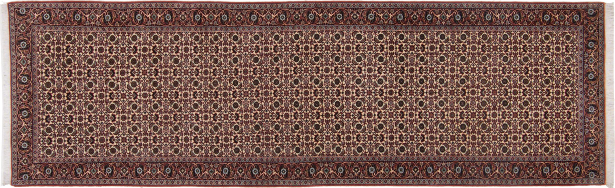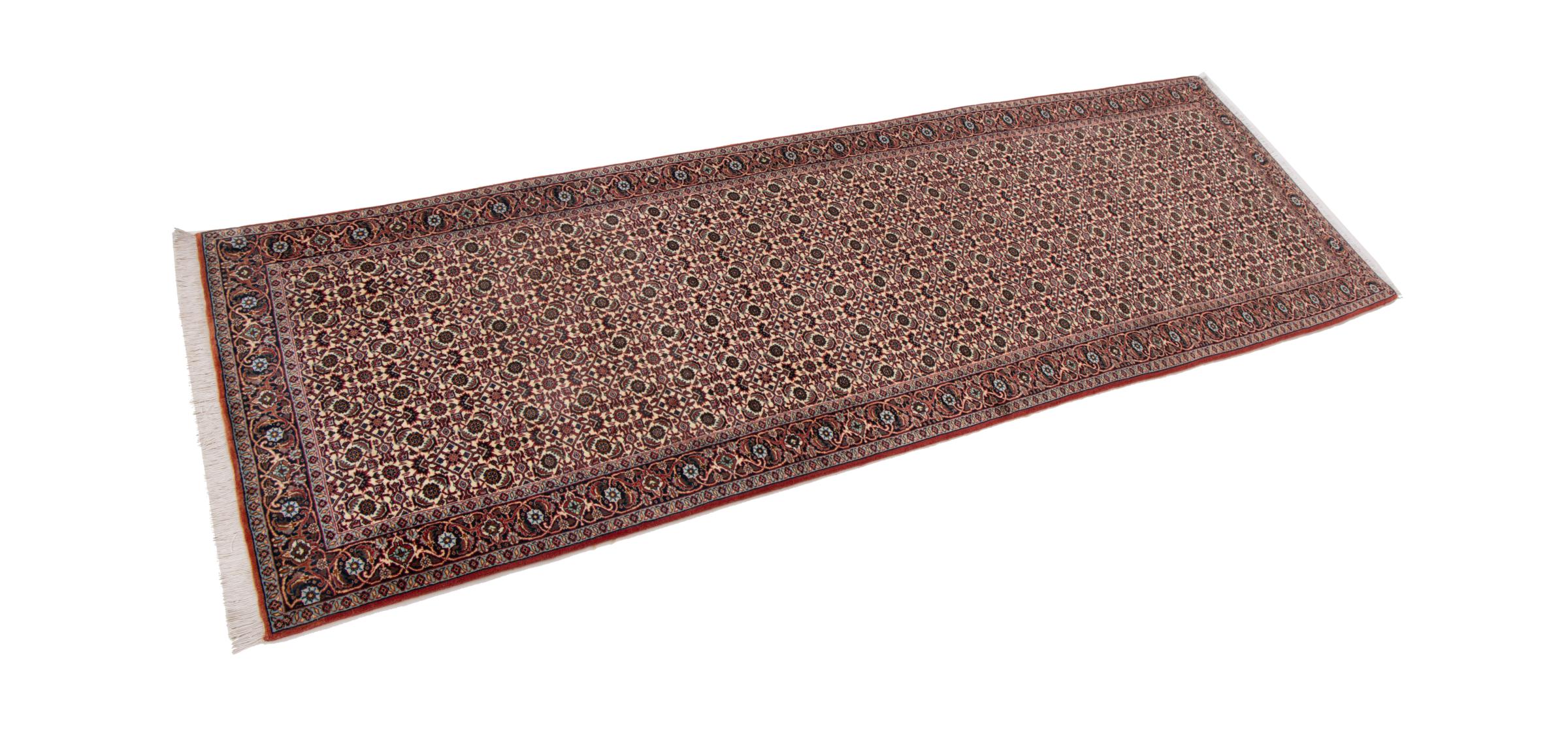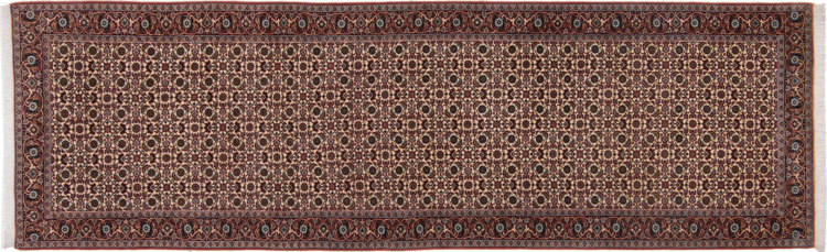 Carpet ID: 292838002799099 Size: 288x86 cm Thickness: ap. 15 mm Knot density: 320 000 - 360 000 / m² Manufacturing: Knotted by hand Pile: Handspun wool Warp: Cotton Origin: Persia Age: New Weight: ap. 12 kg In stock: Unique - Only 1 in stock