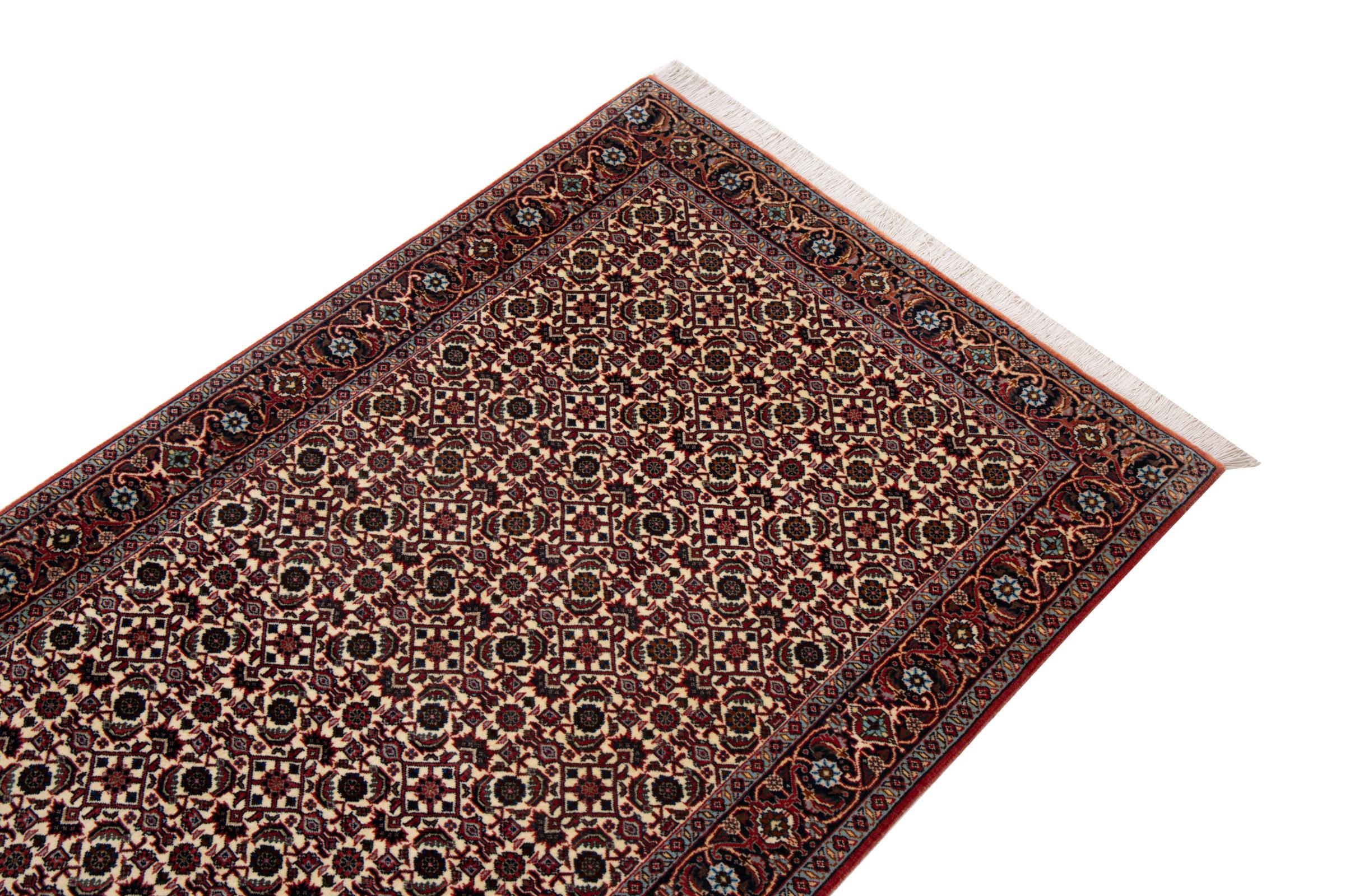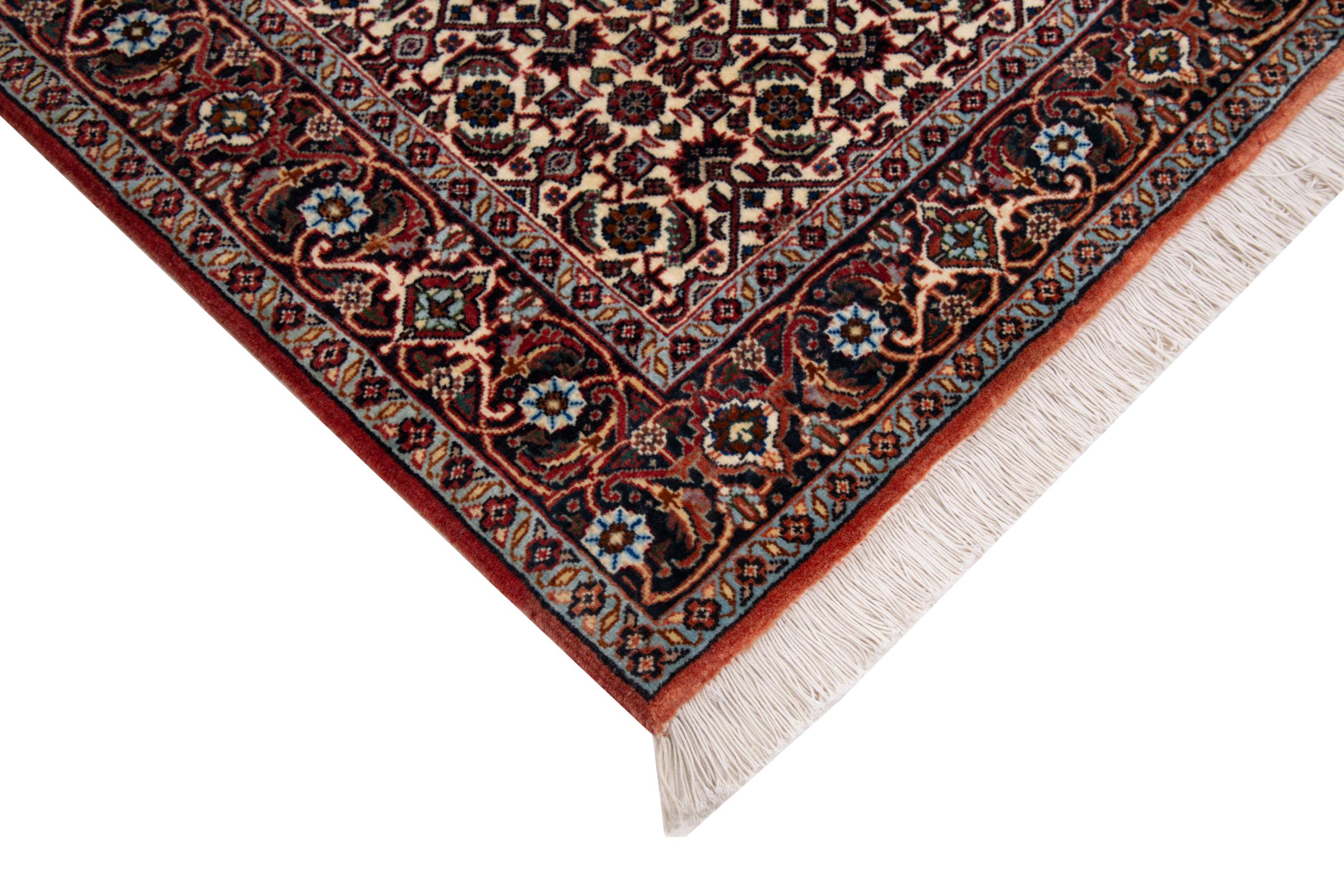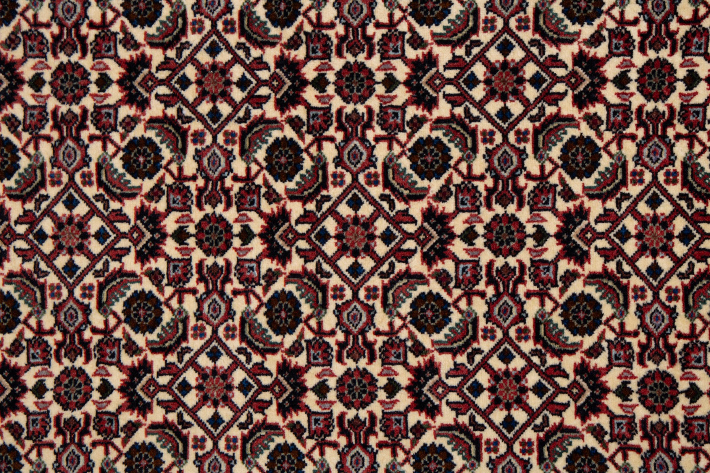 This Persian carpet has been crafted in a small Kurdish town in Western Persia. Bidjar carpets stand for high quality and contemporary design. With geometric patterns and ornaments it is highly popular even for modern interior concepts. Additionally, its compact pile is popular due to its resilience and robustness. This Persian rug made by a Kurdish minority is a great and long-lasting choice you wouldn't want to miss anymore.