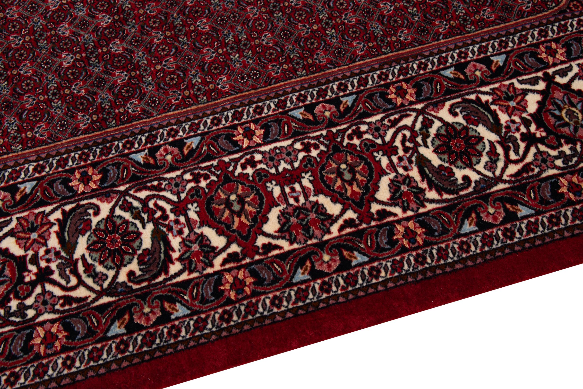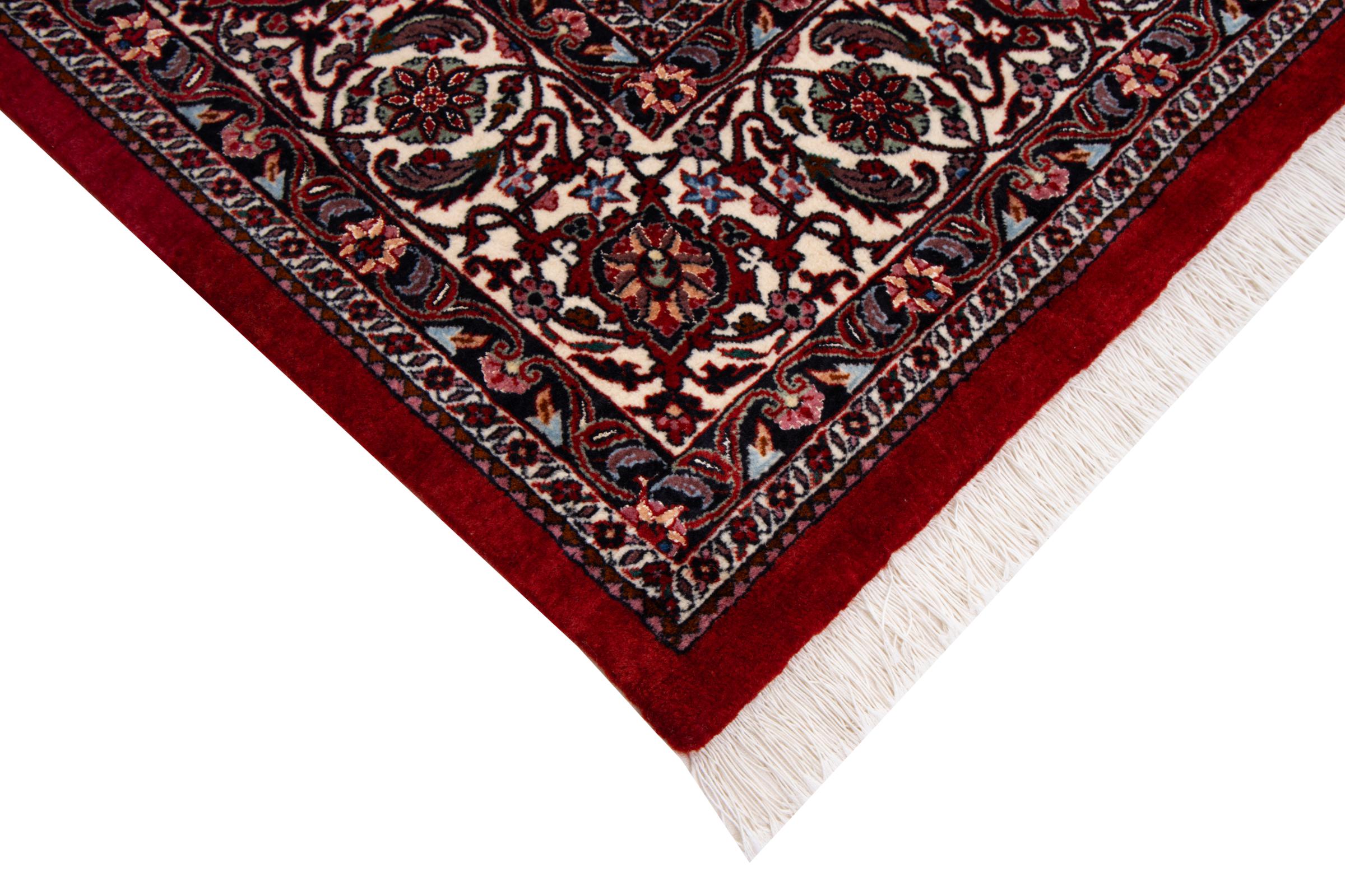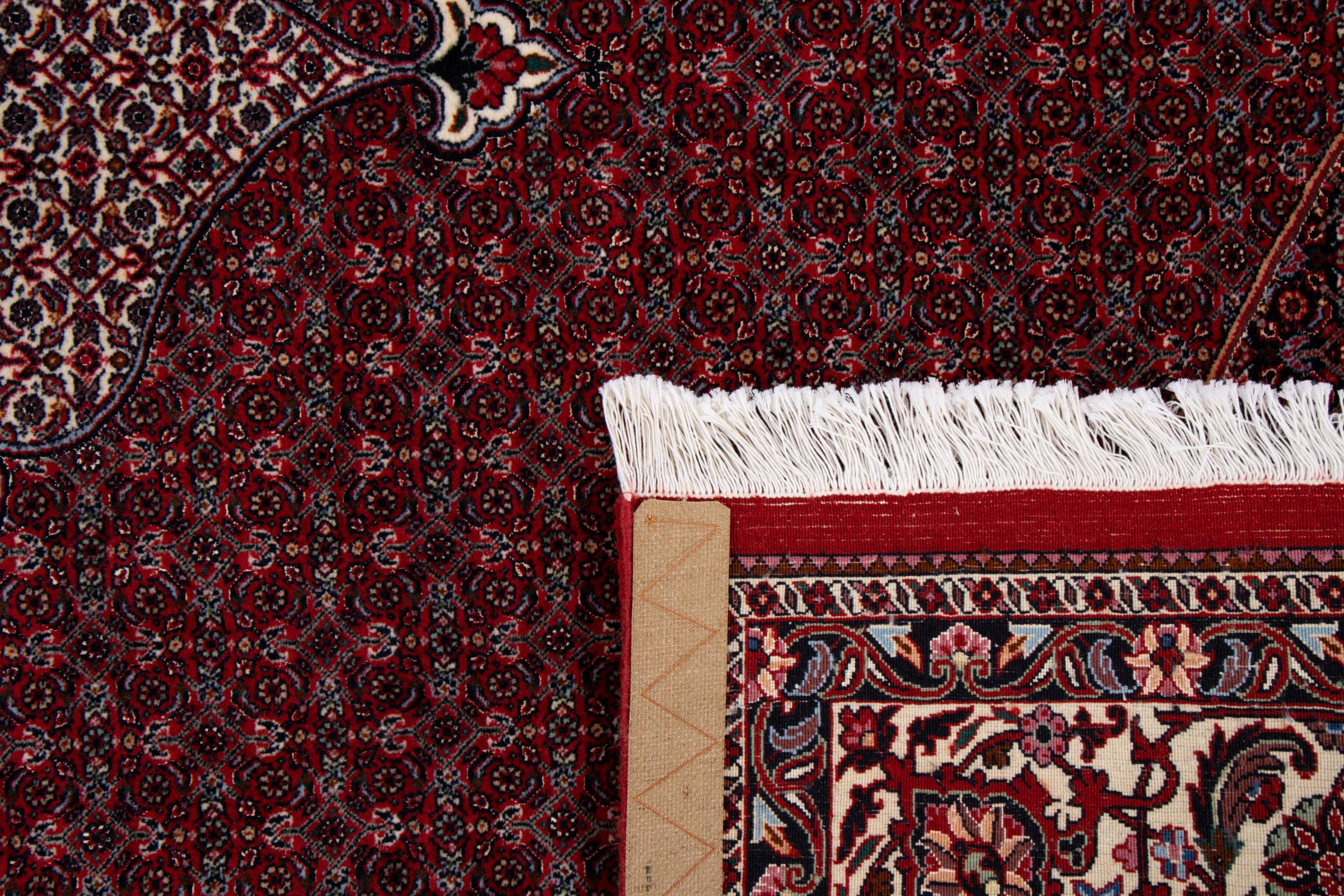 This Persian carpet has been crafted in a small Kurdish town in Western Persia. Bidjar carpets stand for high quality and contemporary design. With geometric patterns and ornaments it is highly popular even for modern interior concepts. Additionally, its compact pile is popular due to its resilience and robustness. This Persian rug made by a Kurdish minority is a great and long-lasting choice you wouldn't want to miss anymore.