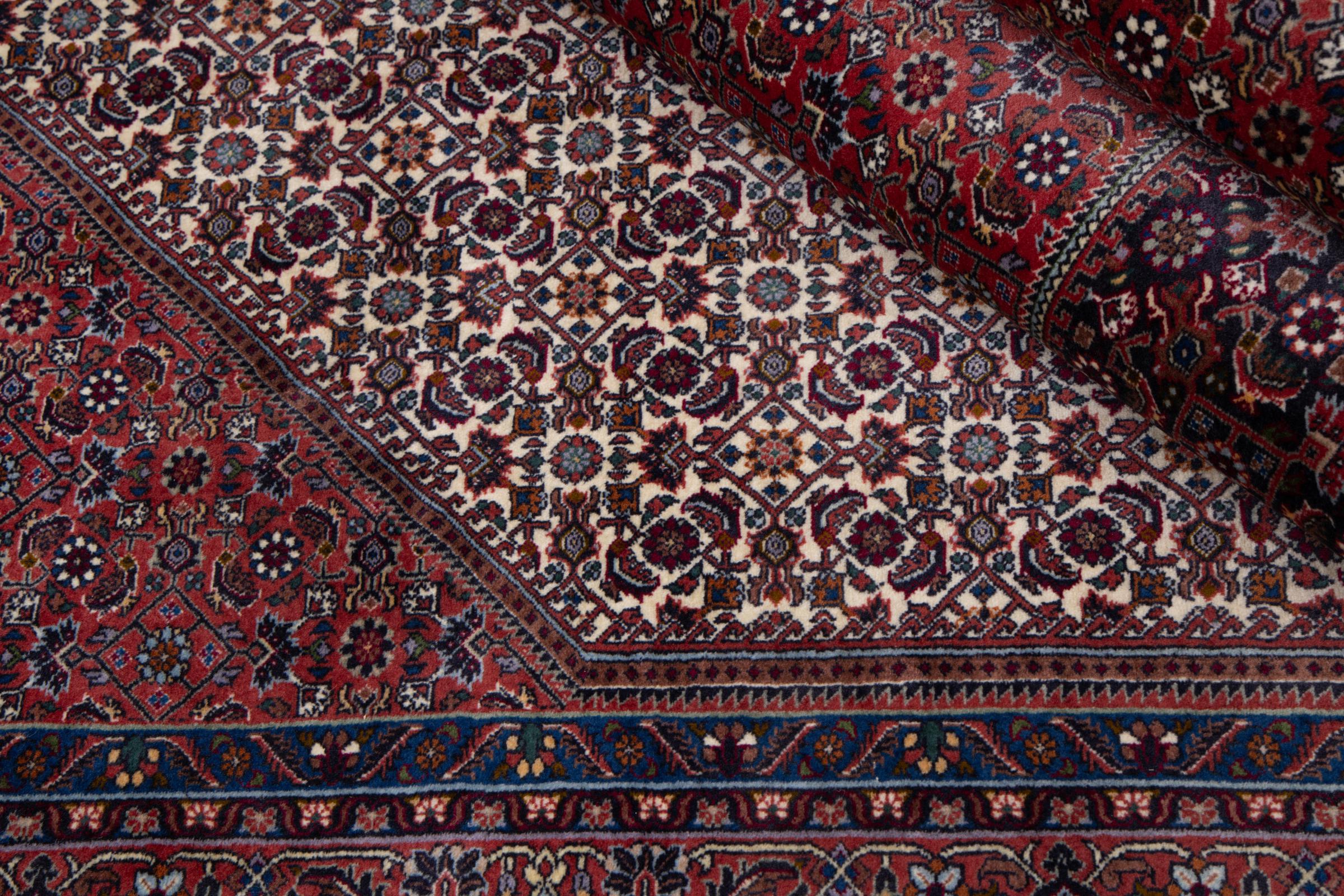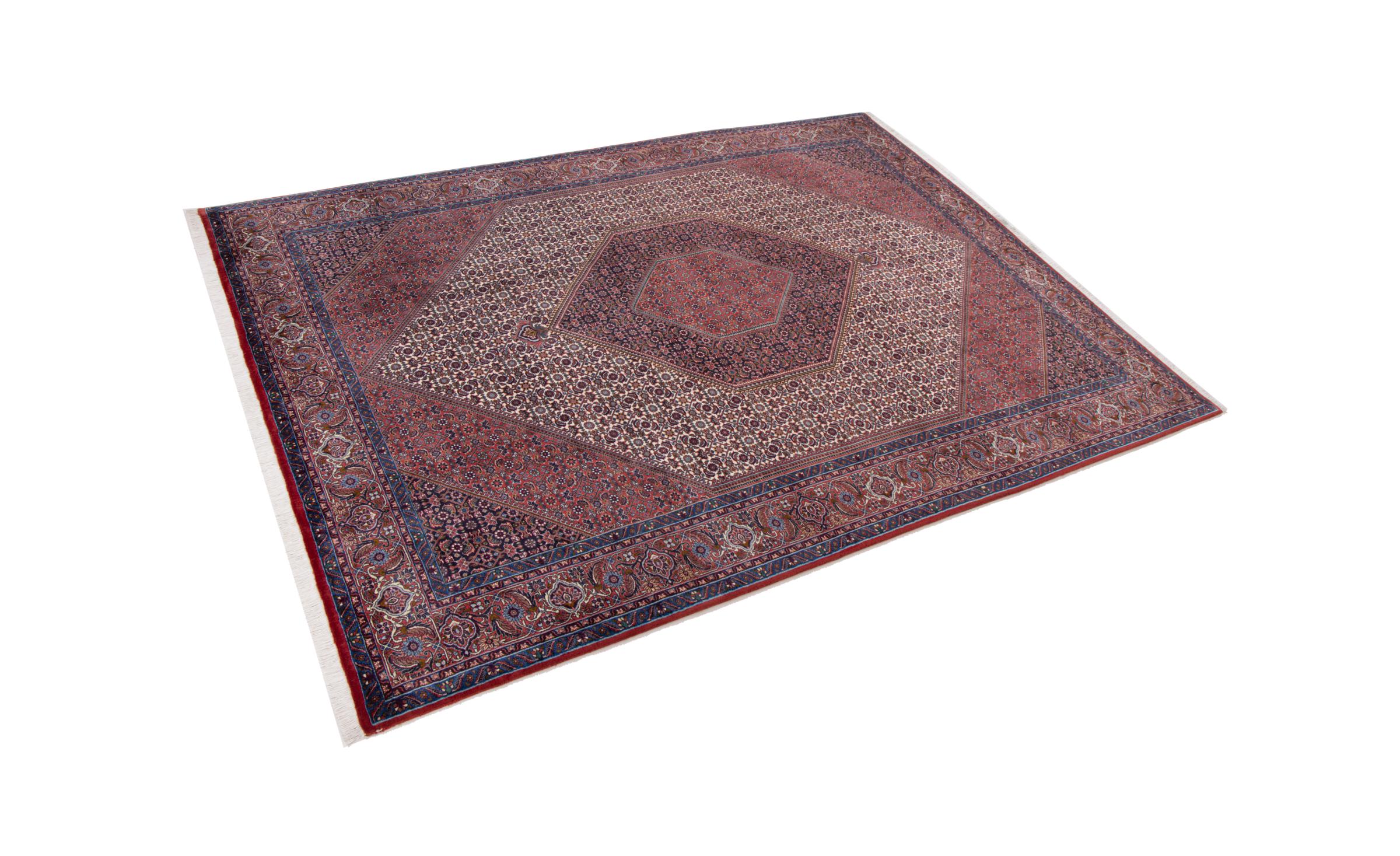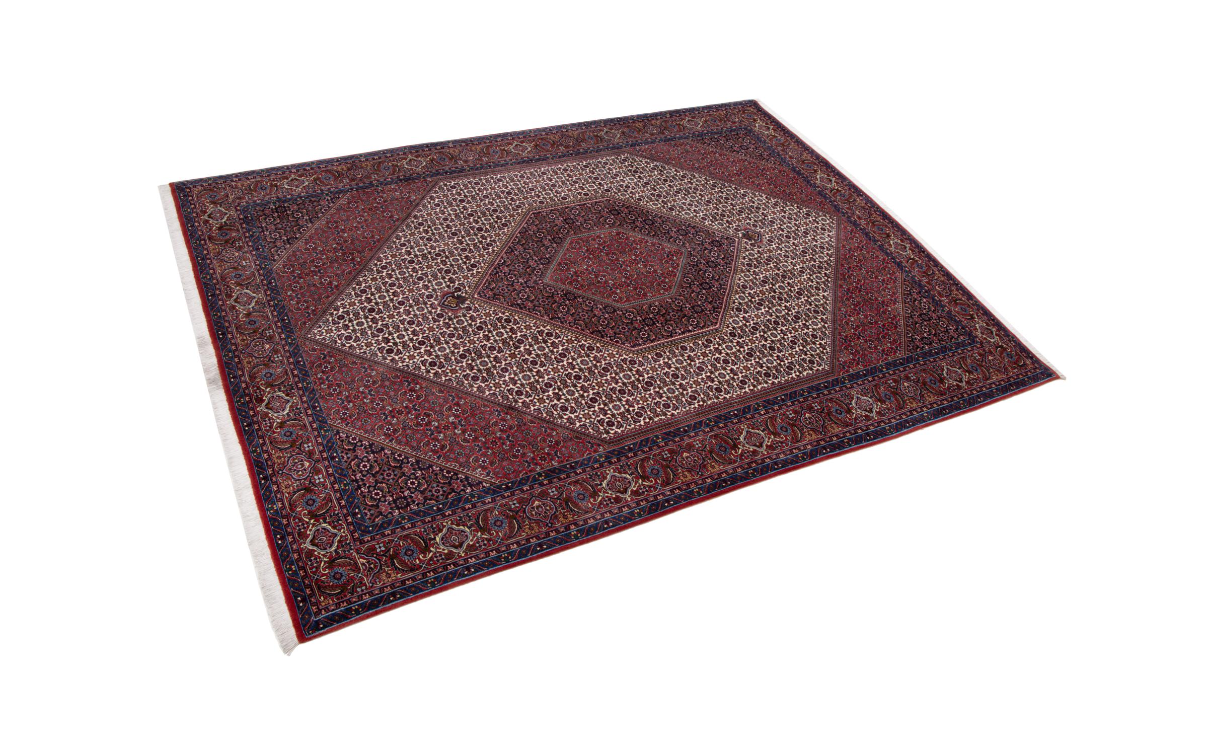 This Persian carpet has been crafted in a small Kurdish town in Western Persia. Bidjar carpets stand for high quality and contemporary design. With geometric patterns and ornaments it is highly popular even for modern interior concepts. Additionally, its compact pile is popular due to its resilience and robustness. This Persian rug made by a Kurdish minority is a great and long-lasting choice you wouldn't want to miss anymore.