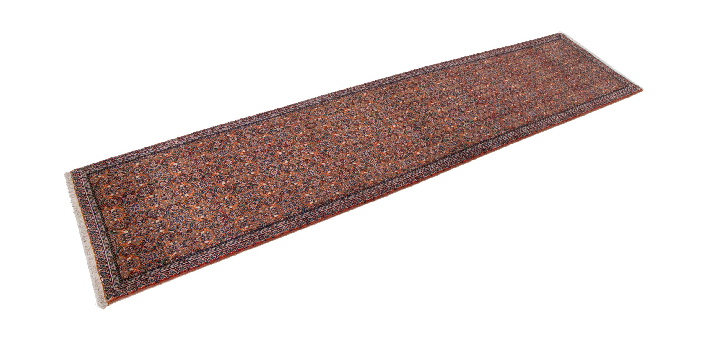 Carpet ID: 292795003184240 Size: 319x73 cm Thickness: ap. 15 mm Knot density: 320 000 - 360 000 / m² Manufacturing: Knotted by hand Pile: Handspun wool Warp: Cotton Origin: Persia Age: New Weight: ap. 12 kg In stock: Unique - Only 1 in stock