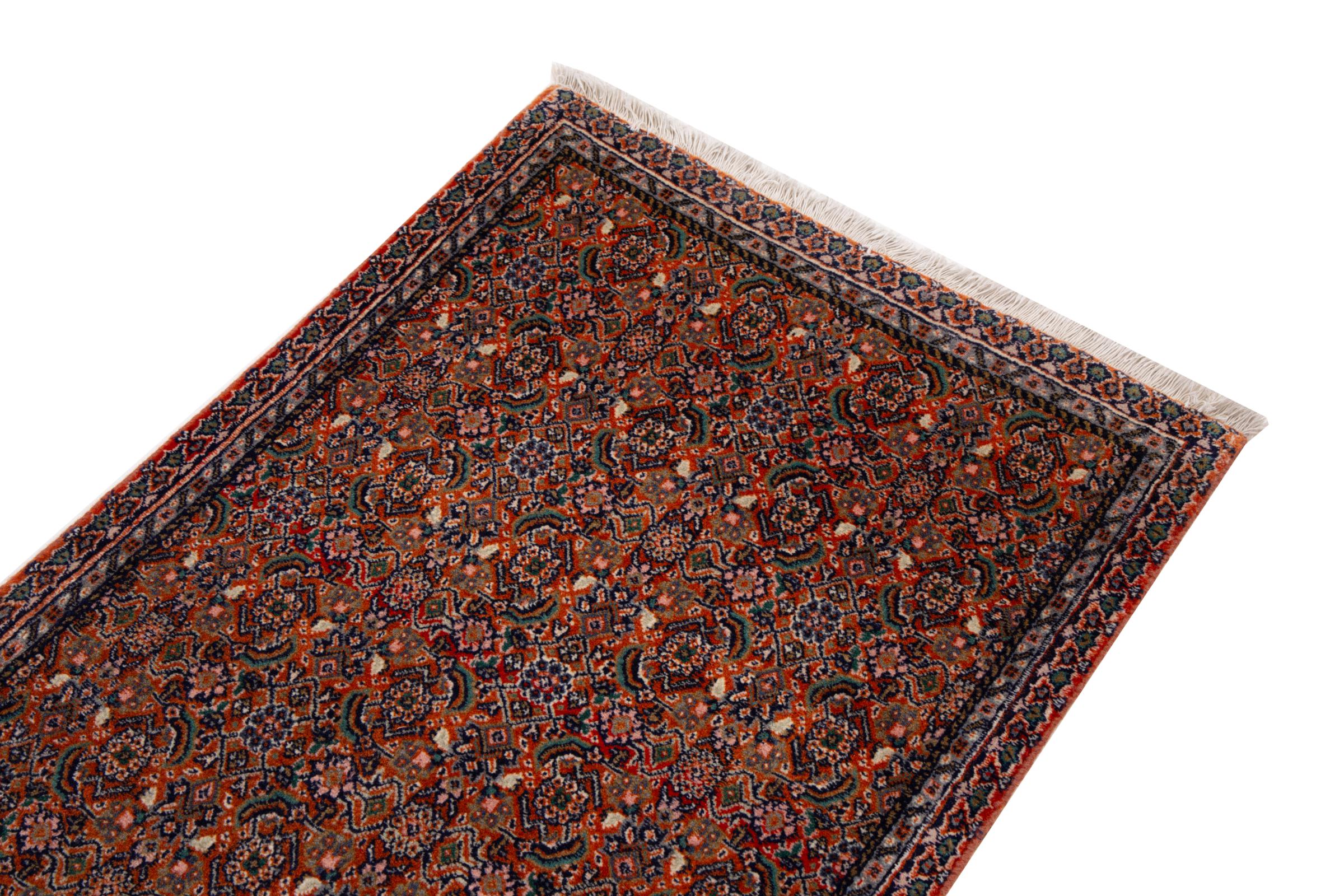This Persian carpet has been crafted in a small Kurdish town in Western Persia. Bidjar carpets stand for high quality and contemporary design. With geometric patterns and ornaments it is highly popular even for modern interior concepts. Additionally, its compact pile is popular due to its resilience and robustness. This Persian rug made by a Kurdish minority is a great and long-lasting choice you wouldn't want to miss anymore.