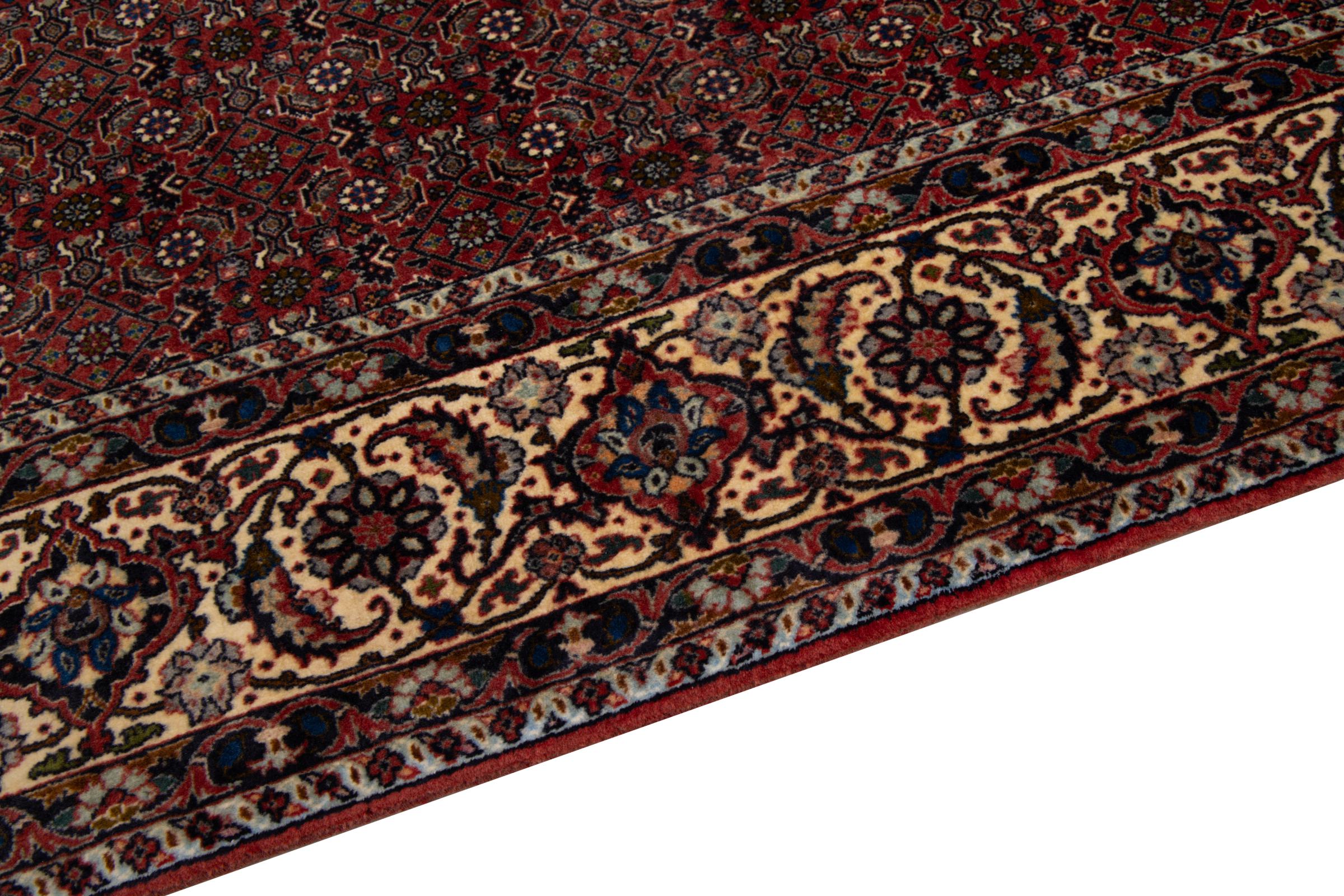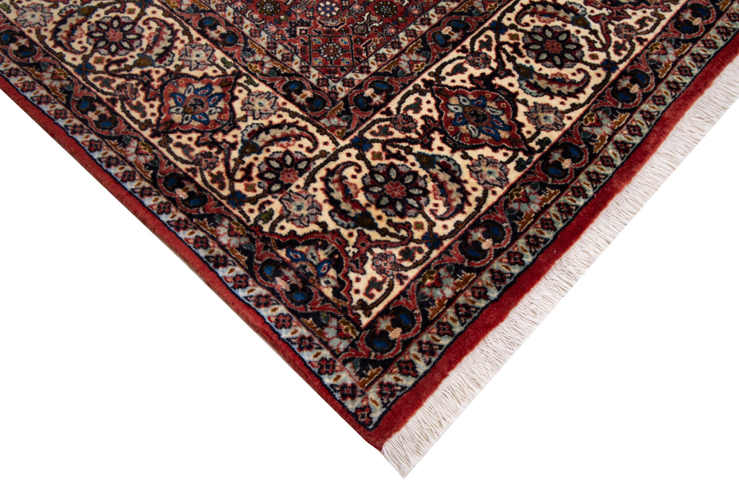 This Persian carpet has been crafted in a small Kurdish town in Western Persia. Bidjar carpets stand for high quality and contemporary design. With geometric patterns and ornaments it is highly popular even for modern interior concepts. Additionally, its compact pile is popular due to its resilience and robustness. This Persian rug made by a Kurdish minority is a great and long-lasting choice you wouldn't want to miss anymore.
