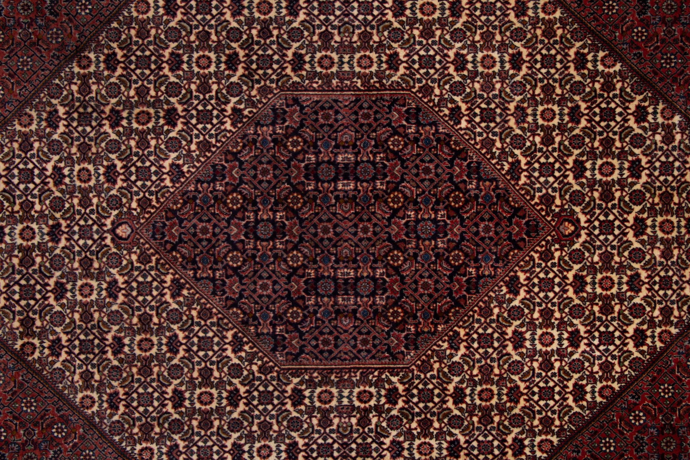 This Persian carpet has been crafted in a small Kurdish town in Western Persia. Bidjar carpets stand for high quality and contemporary design. With geometric patterns and ornaments it is highly popular even for modern interior concepts. Additionally, its compact pile is popular due to its resilience and robustness. This Persian rug made by a Kurdish minority is a great and long-lasting choice you wouldn't want to miss anymore.