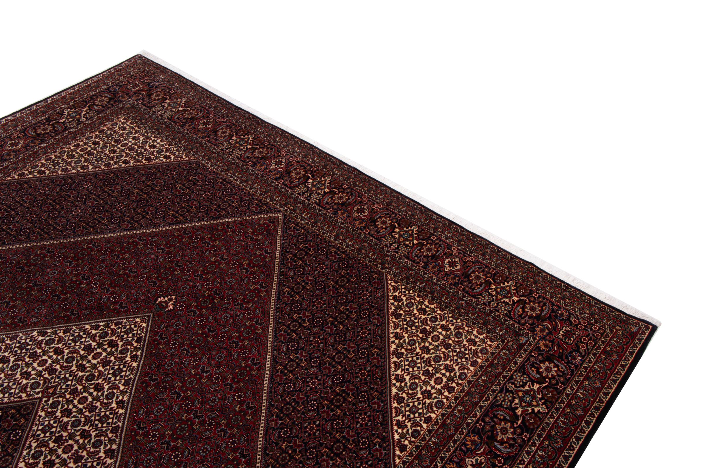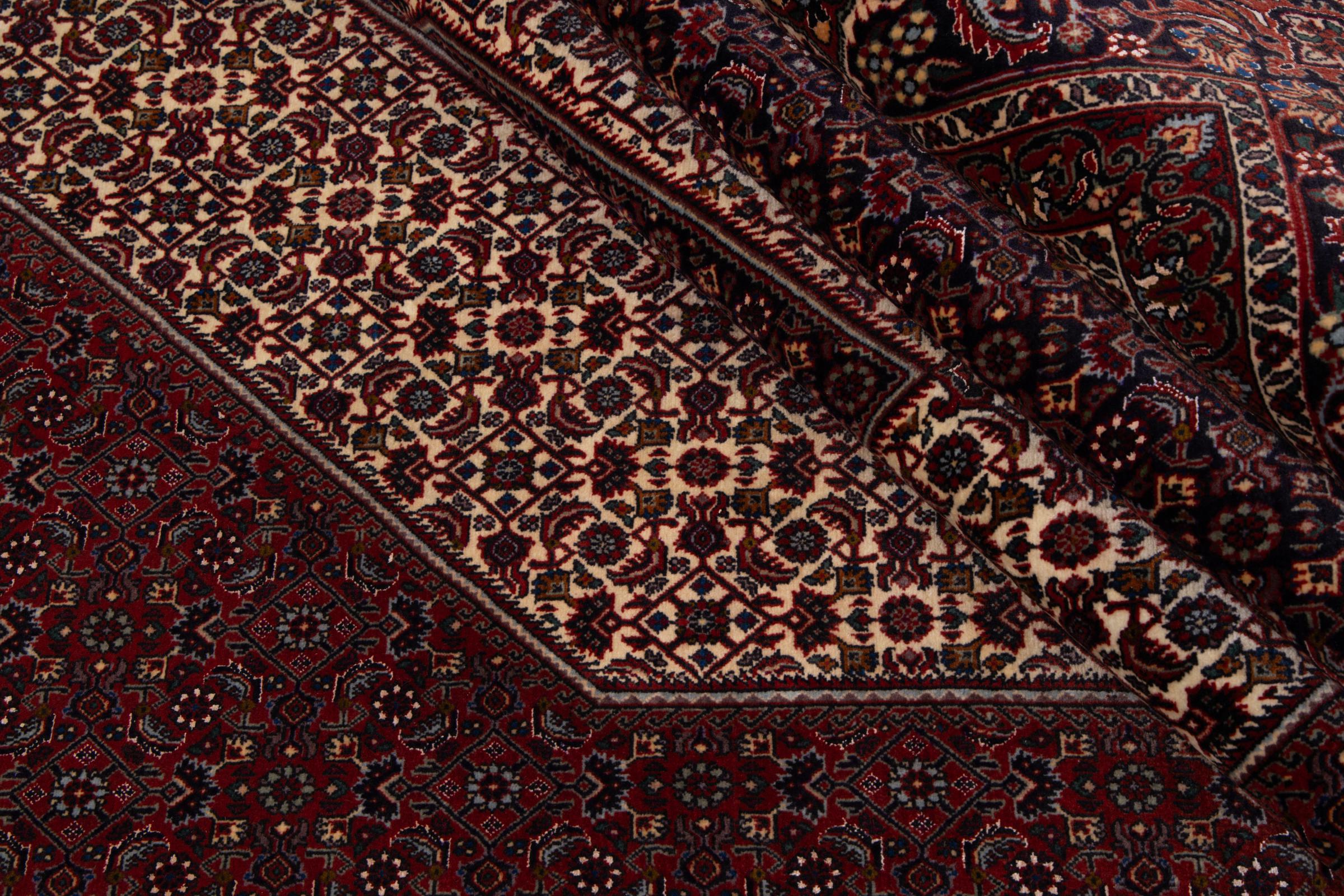 This Persian carpet has been crafted in a small Kurdish town in Western Persia. Bidjar carpets stand for high quality and contemporary design. With geometric patterns and ornaments it is highly popular even for modern interior concepts. Additionally, its compact pile is popular due to its resilience and robustness. This Persian rug made by a Kurdish minority is a great and long-lasting choice you wouldn't want to miss anymore.