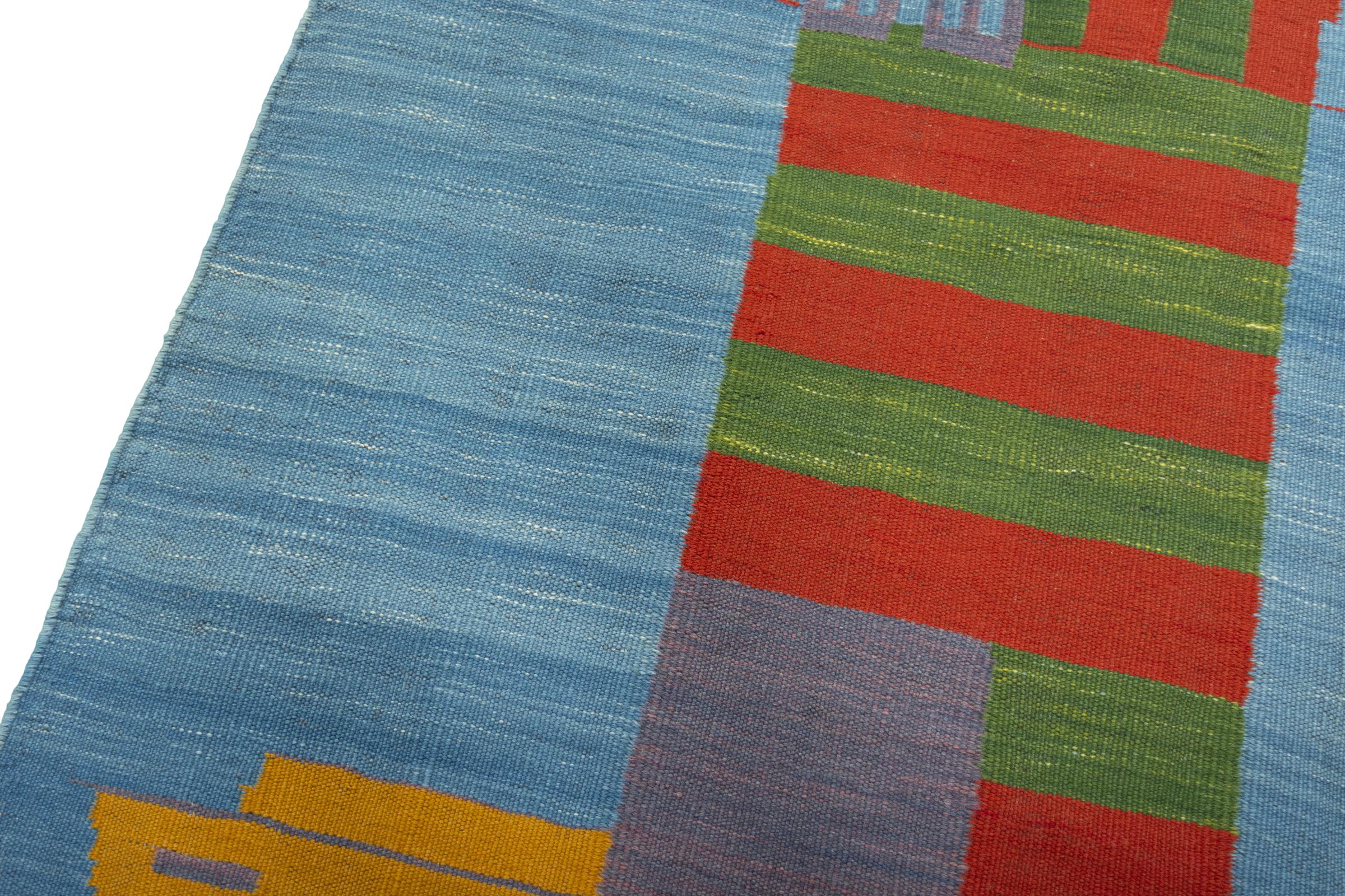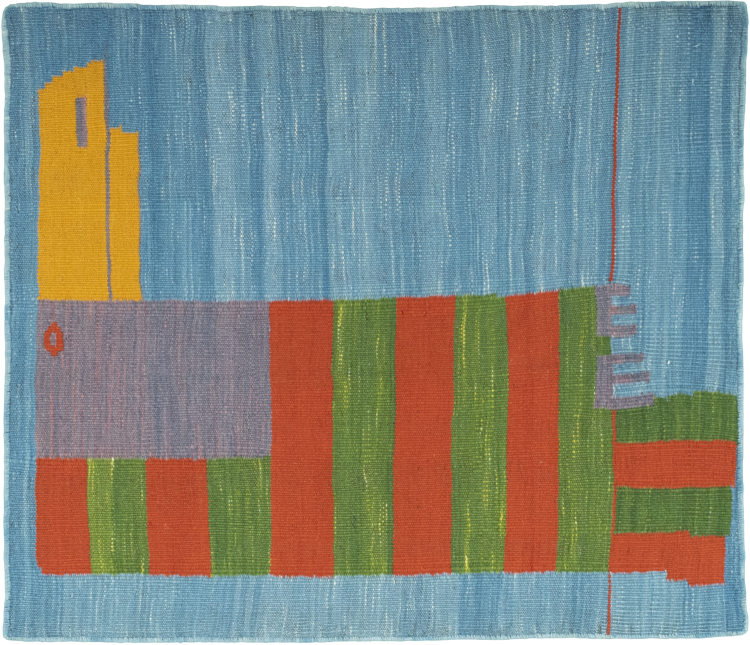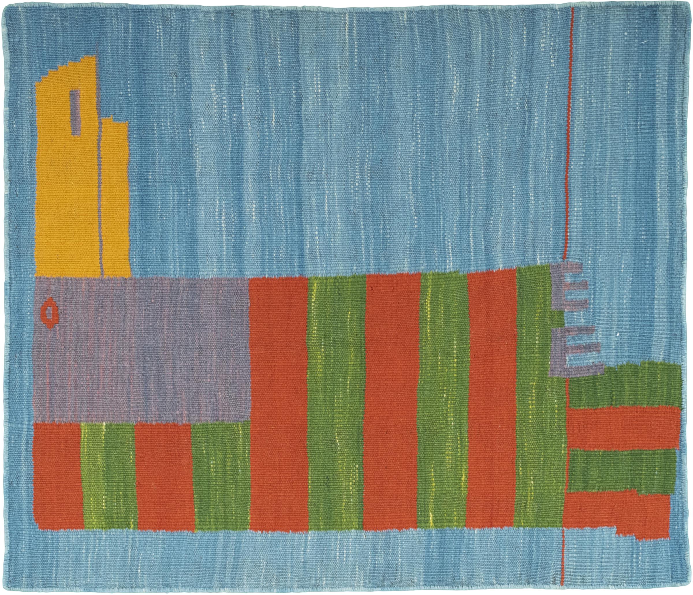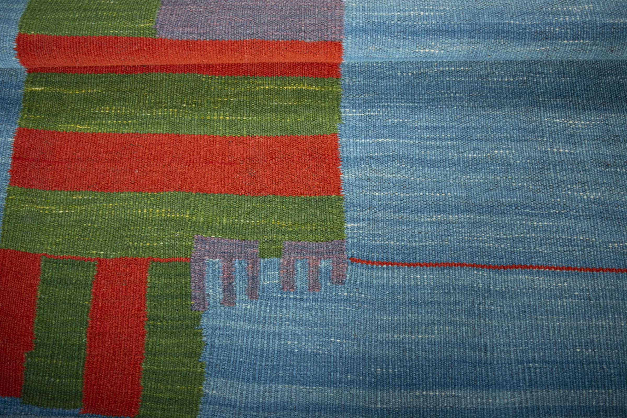 This rug was made as a flat weave by hand on a loom. Flatweave is the term used to describe rugs that have no pile. As the name promises, these rugs are woven and not knotted. This results in a flat rug with a structured surface. Flatweaves are not as soft and usually thinner than knotted rugs. At the same time they are much less complex to manufacture and can usually be laid out from both sides (front and back). Their patterns are usually geometric, which is determined by the fabric.
